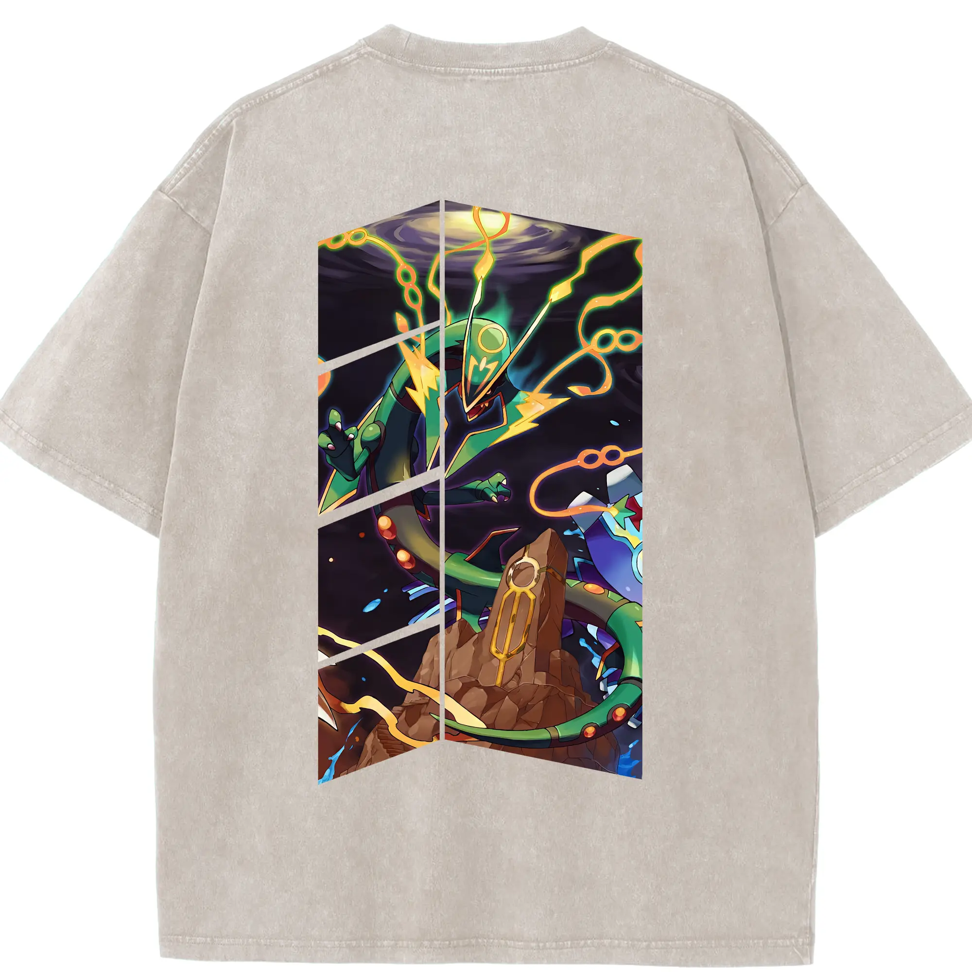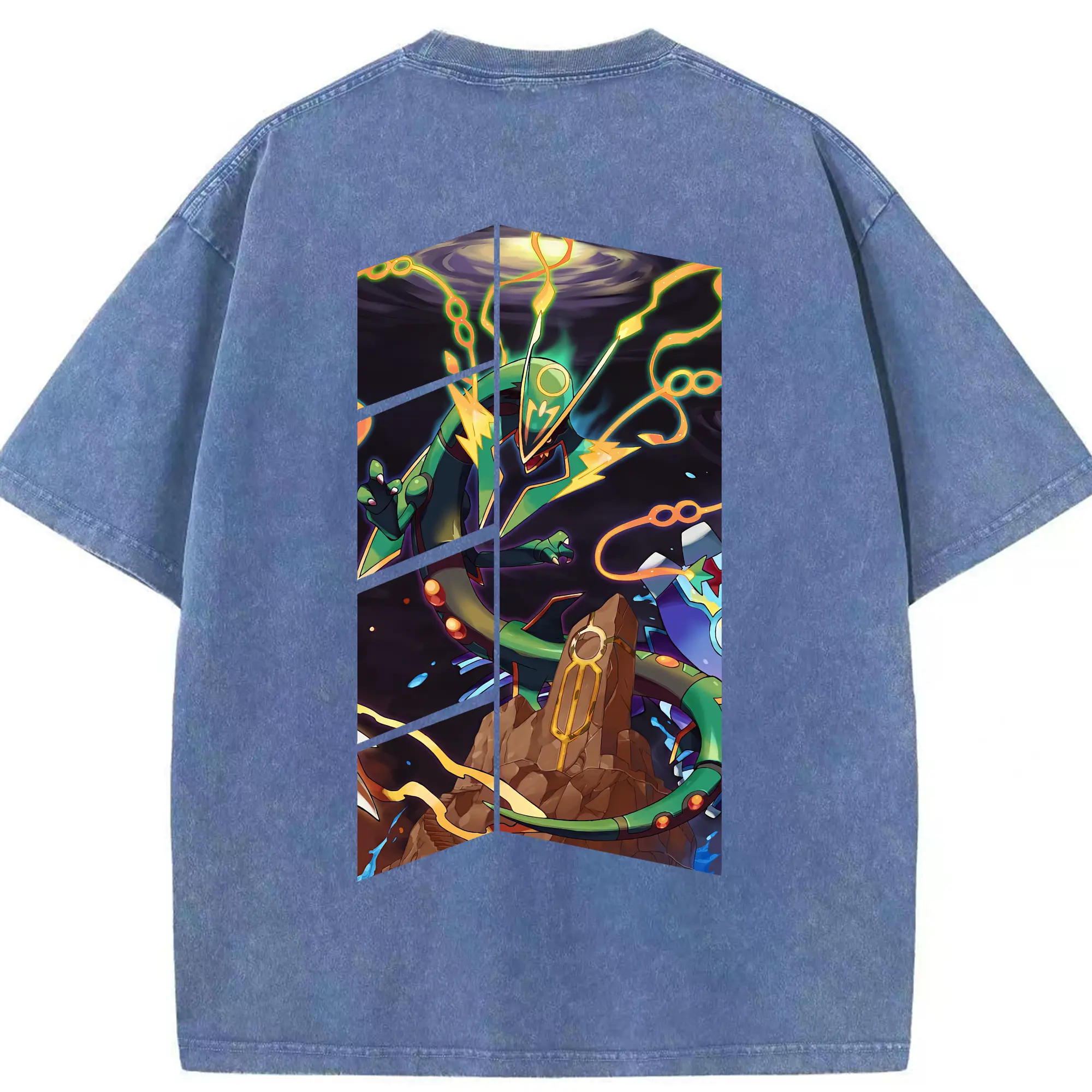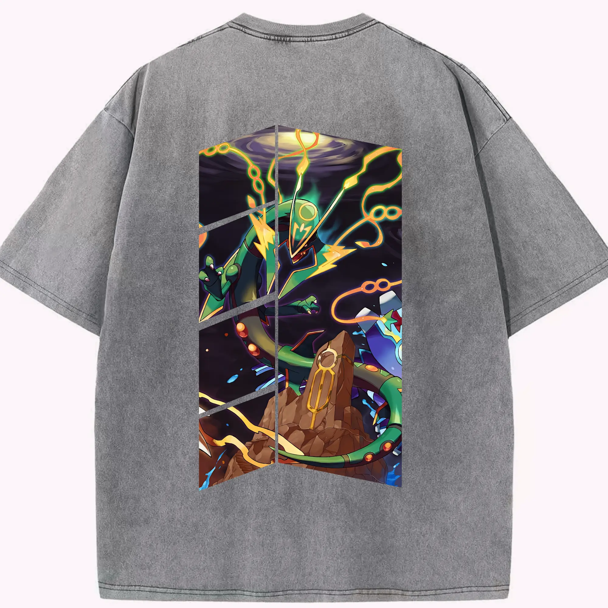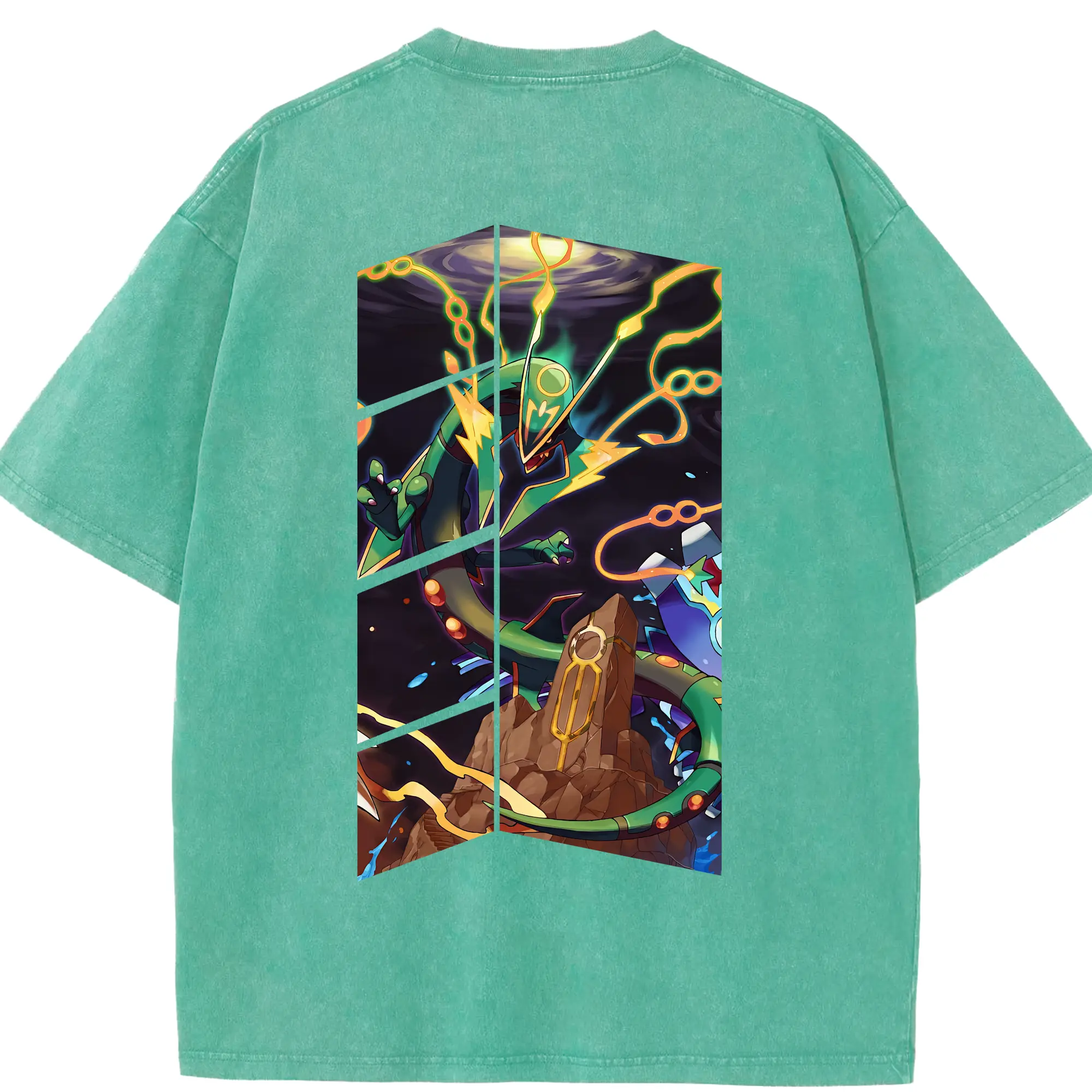 ポケモン グッズ,レックウザ - 綿100% ヴィンテージ風 半袖Tシャツ ・ フロントプリント ・ 柔らか肌触り ・ 通気性 快適 ・ スポーツ カジュアル 外出用