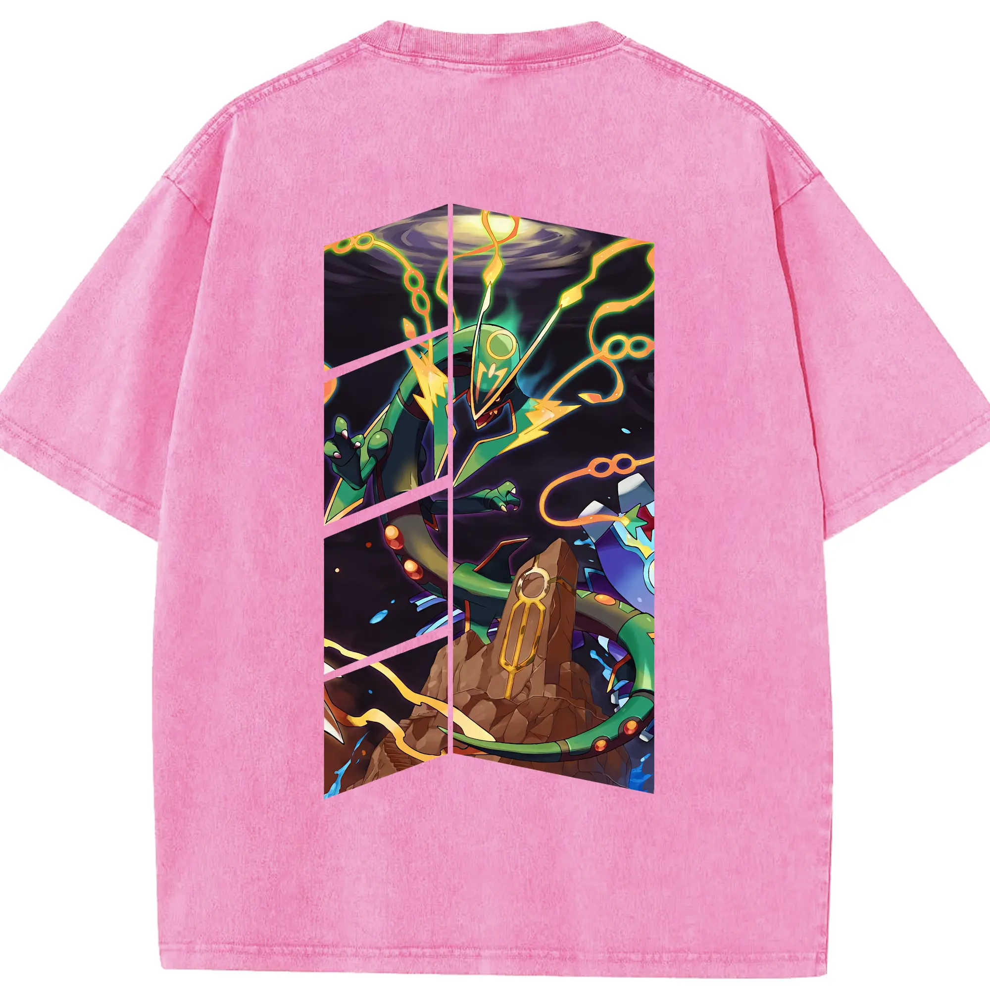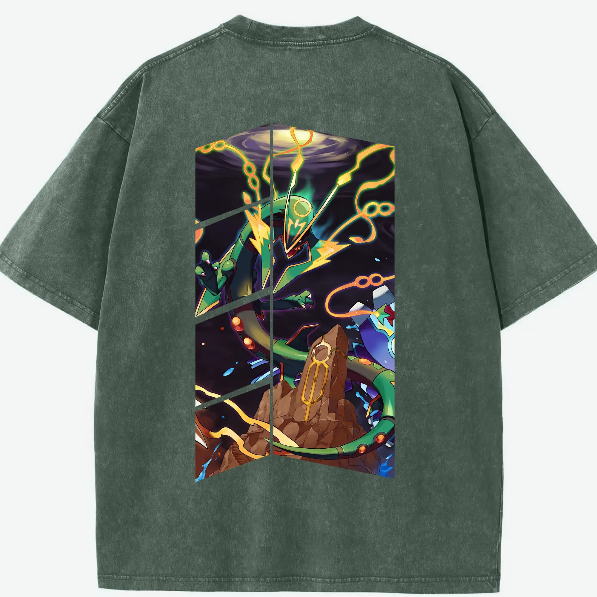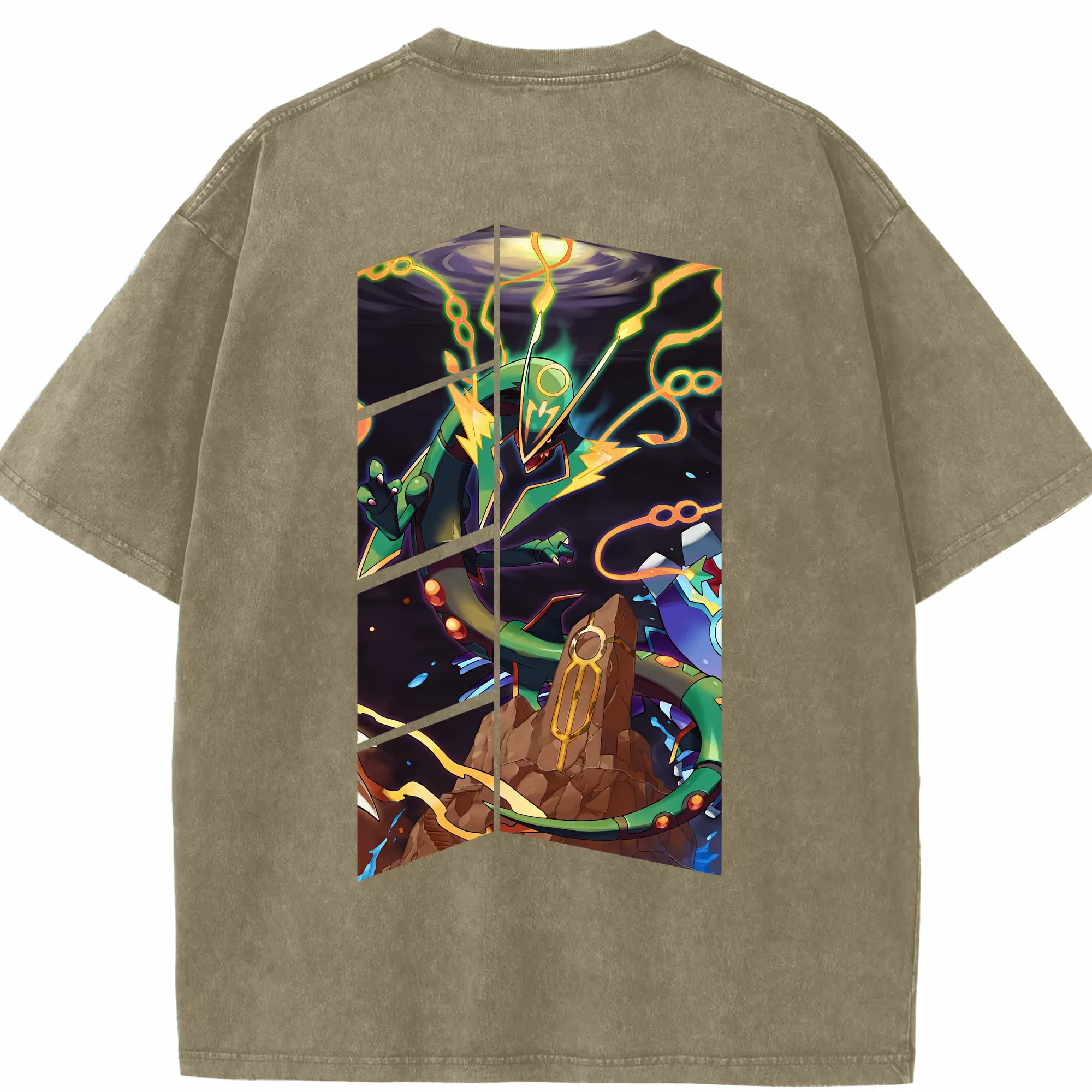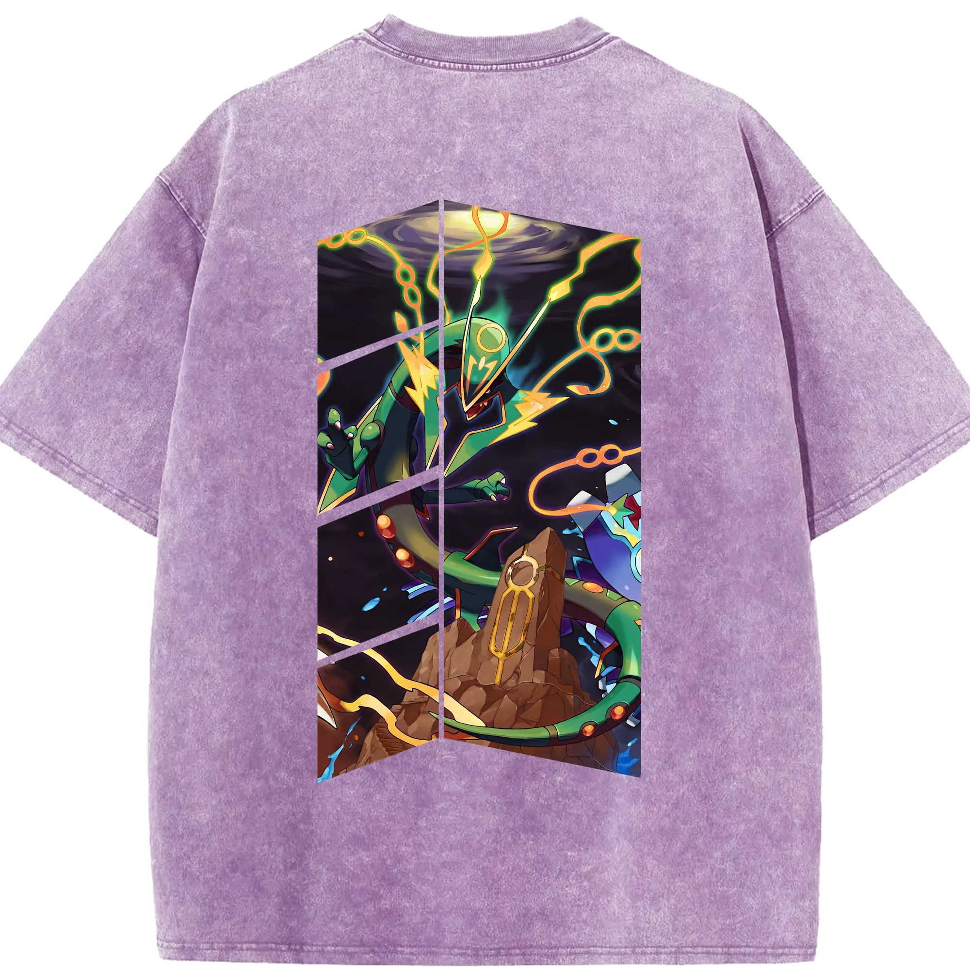 ポケモン グッズ,レックウザ - 綿100% ヴィンテージ風 半袖Tシャツ ・ フロントプリント ・ 柔らか肌触り ・ 通気性 快適 ・ スポーツ カジュアル 外出用