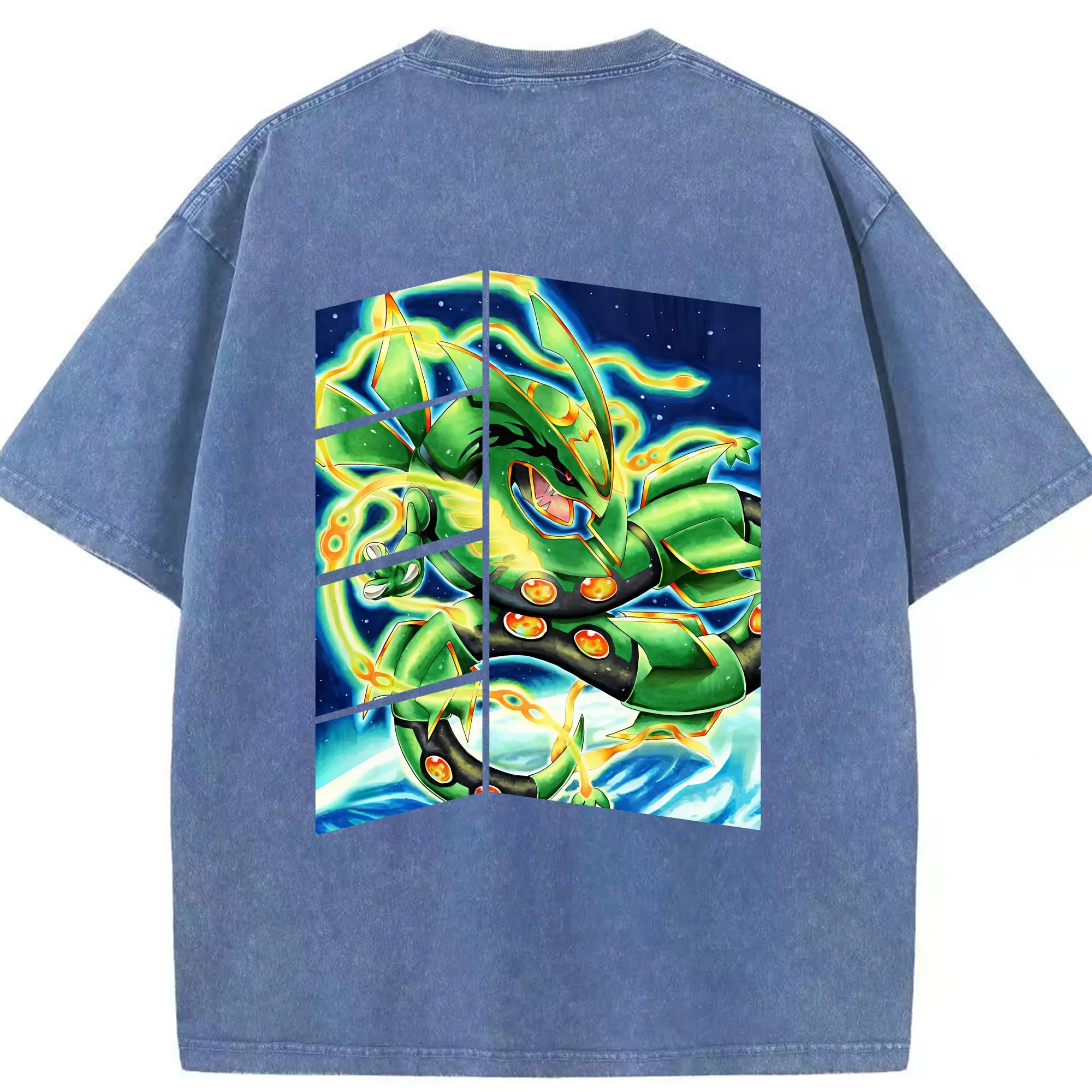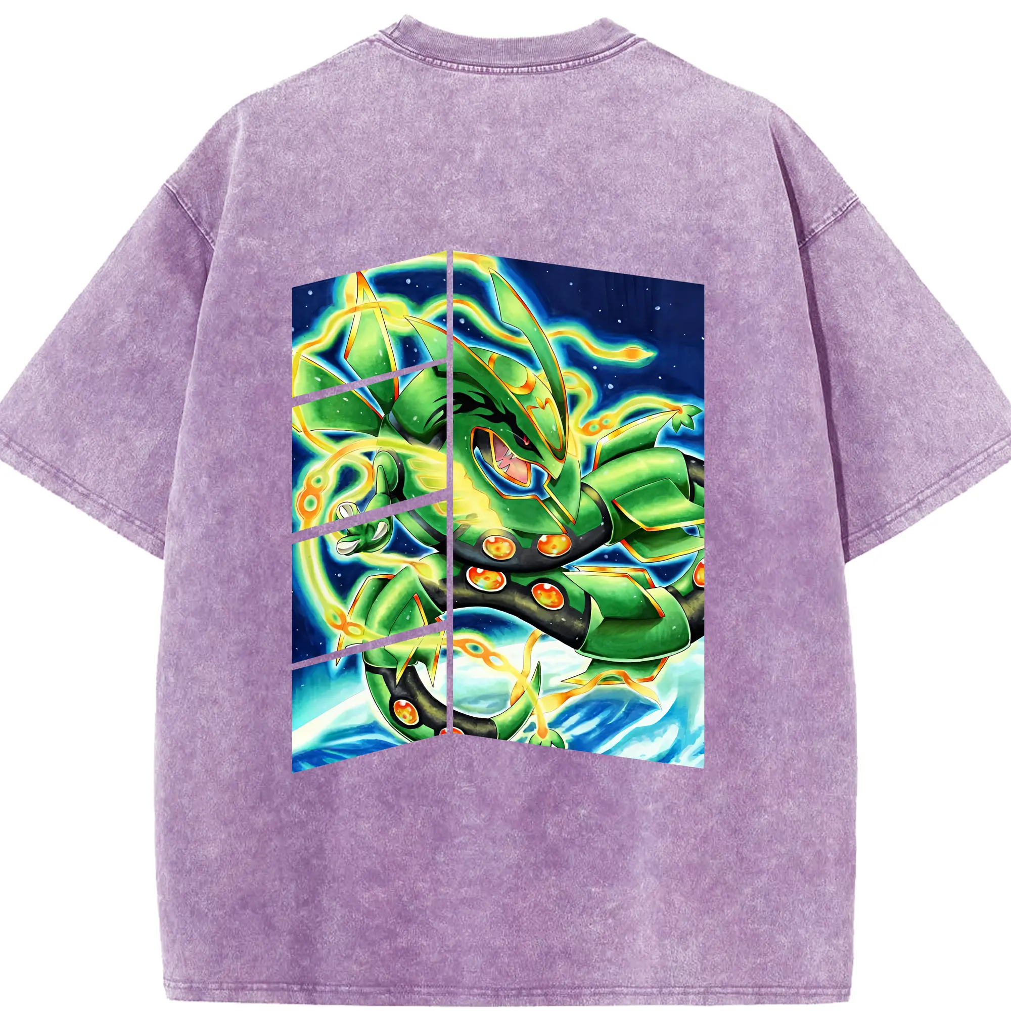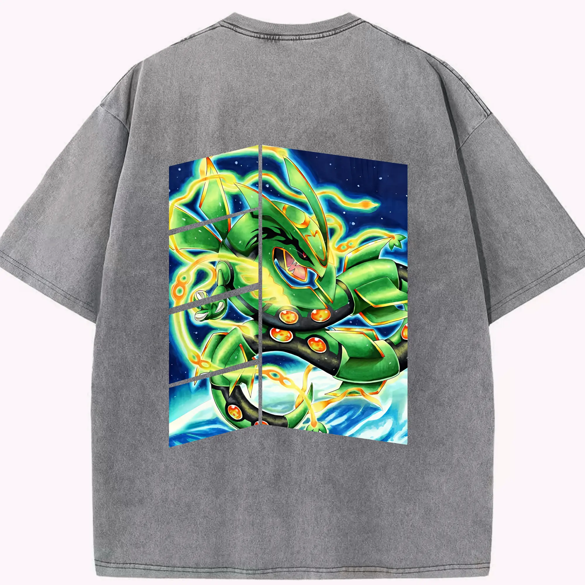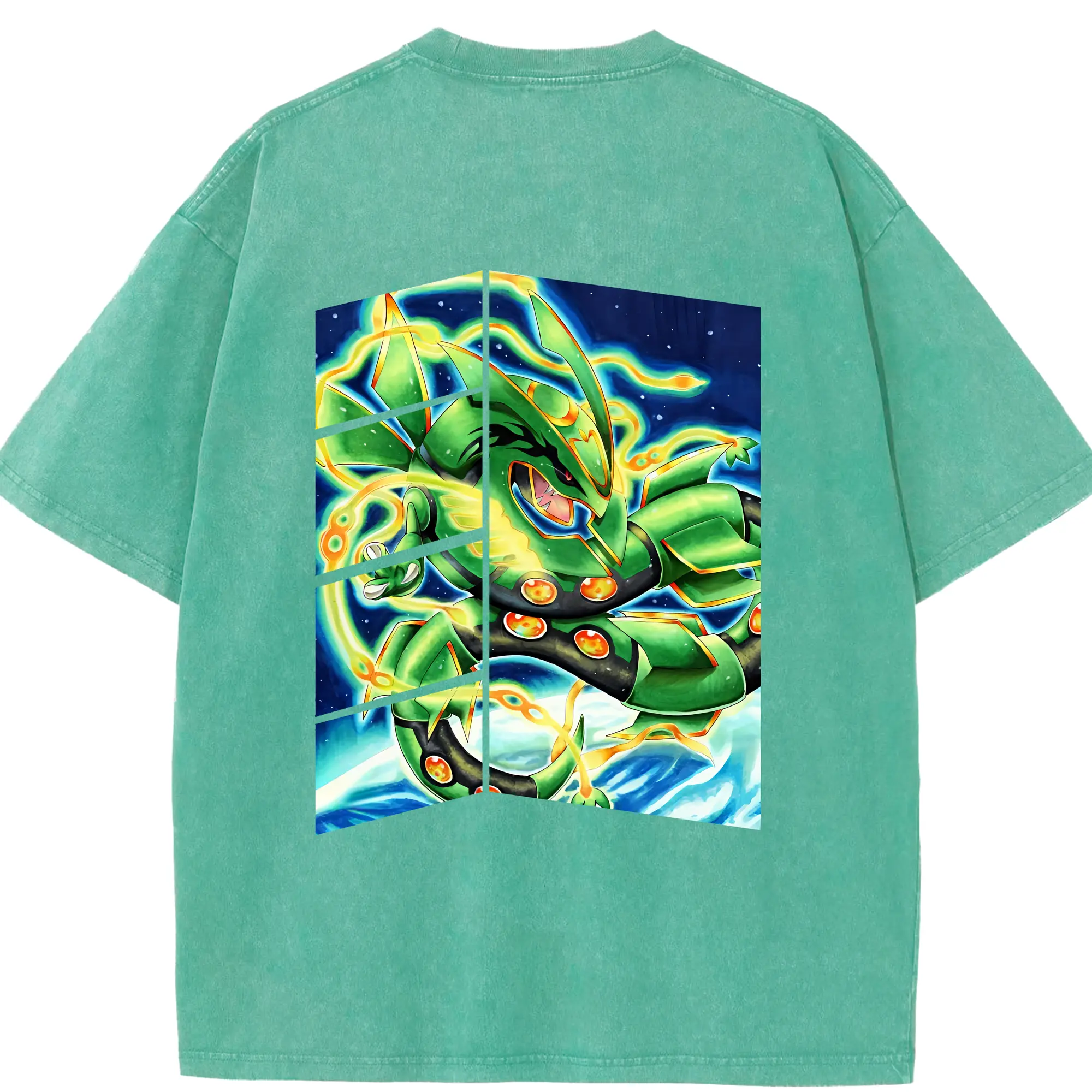 ポケモン グッズ,レックウザ - 綿100% ヴィンテージ風 半袖Tシャツ ・ フロントプリント ・ 柔らか肌触り ・ 通気性 快適 ・ スポーツ カジュアル 外出用
