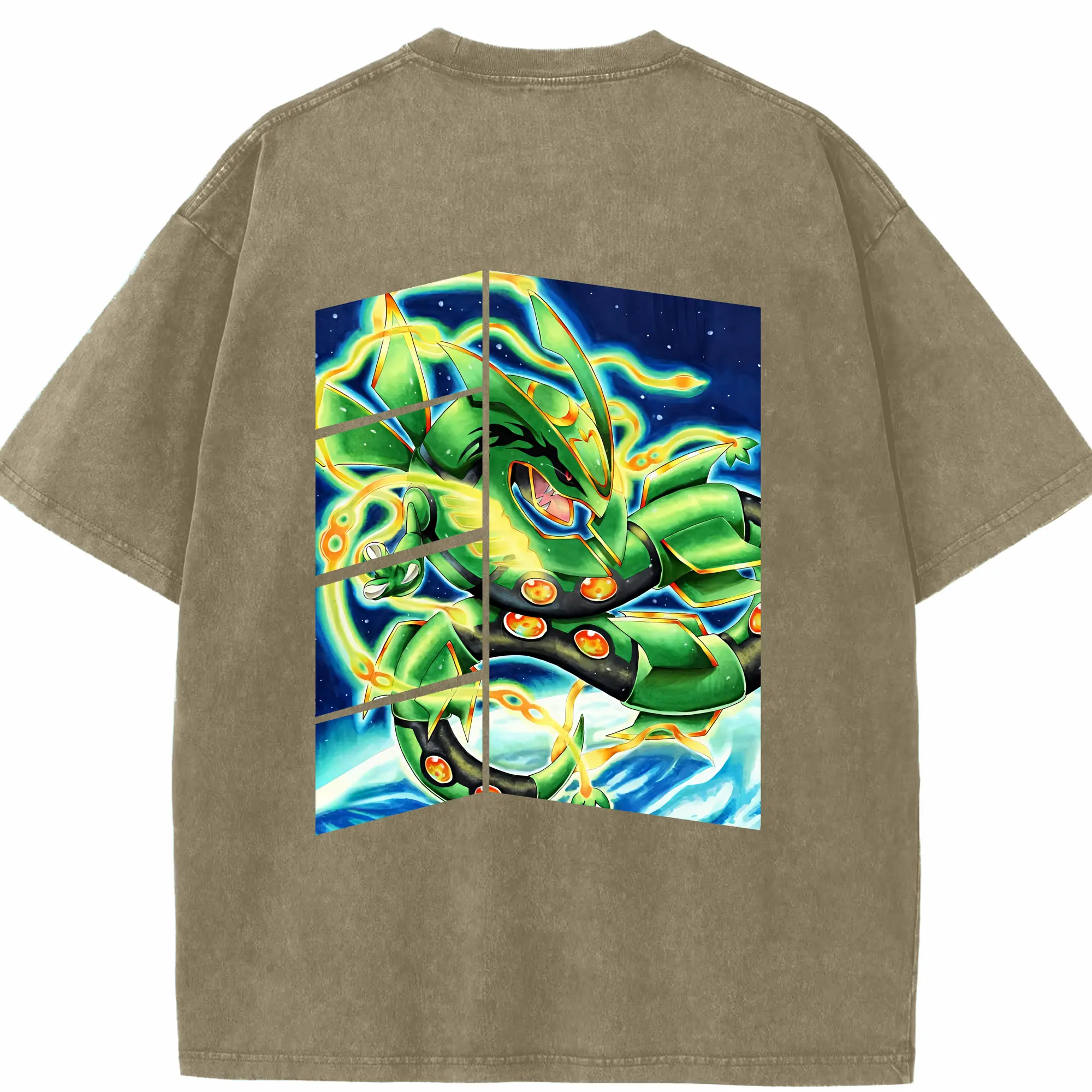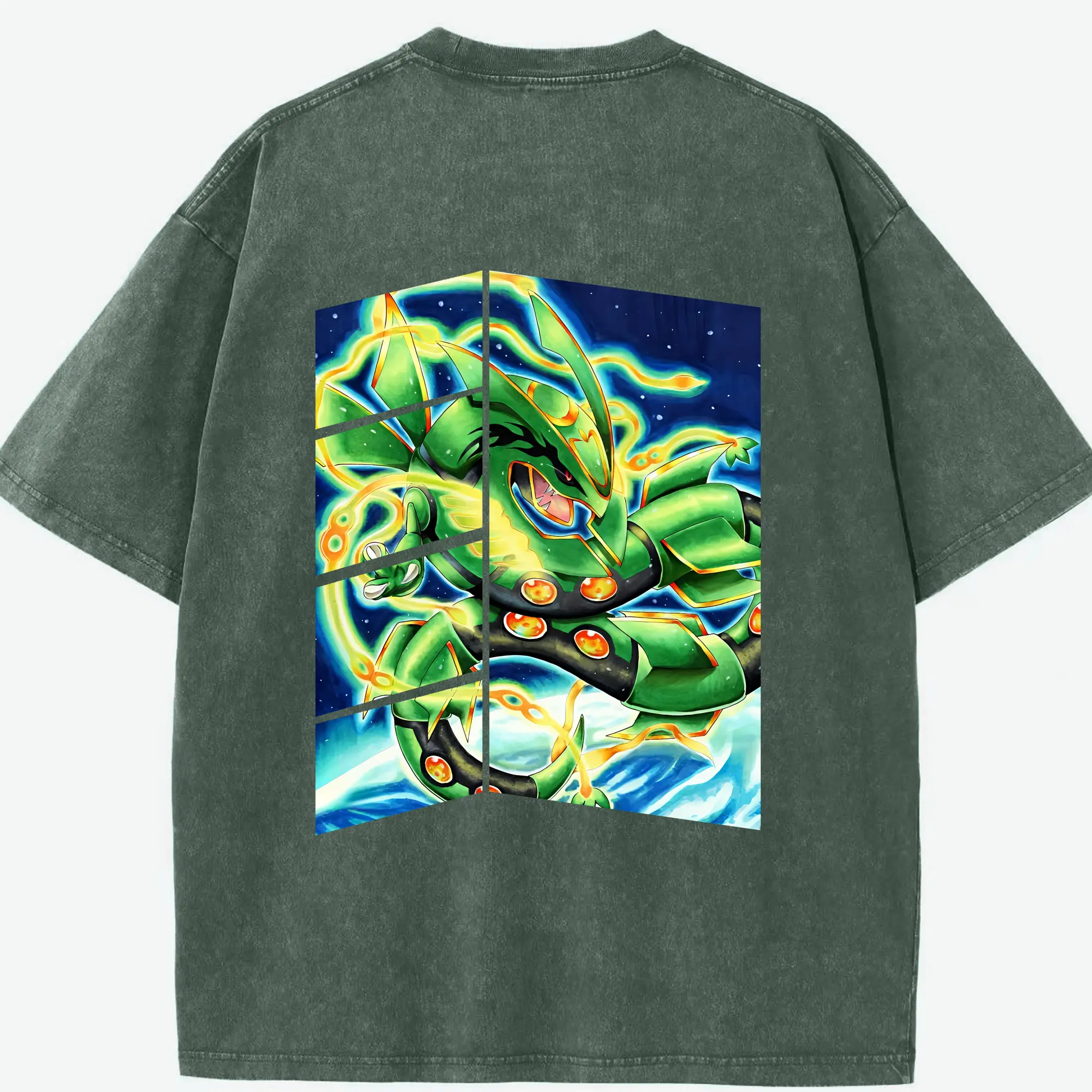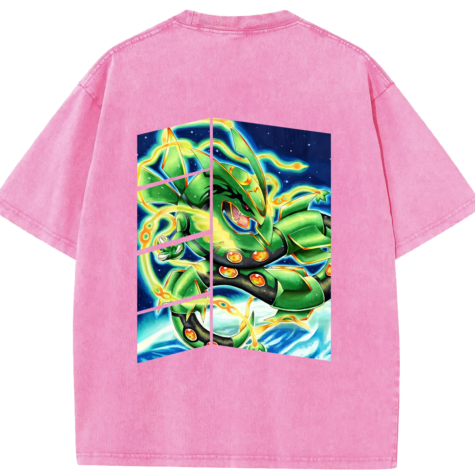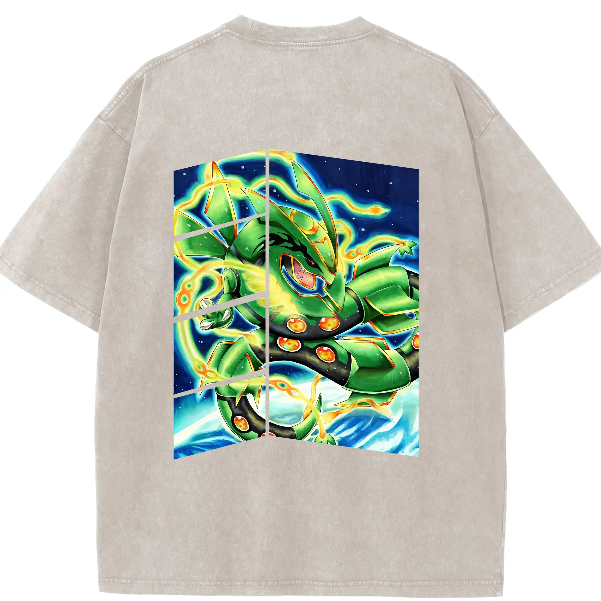ポケモン グッズ,レックウザ - 綿100% ヴィンテージ風 半袖Tシャツ ・ フロントプリント ・ 柔らか肌触り ・ 通気性 快適 ・ スポーツ カジュアル 外出用