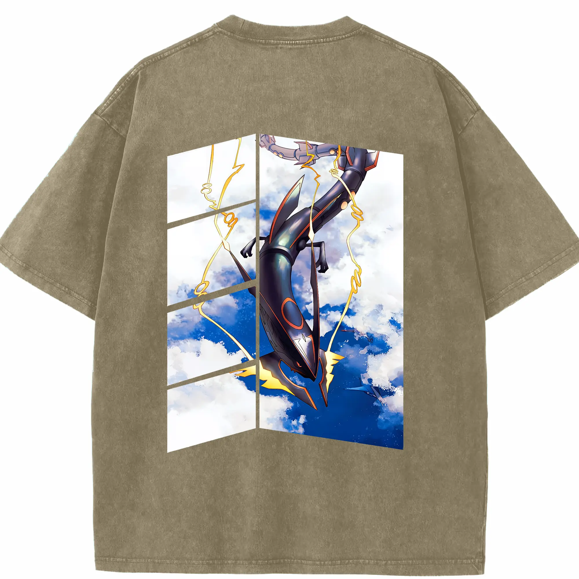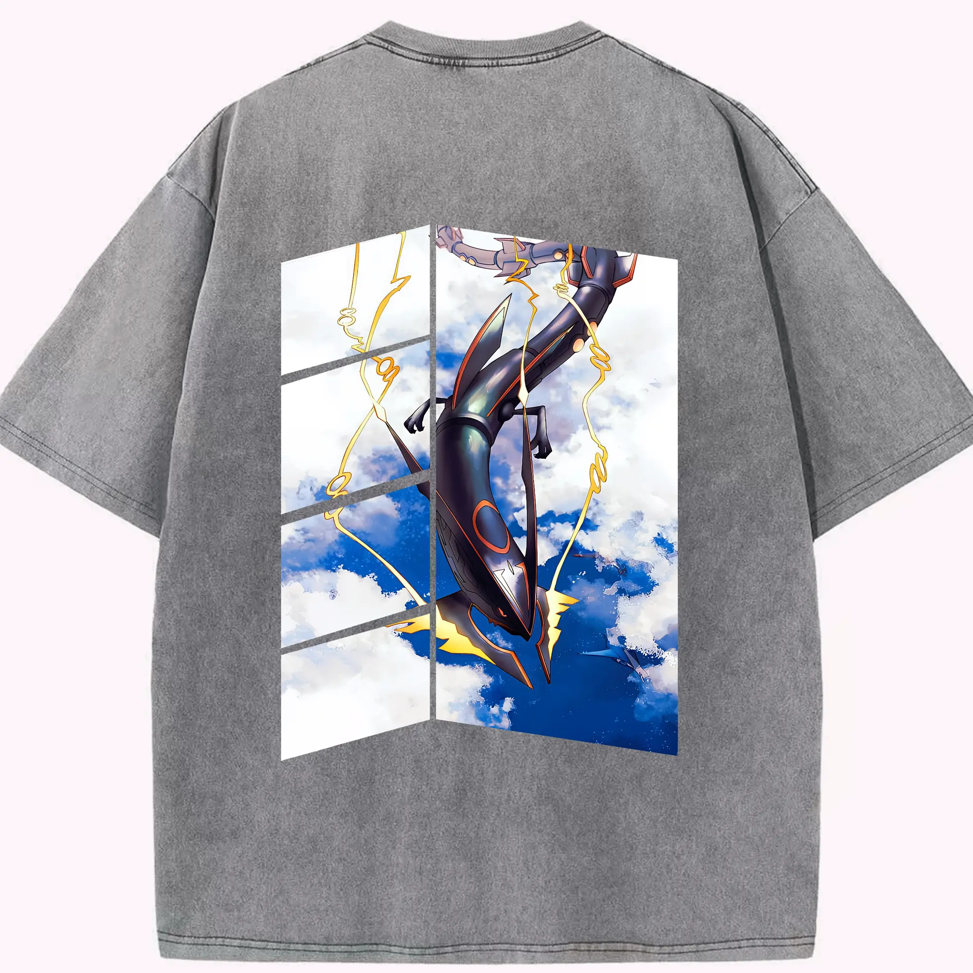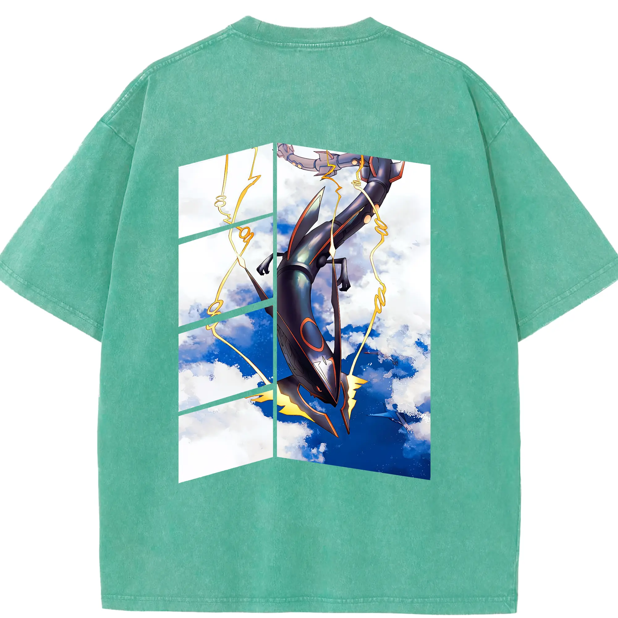 ポケモン グッズ,レックウザ - 綿100% ヴィンテージ風 半袖Tシャツ ・ フロントプリント ・ 柔らか肌触り ・ 通気性 快適 ・ スポーツ カジュアル 外出用