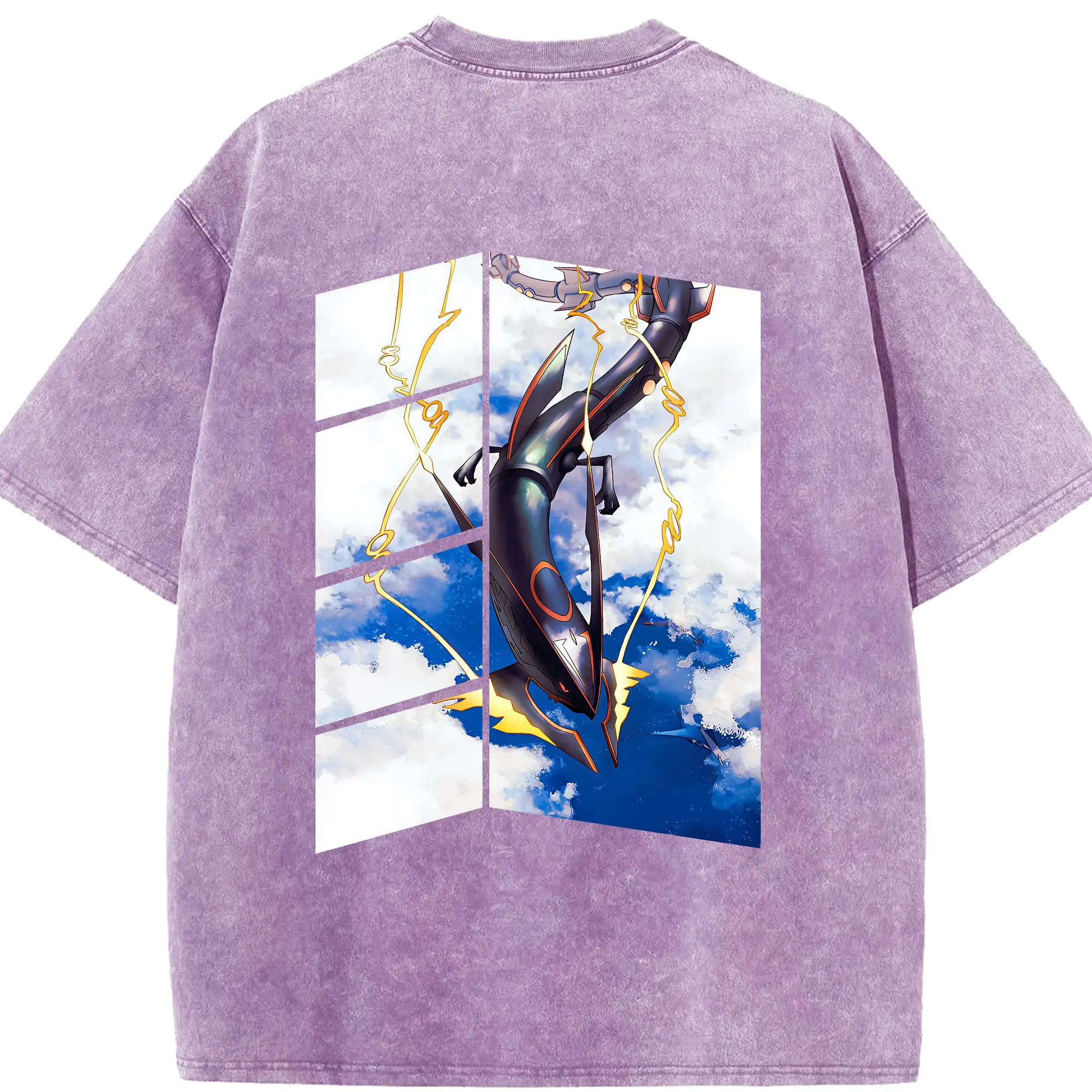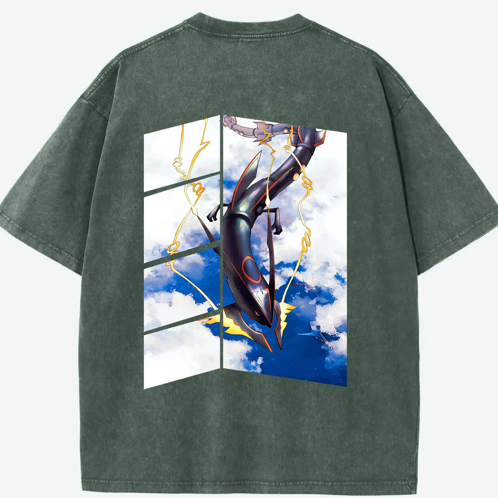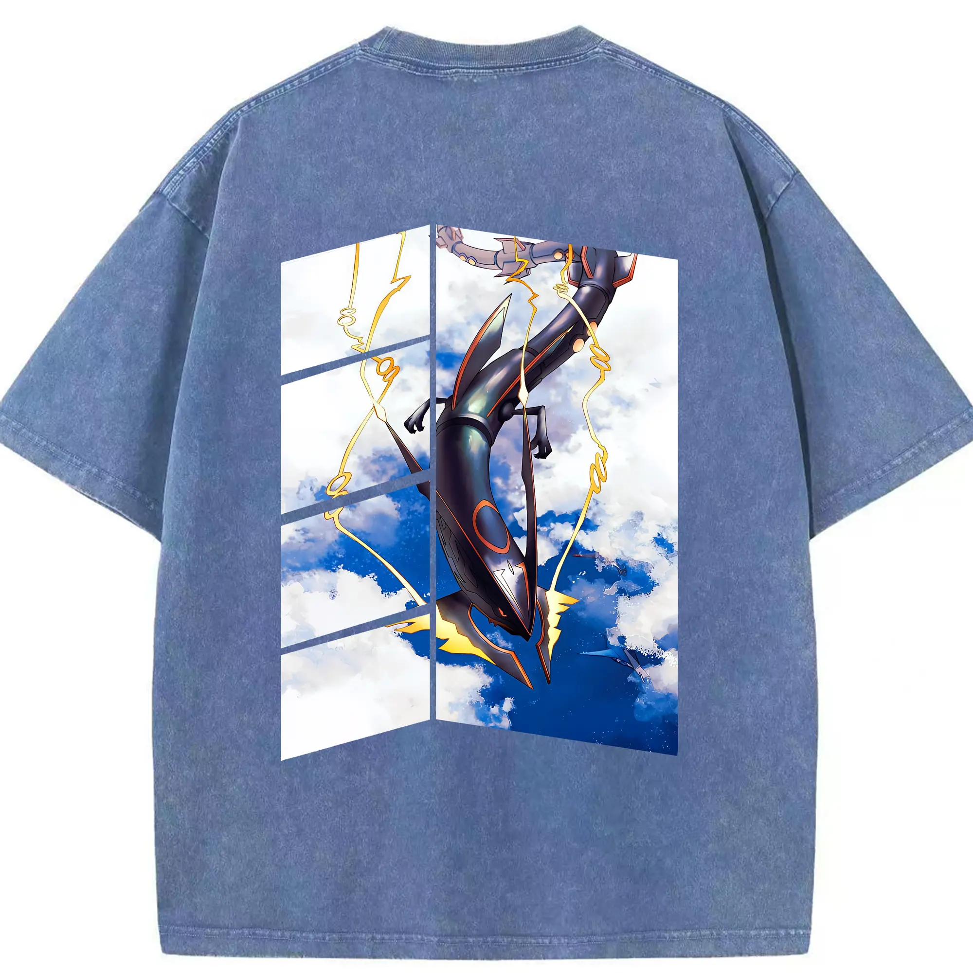 ポケモン グッズ,レックウザ - 綿100% ヴィンテージ風 半袖Tシャツ ・ フロントプリント ・ 柔らか肌触り ・ 通気性 快適 ・ スポーツ カジュアル 外出用