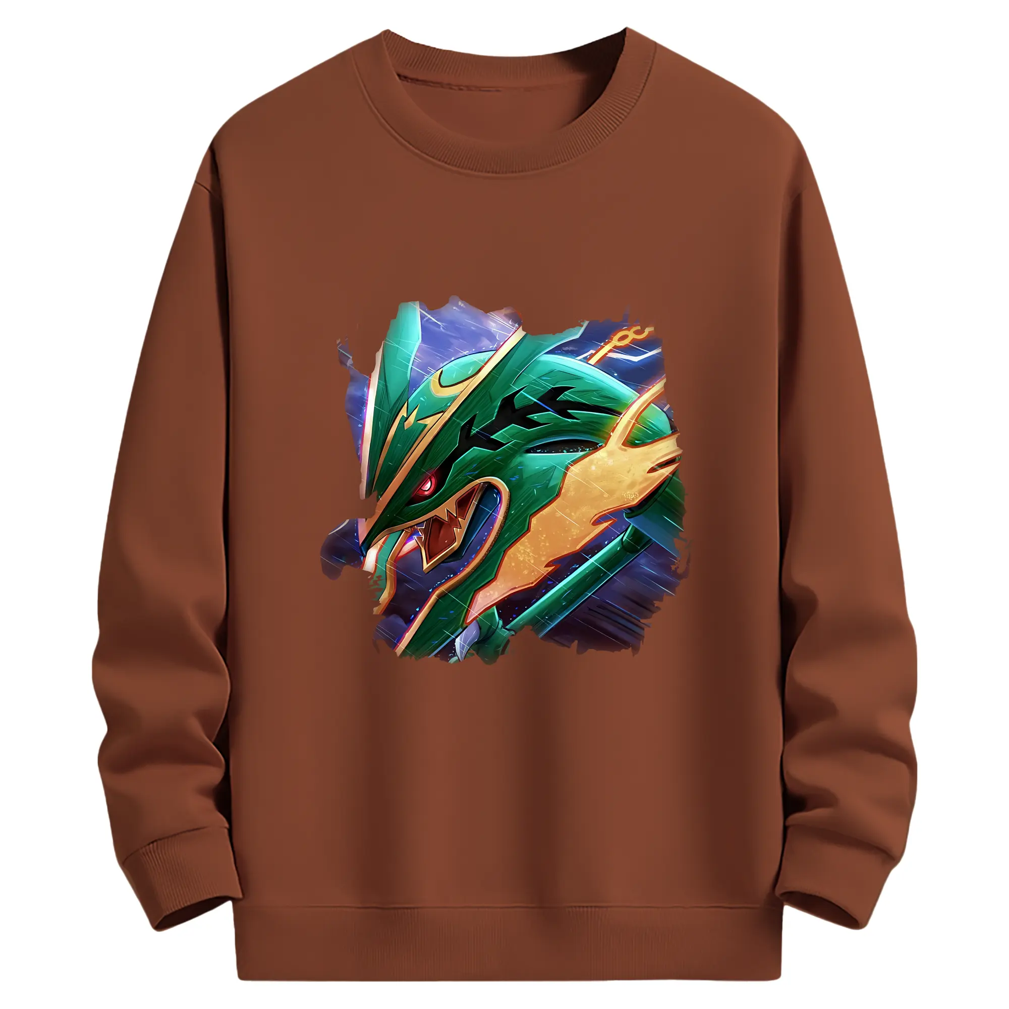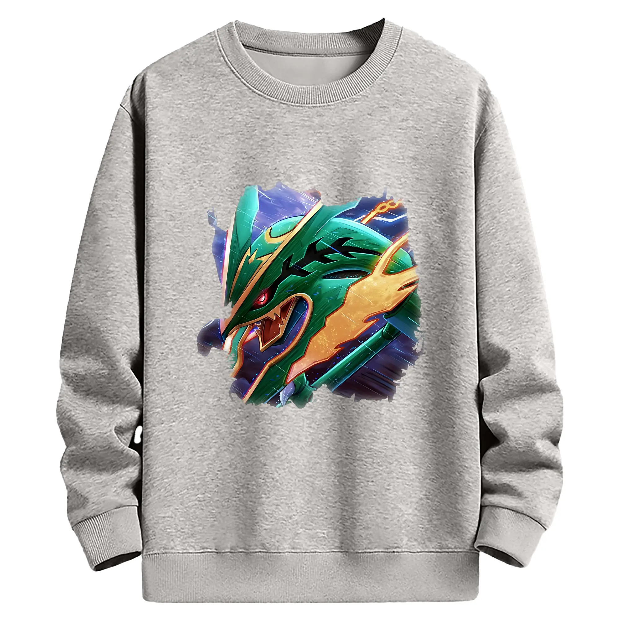 ポケモン グッズ,レックウザ - 薄手 クルーネック スウェット 裏毛260g · ポリエステル 春秋向け カジュアル 男女兼用 · トレーナー デイリー スポーツ 散歩に最適