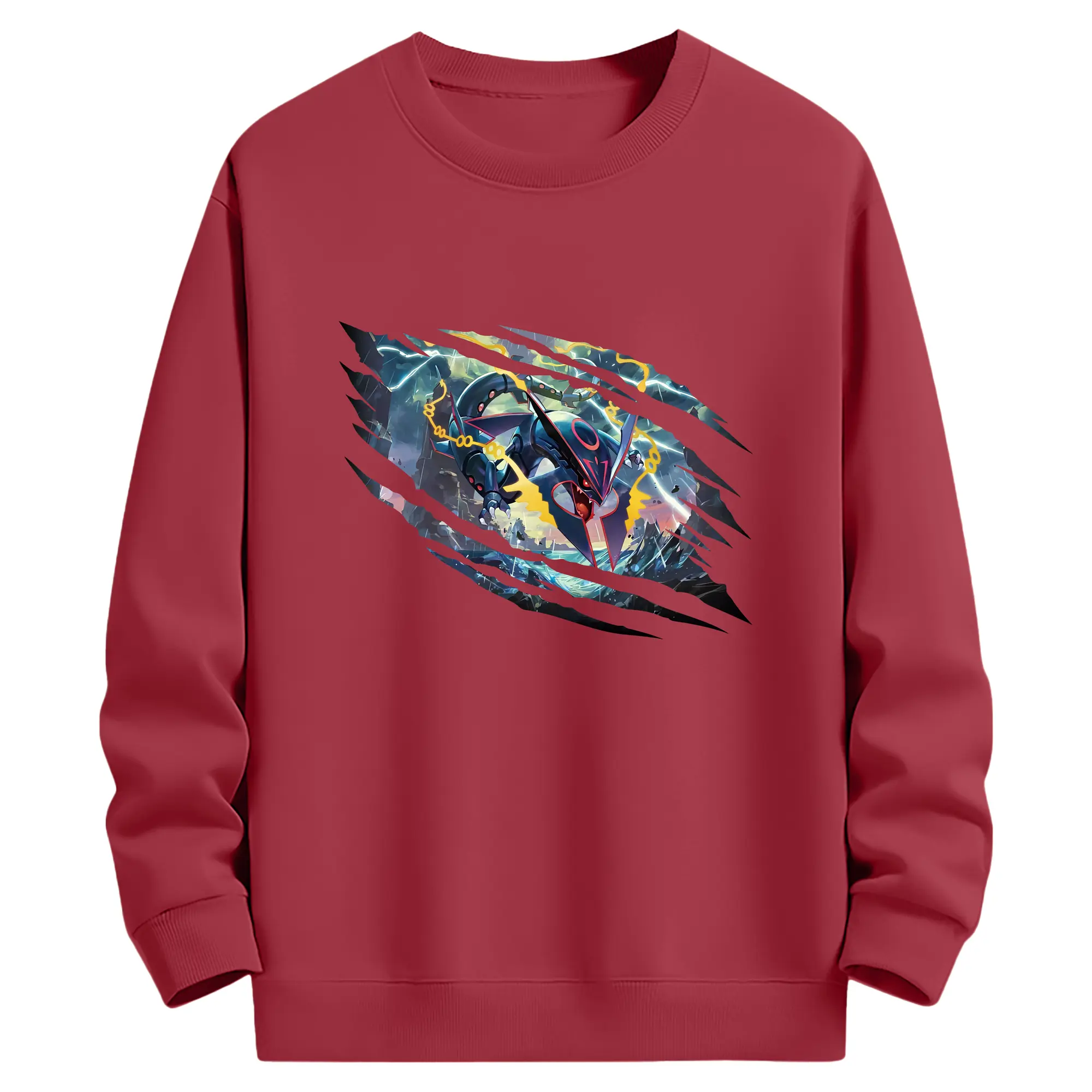 ポケモン グッズ,レックウザ - 薄手 クルーネック スウェット 裏毛260g · ポリエステル 春秋向け カジュアル 男女兼用 · トレーナー デイリー スポーツ 散歩に最適
