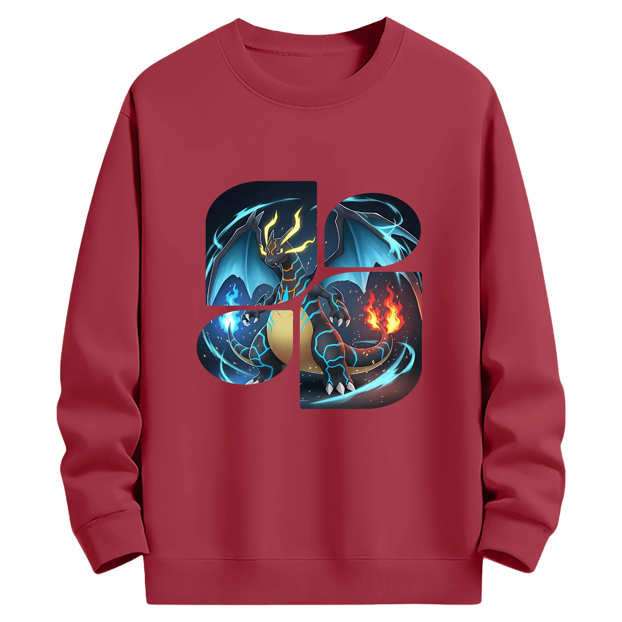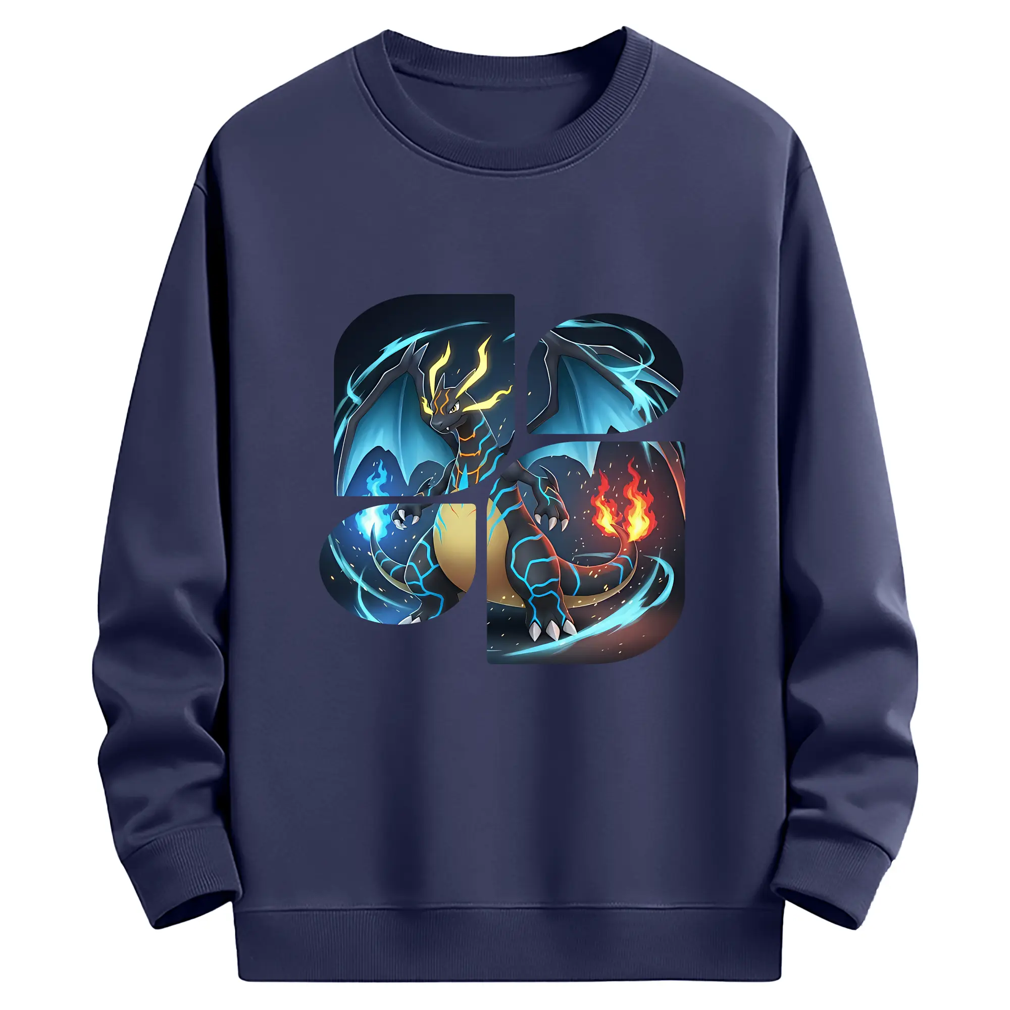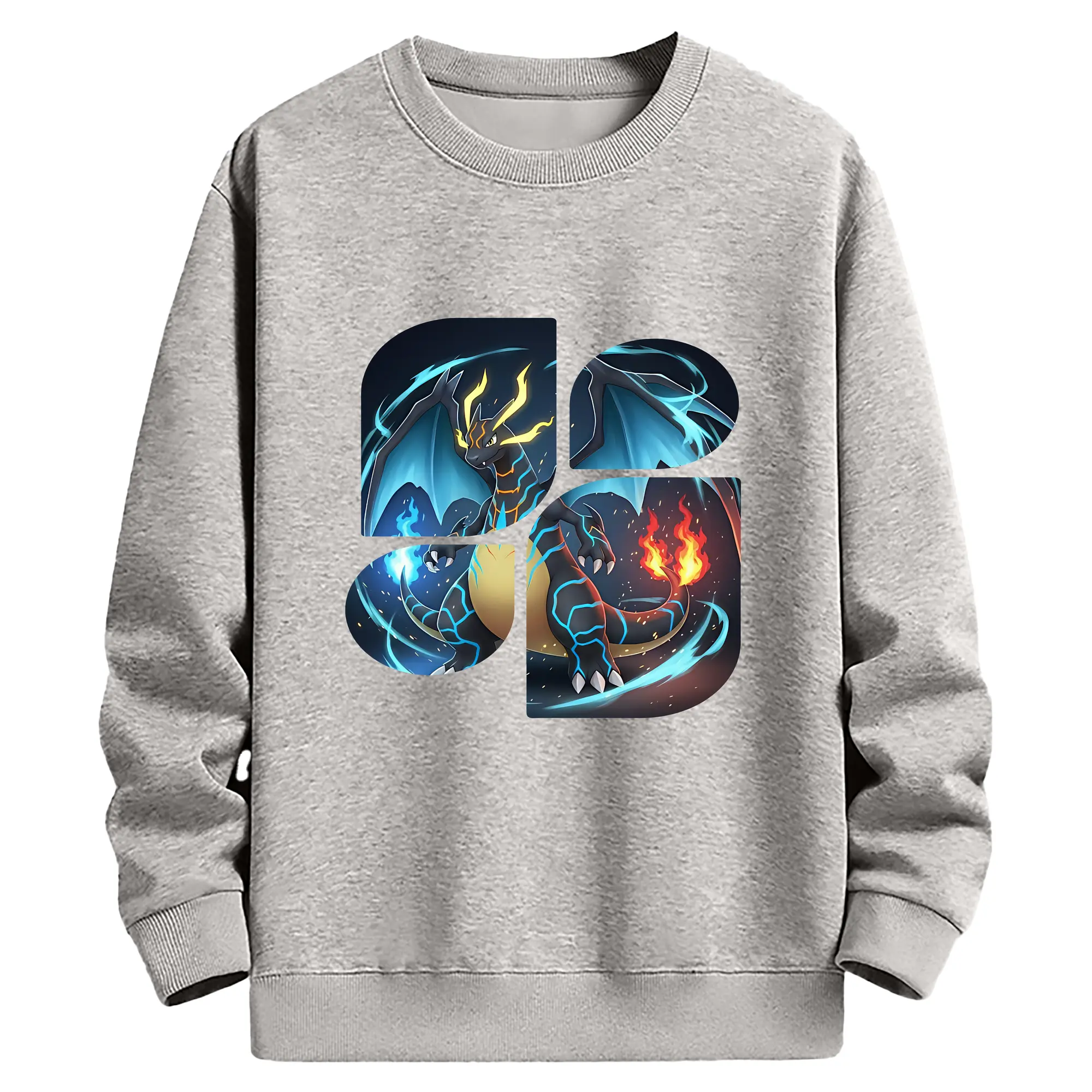 ポケモン グッズ,リザードン - 薄手 クルーネック スウェット 裏毛260g · ポリエステル 春秋向け カジュアル 男女兼用 · トレーナー デイリー スポーツ 散歩に最適