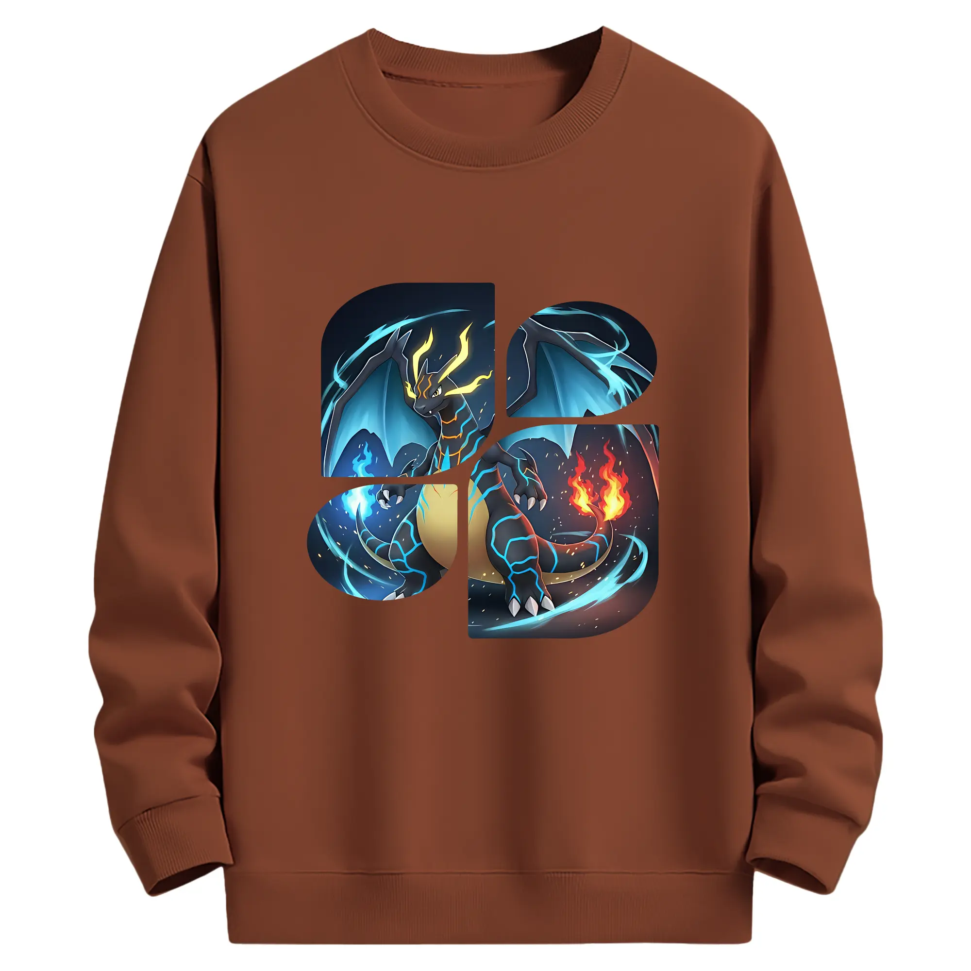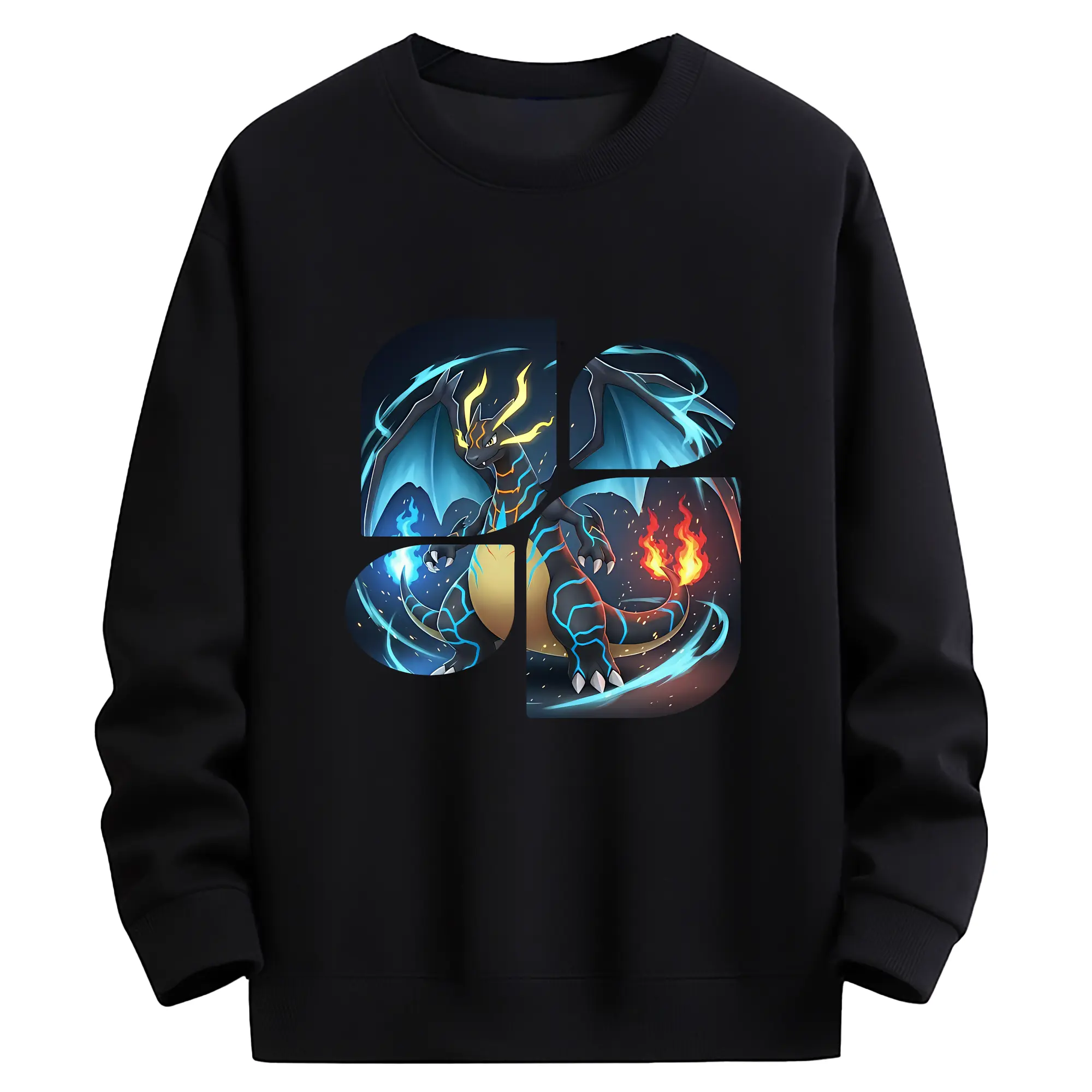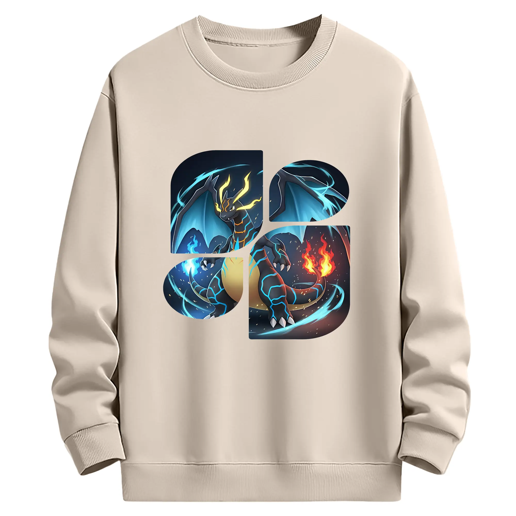 ポケモン グッズ,リザードン - 薄手 クルーネック スウェット 裏毛260g · ポリエステル 春秋向け カジュアル 男女兼用 · トレーナー デイリー スポーツ 散歩に最適