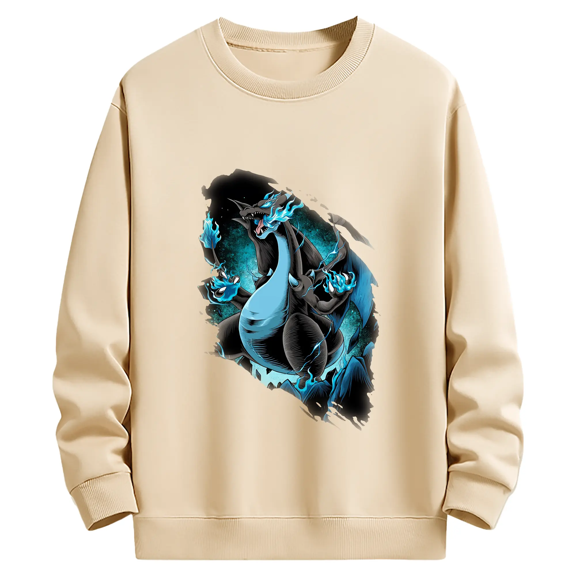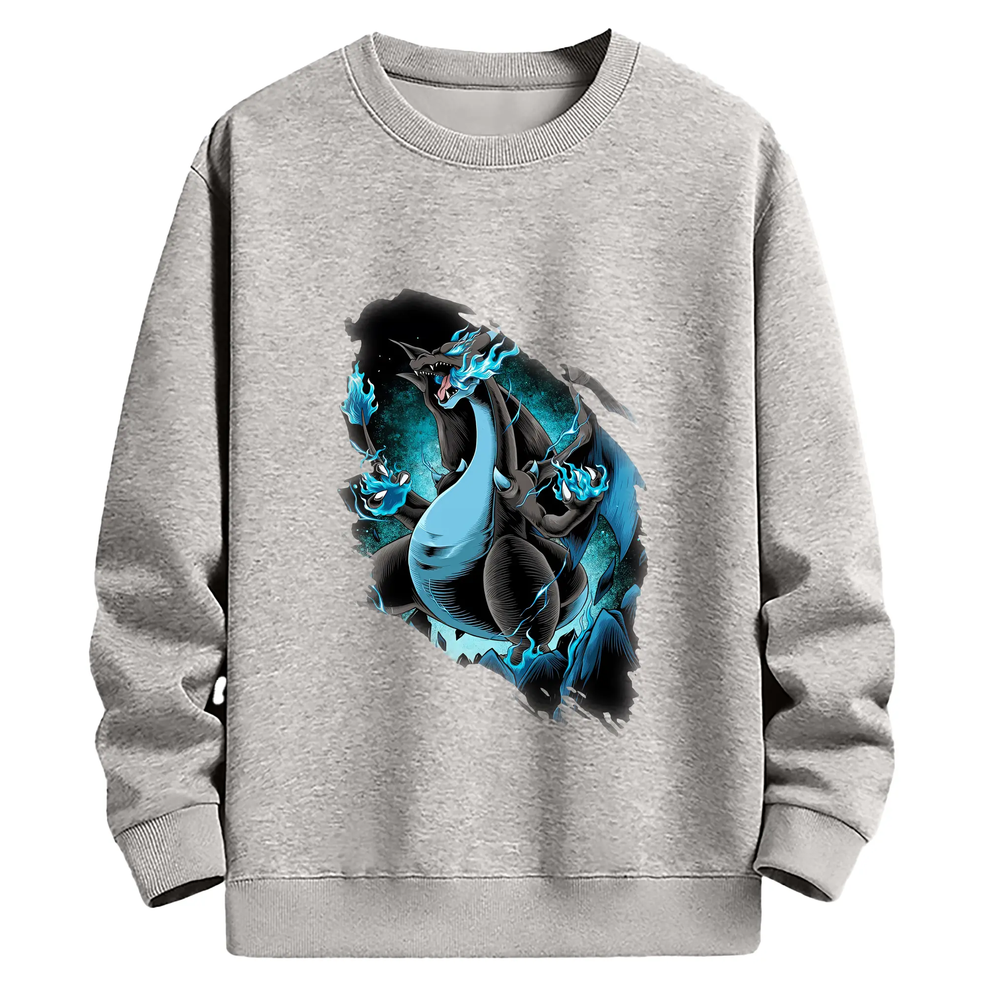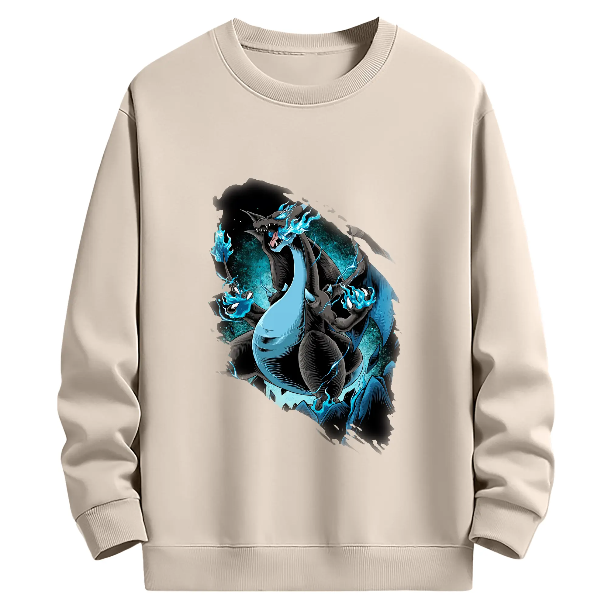 ポケモン グッズ,リザードン - 薄手 クルーネック スウェット 裏毛260g · ポリエステル 春秋向け カジュアル 男女兼用 · トレーナー デイリー スポーツ 散歩に最適