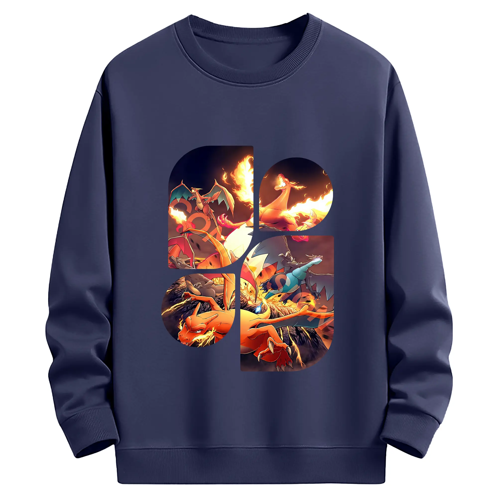 ポケモン グッズ,リザードン - 薄手 クルーネック スウェット 裏毛260g · ポリエステル 春秋向け カジュアル 男女兼用 · トレーナー デイリー スポーツ 散歩に最適