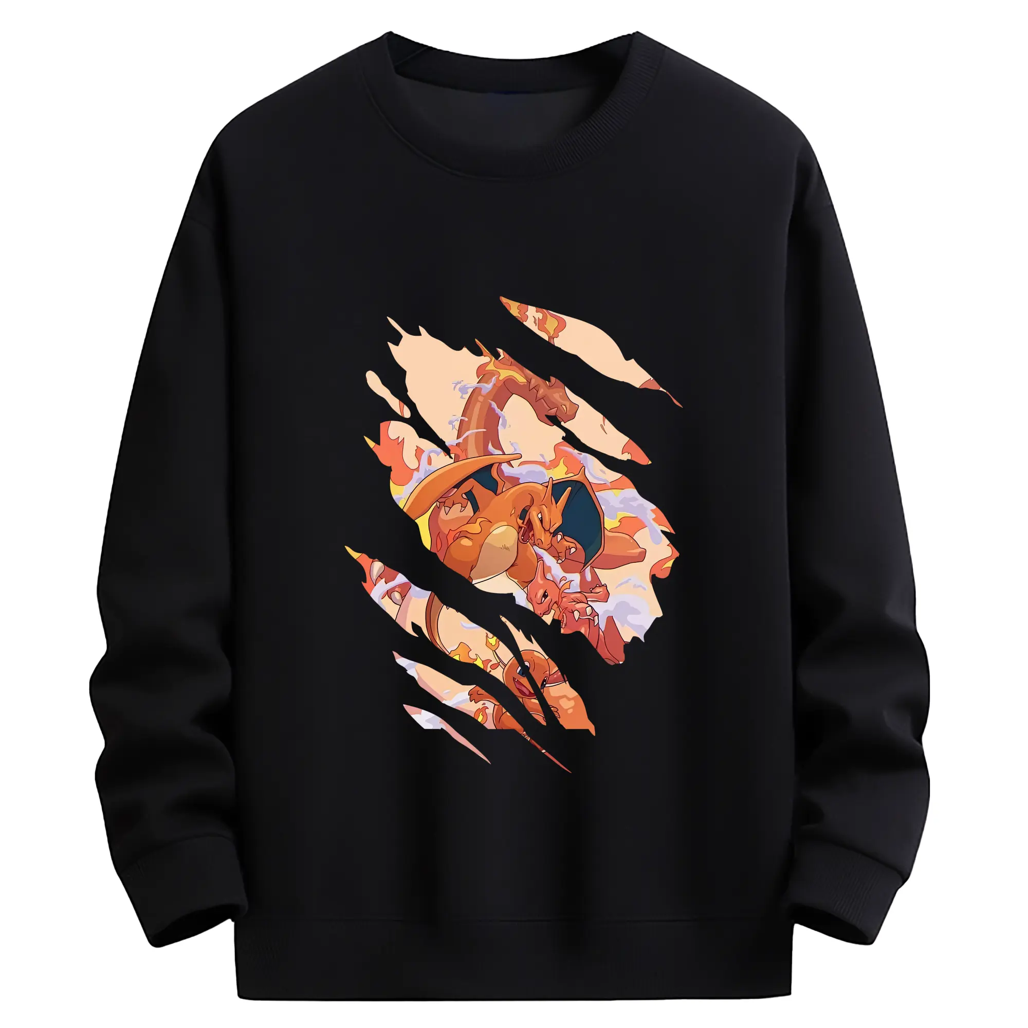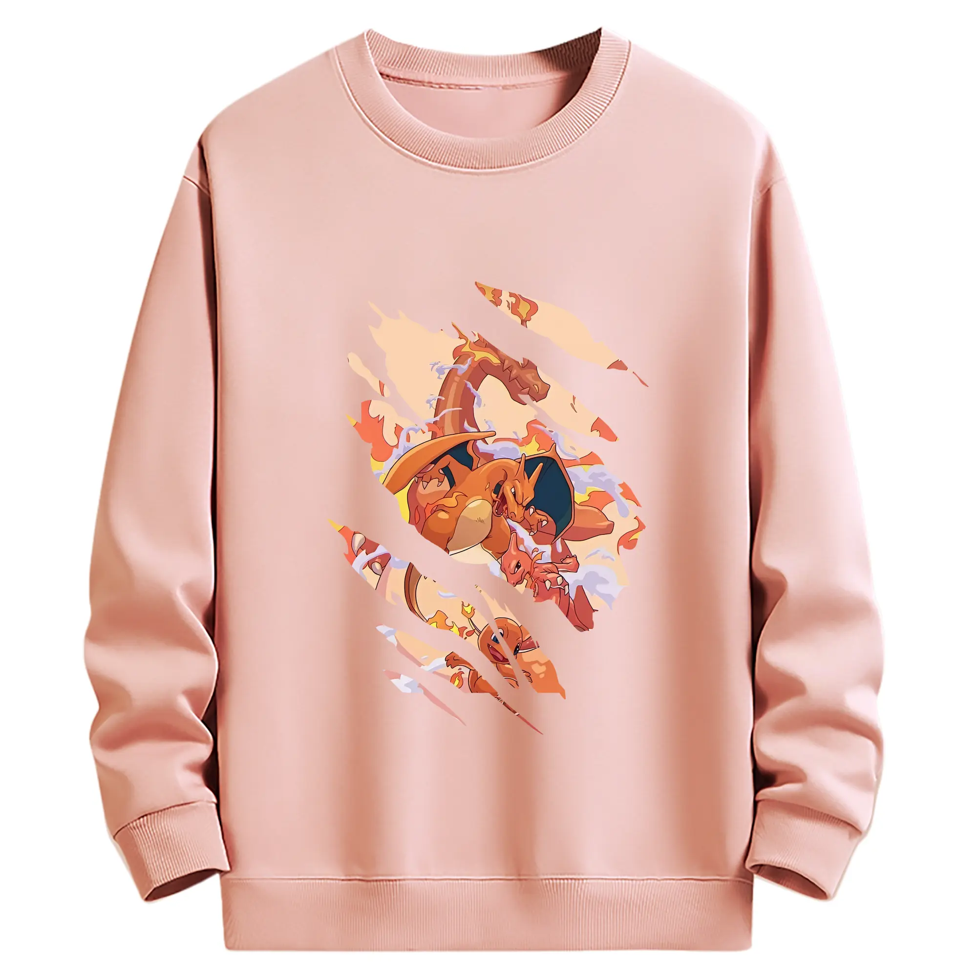 ポケモン グッズ,リザードン - 薄手 クルーネック スウェット 裏毛260g · ポリエステル 春秋向け カジュアル 男女兼用 · トレーナー デイリー スポーツ 散歩に最適