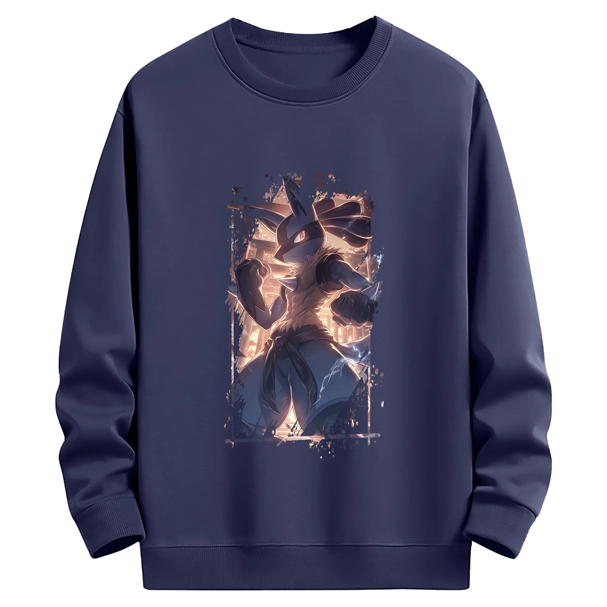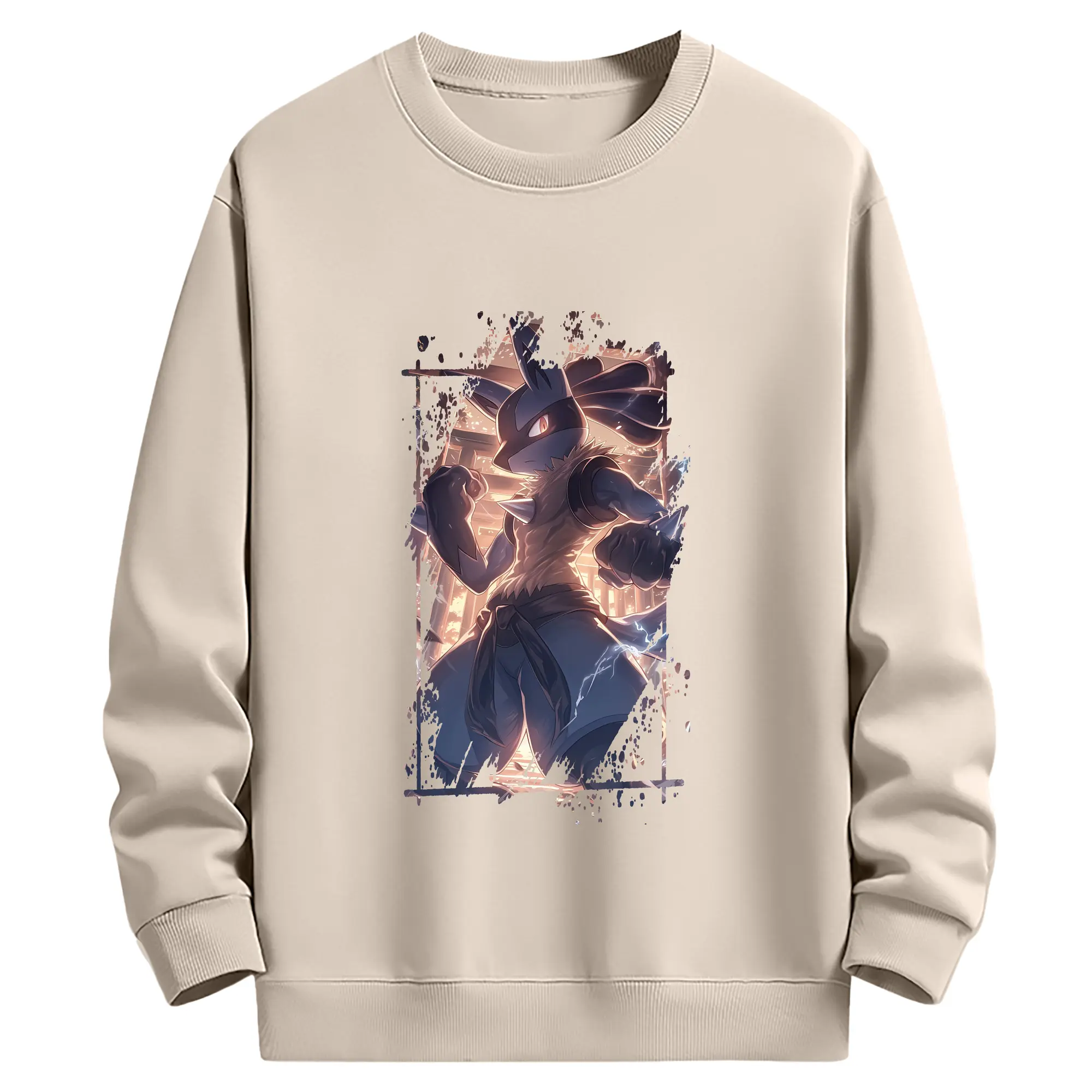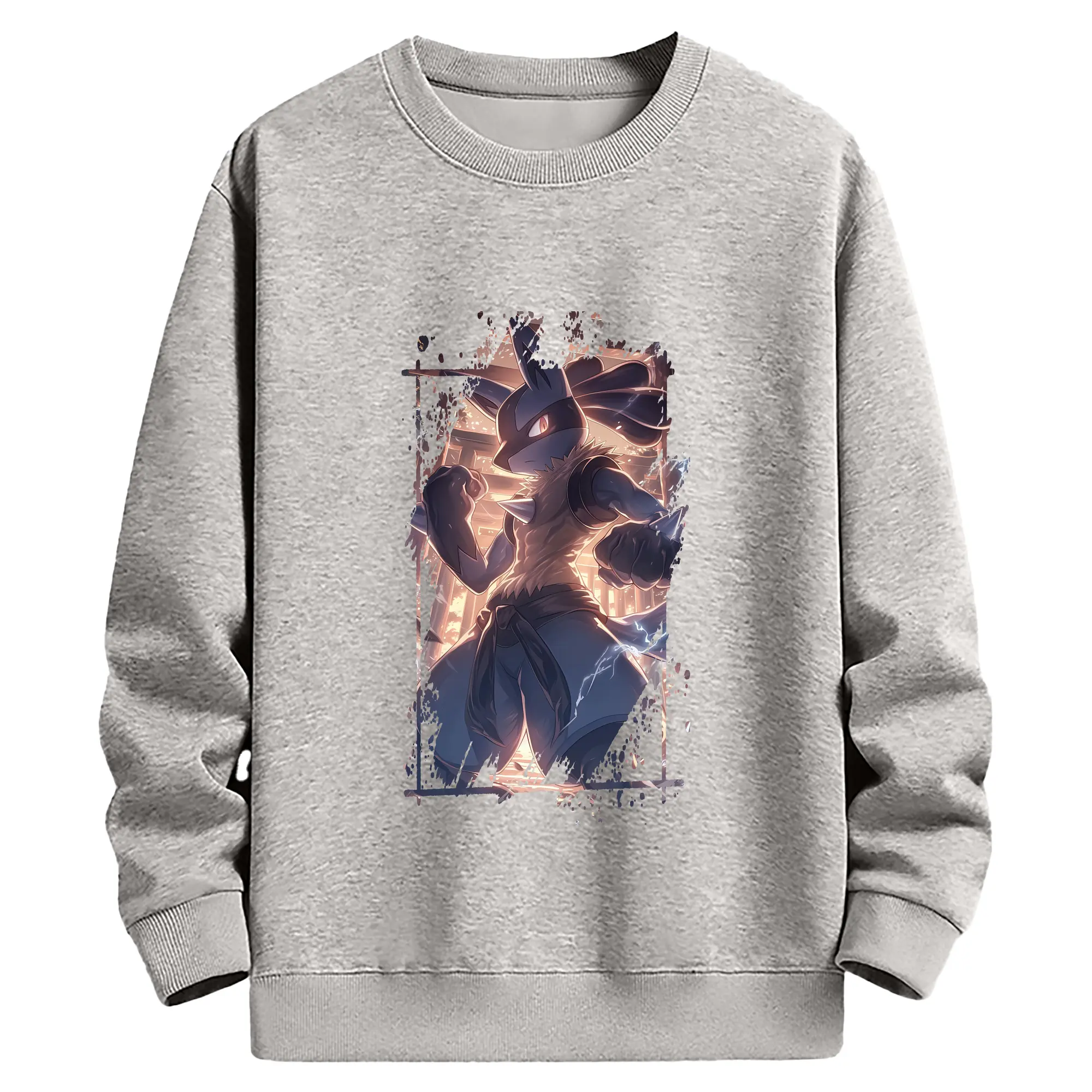 ポケモン グッズ,ルカリオ - 薄手 クルーネック スウェット 裏毛260g · ポリエステル 春秋向け カジュアル 男女兼用 · トレーナー デイリー スポーツ 散歩に最適