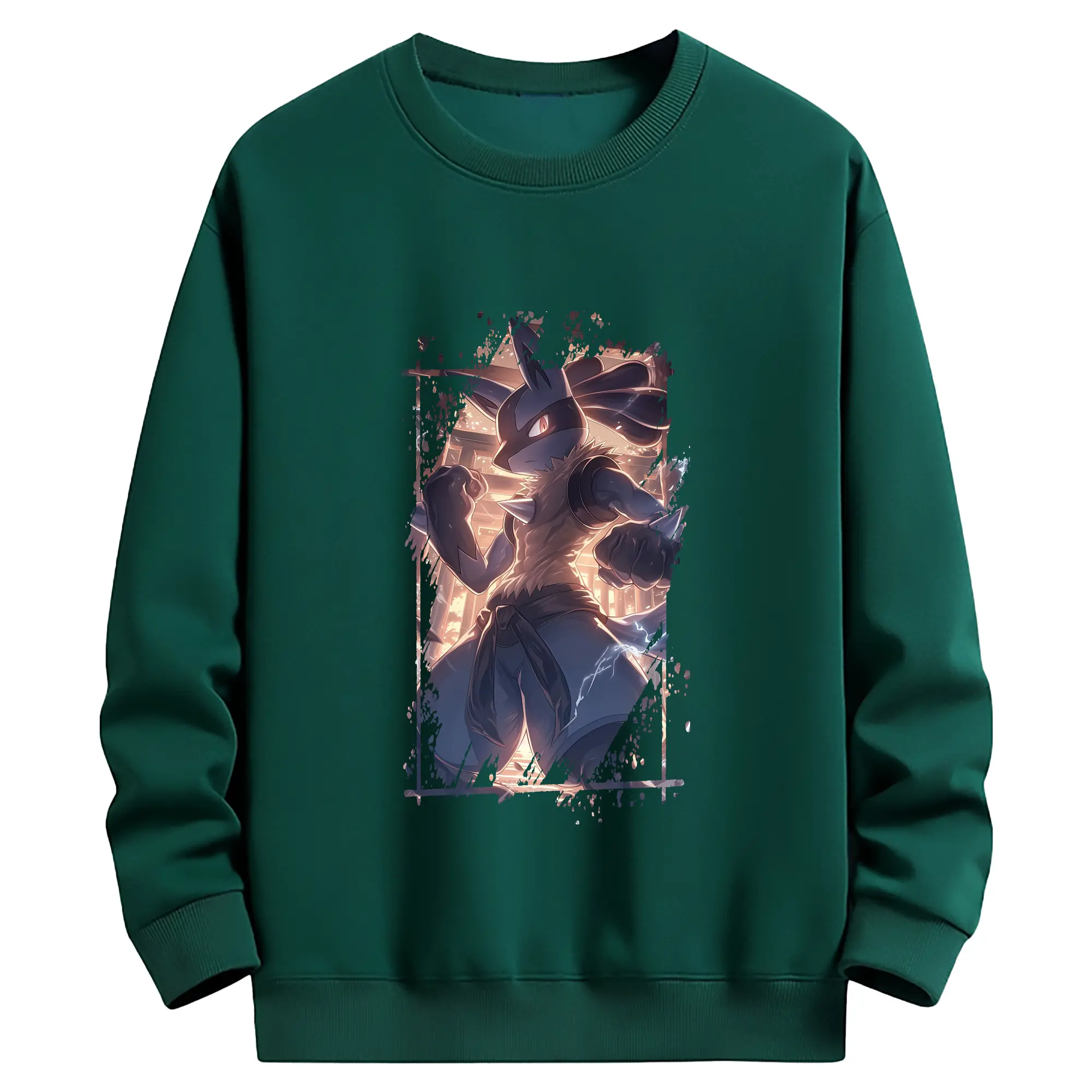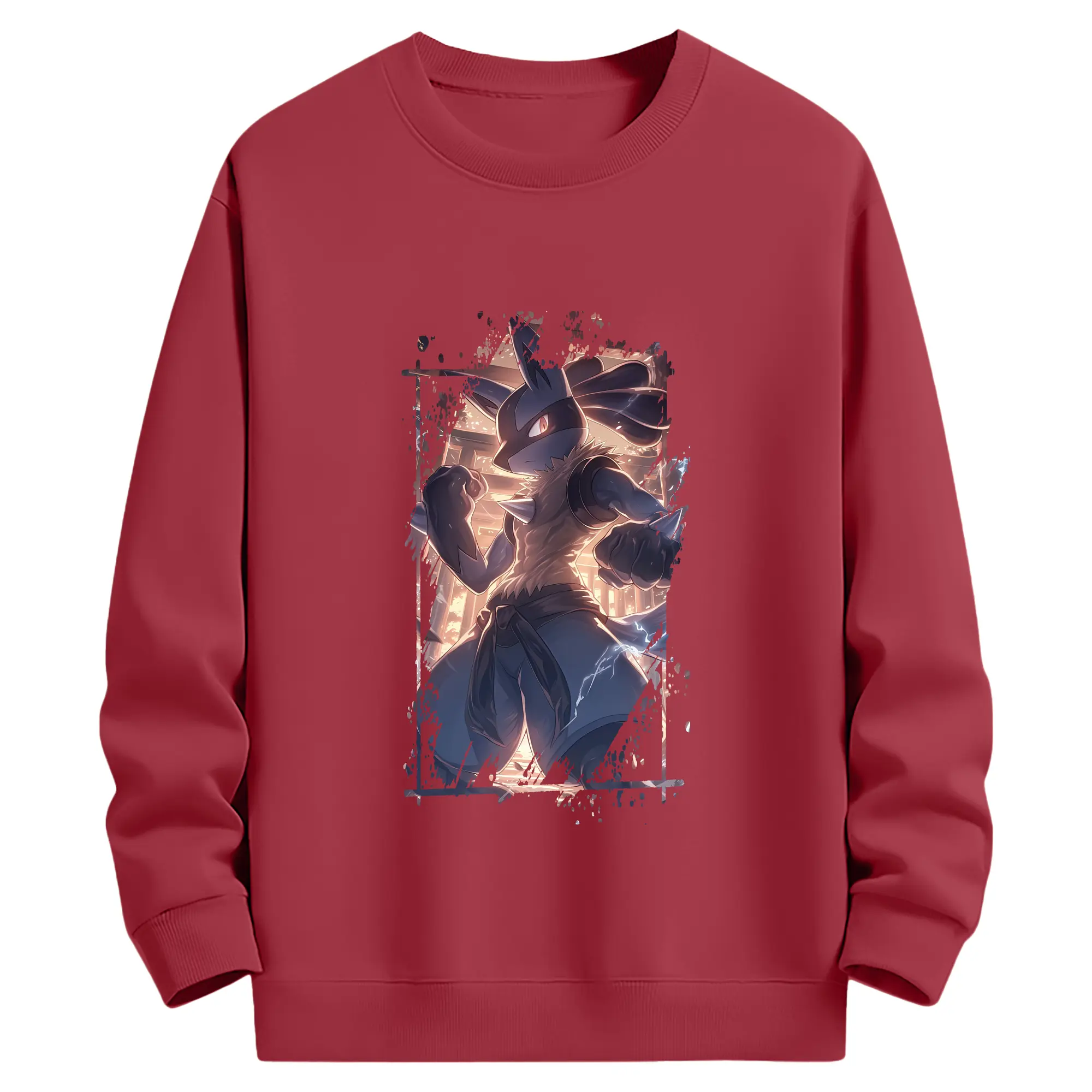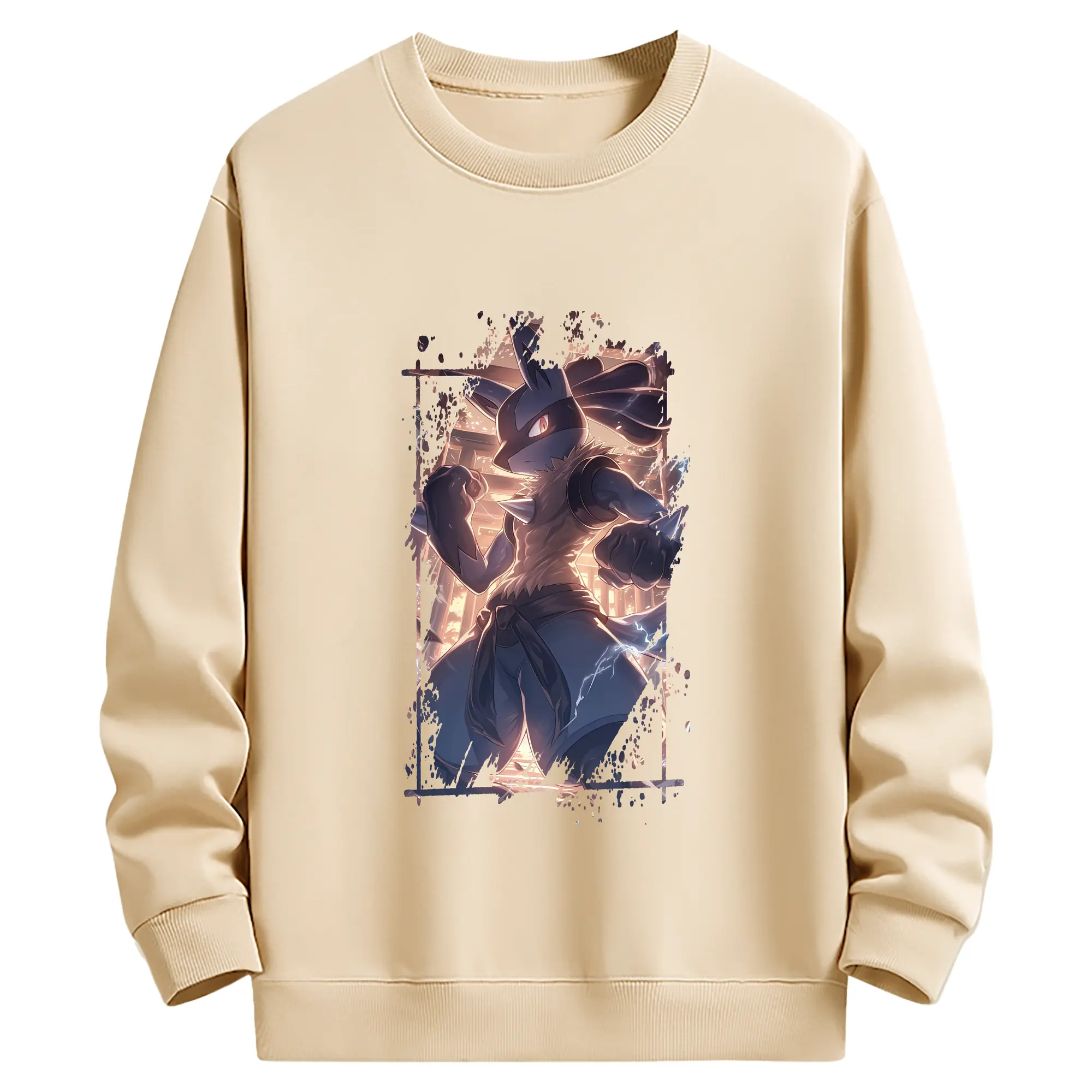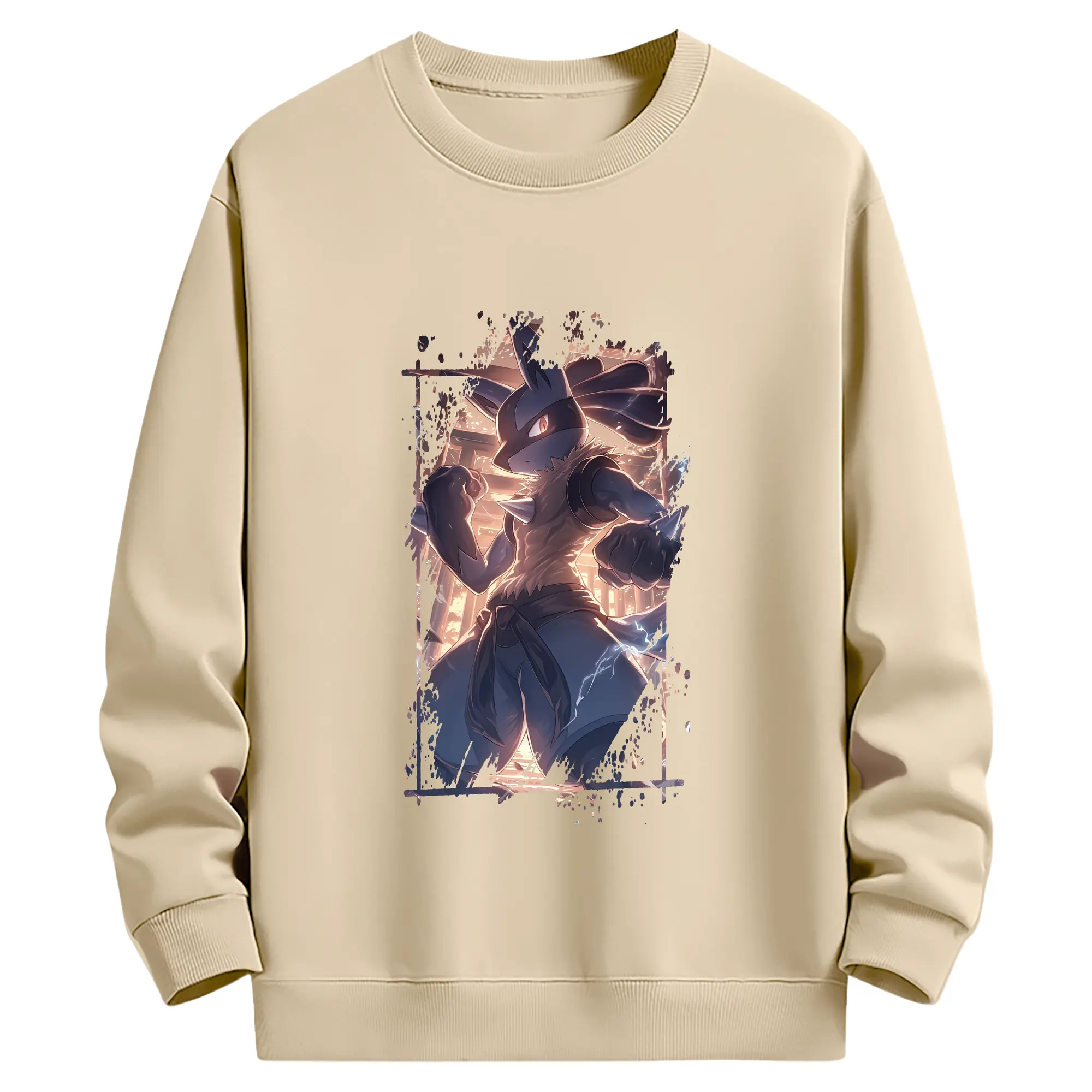 ポケモン グッズ,ルカリオ - 薄手 クルーネック スウェット 裏毛260g · ポリエステル 春秋向け カジュアル 男女兼用 · トレーナー デイリー スポーツ 散歩に最適