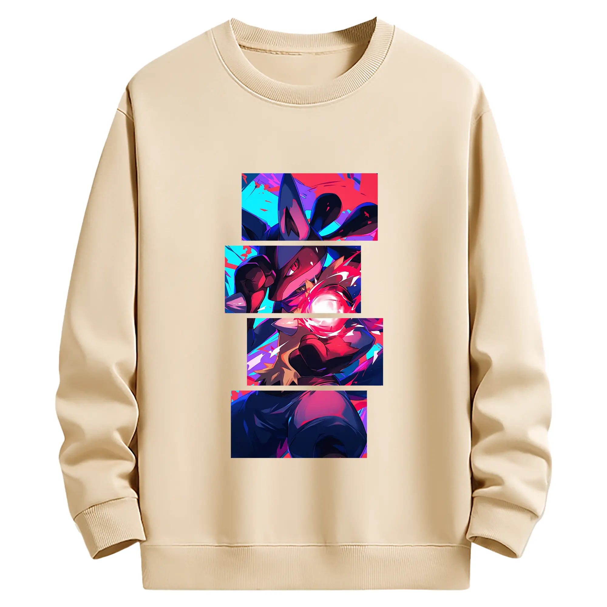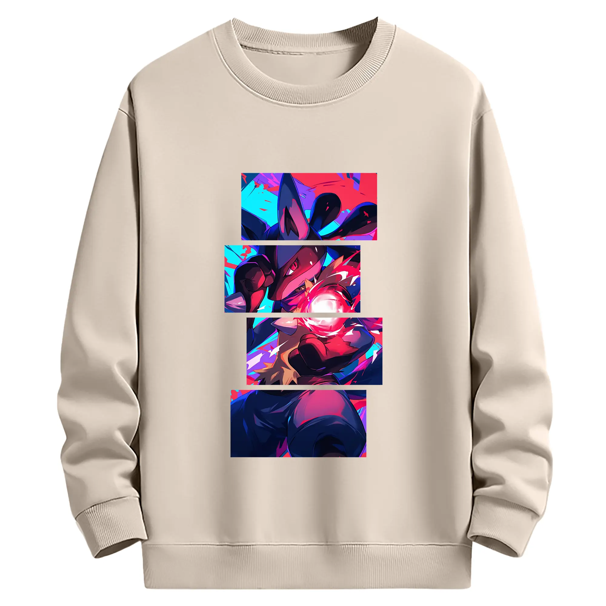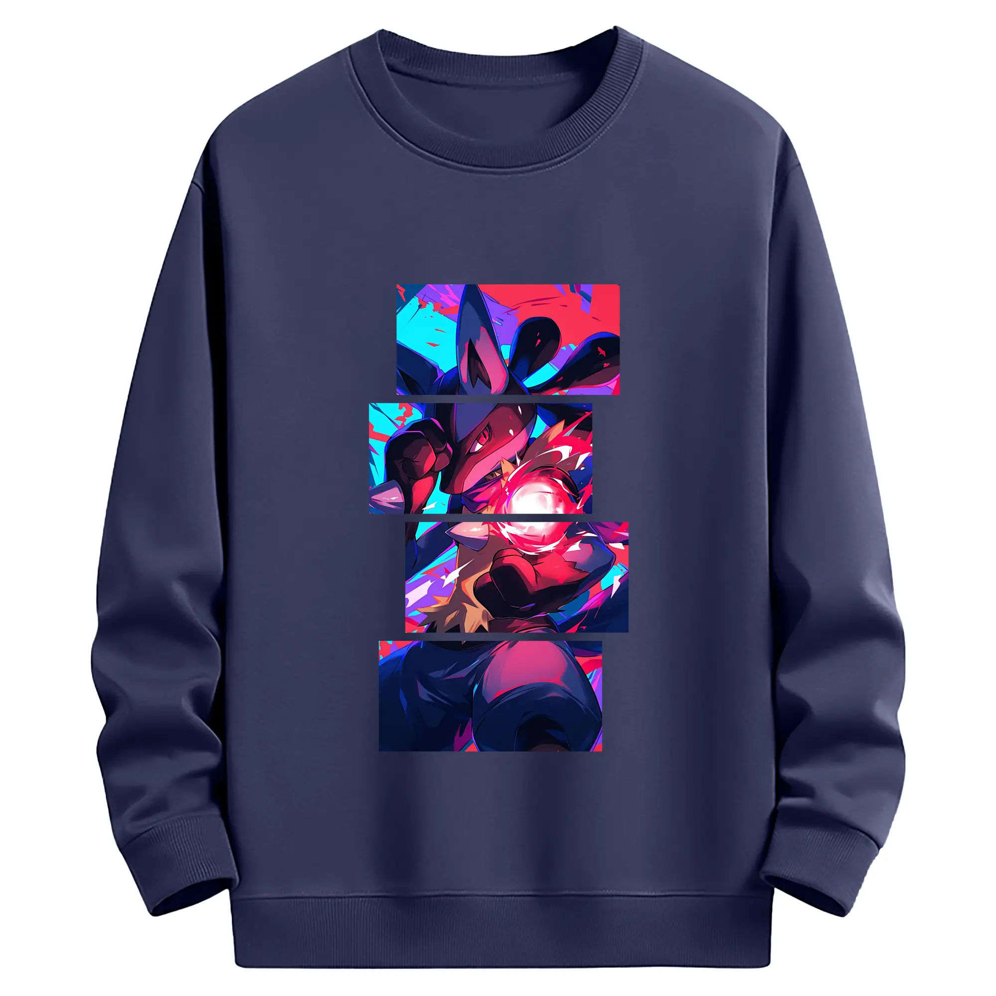 ポケモン グッズ,ルカリオ - 薄手 クルーネック スウェット 裏毛260g · ポリエステル 春秋向け カジュアル 男女兼用 · トレーナー デイリー スポーツ 散歩に最適