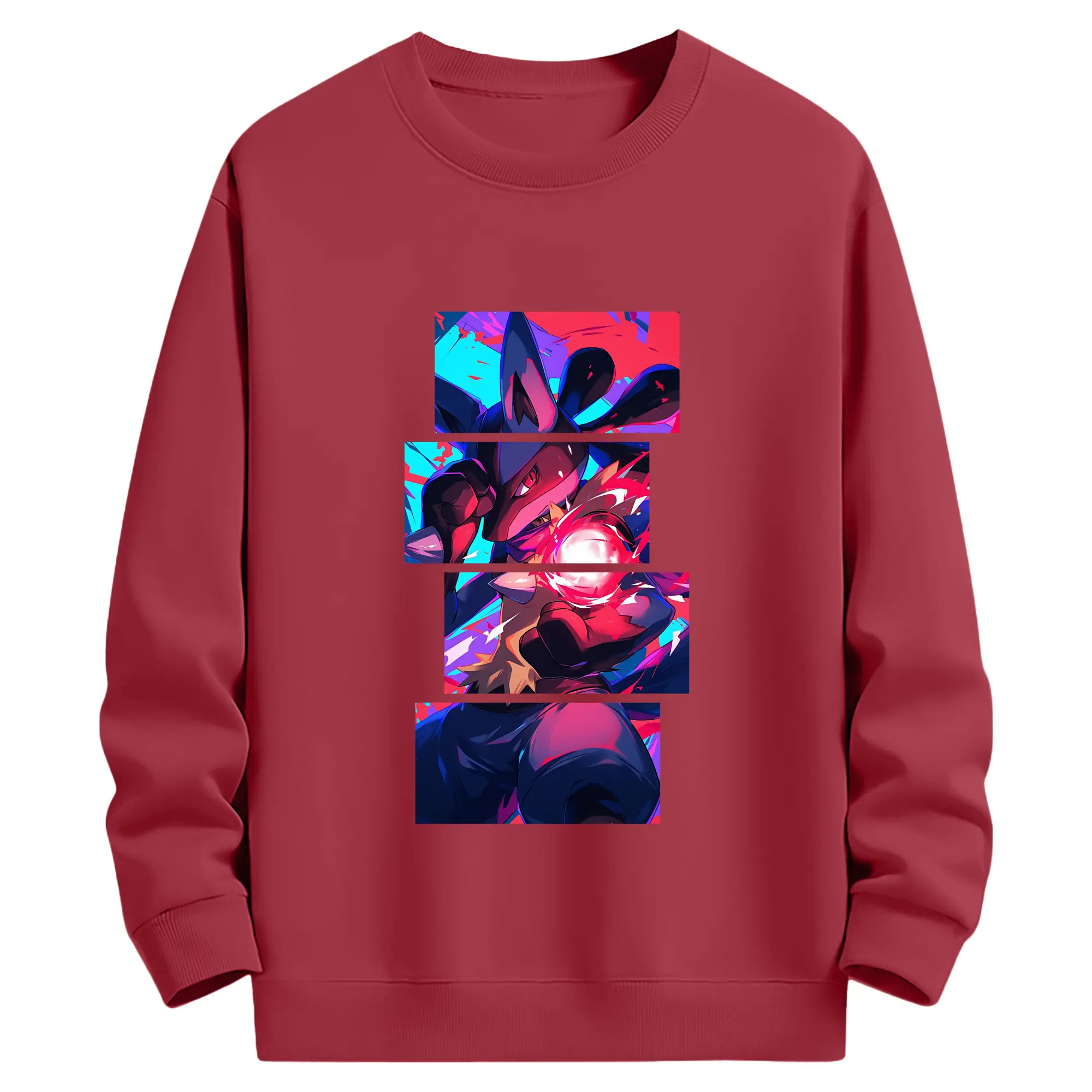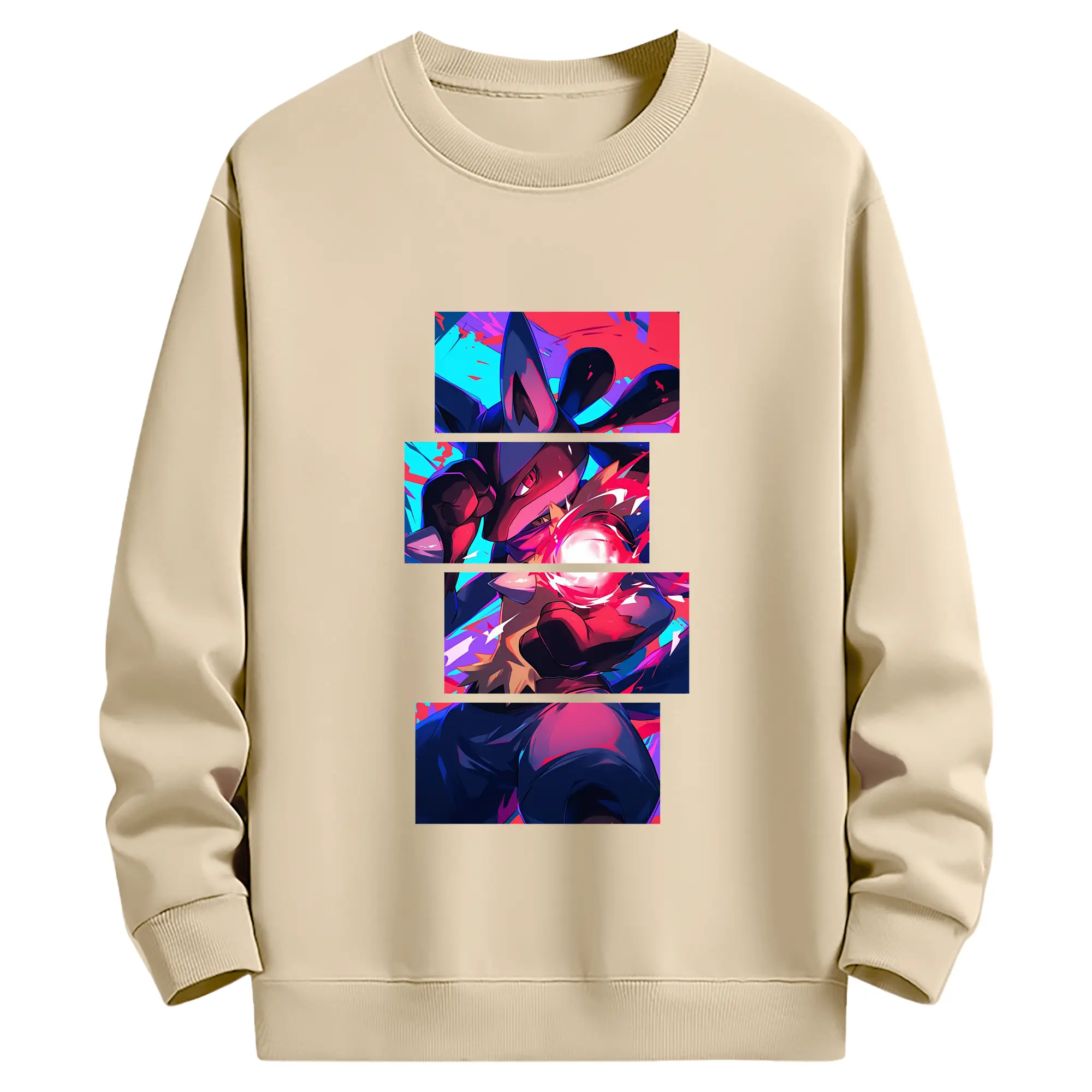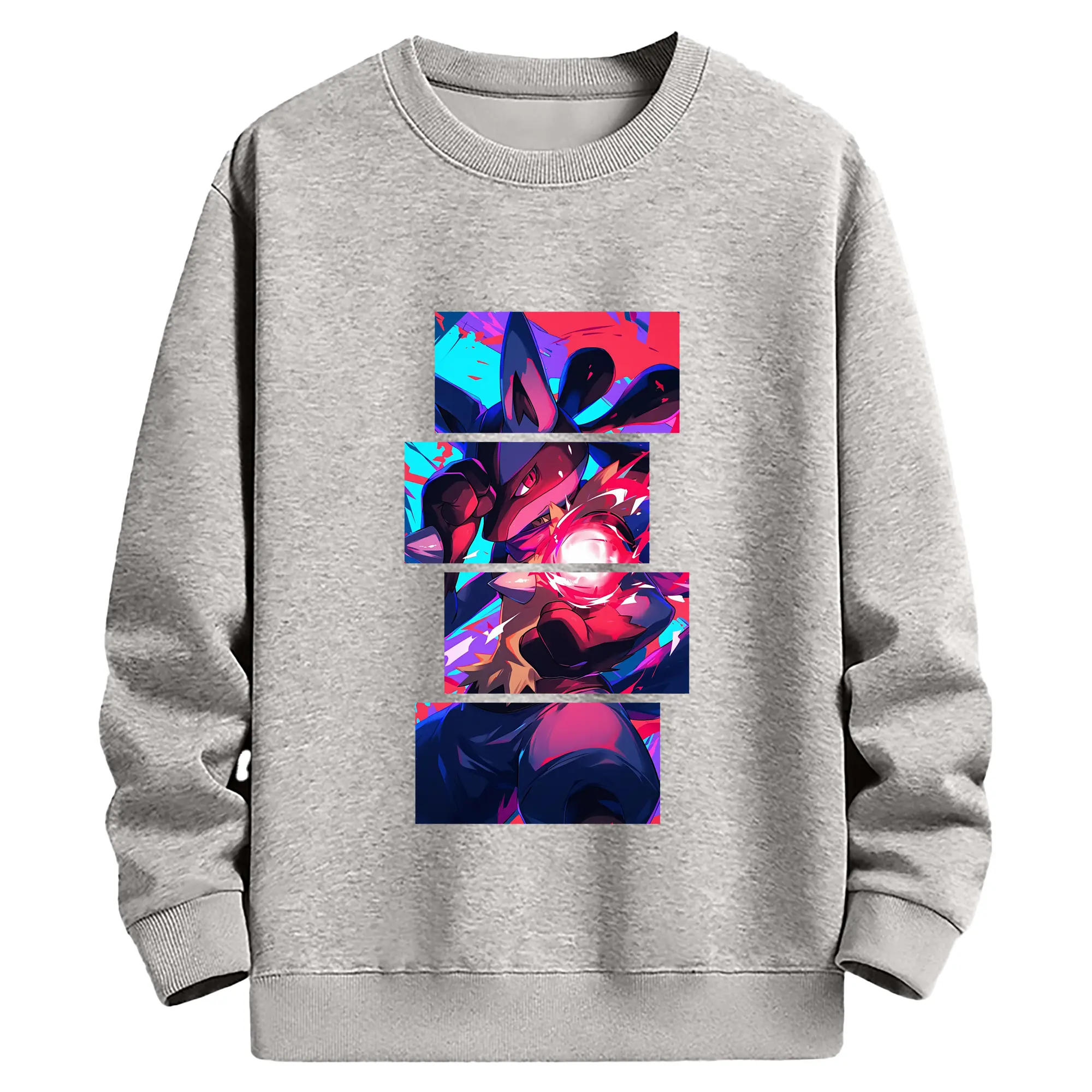 ポケモン グッズ,ルカリオ - 薄手 クルーネック スウェット 裏毛260g · ポリエステル 春秋向け カジュアル 男女兼用 · トレーナー デイリー スポーツ 散歩に最適