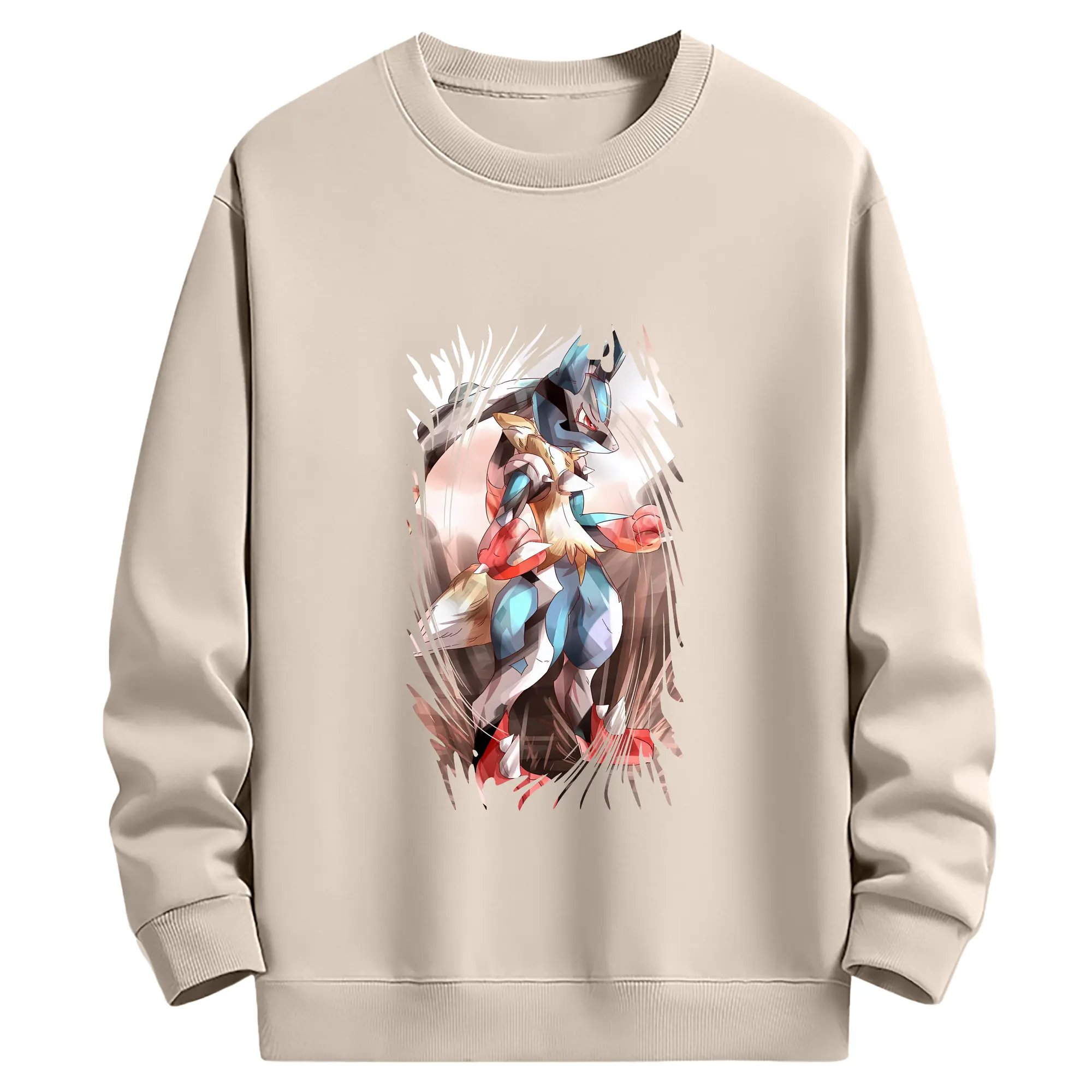 ポケモン グッズ,ルカリオ - 薄手 クルーネック スウェット 裏毛260g · ポリエステル 春秋向け カジュアル 男女兼用 · トレーナー デイリー スポーツ 散歩に最適