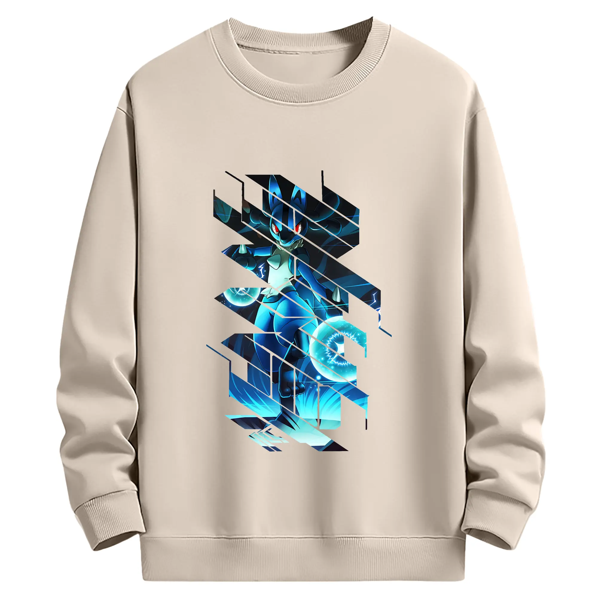 ポケモン グッズ,ルカリオ - 薄手 クルーネック スウェット 裏毛260g · ポリエステル 春秋向け カジュアル 男女兼用 · トレーナー デイリー スポーツ 散歩に最適