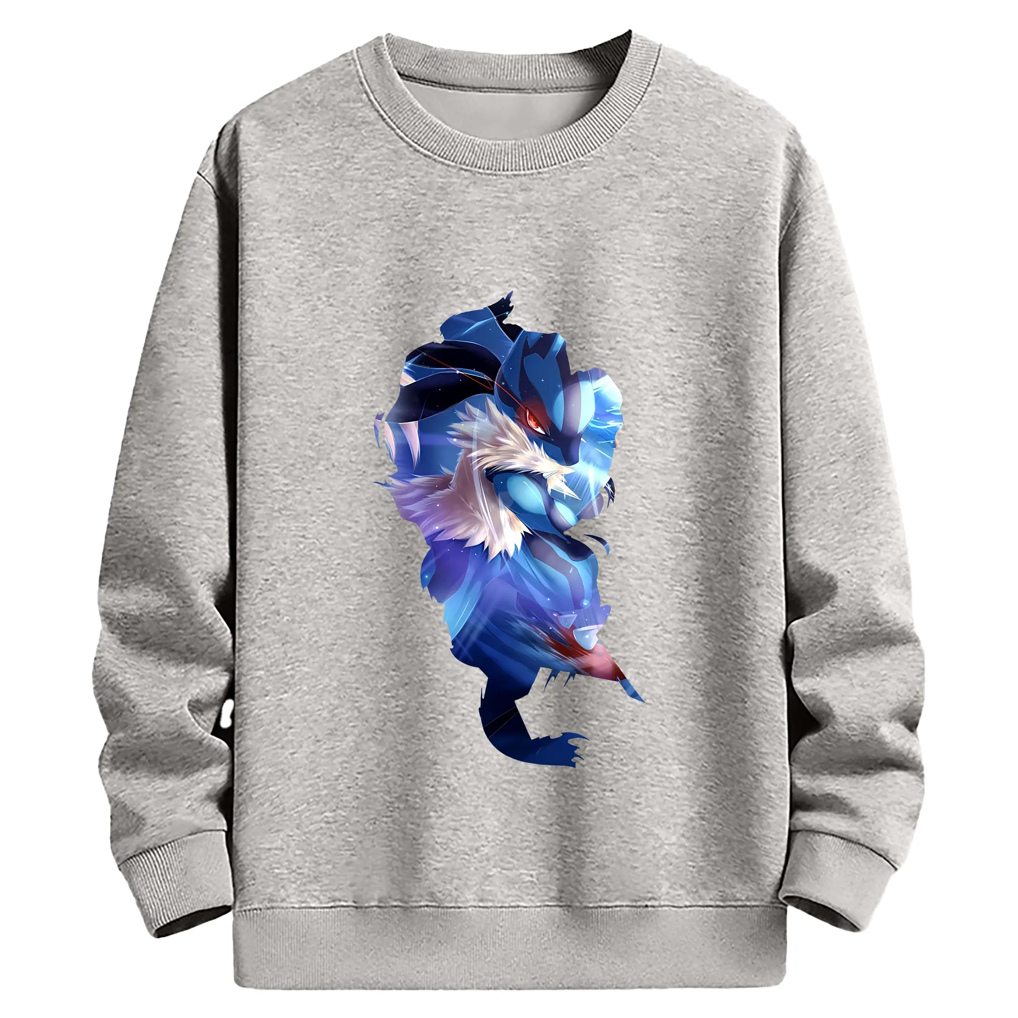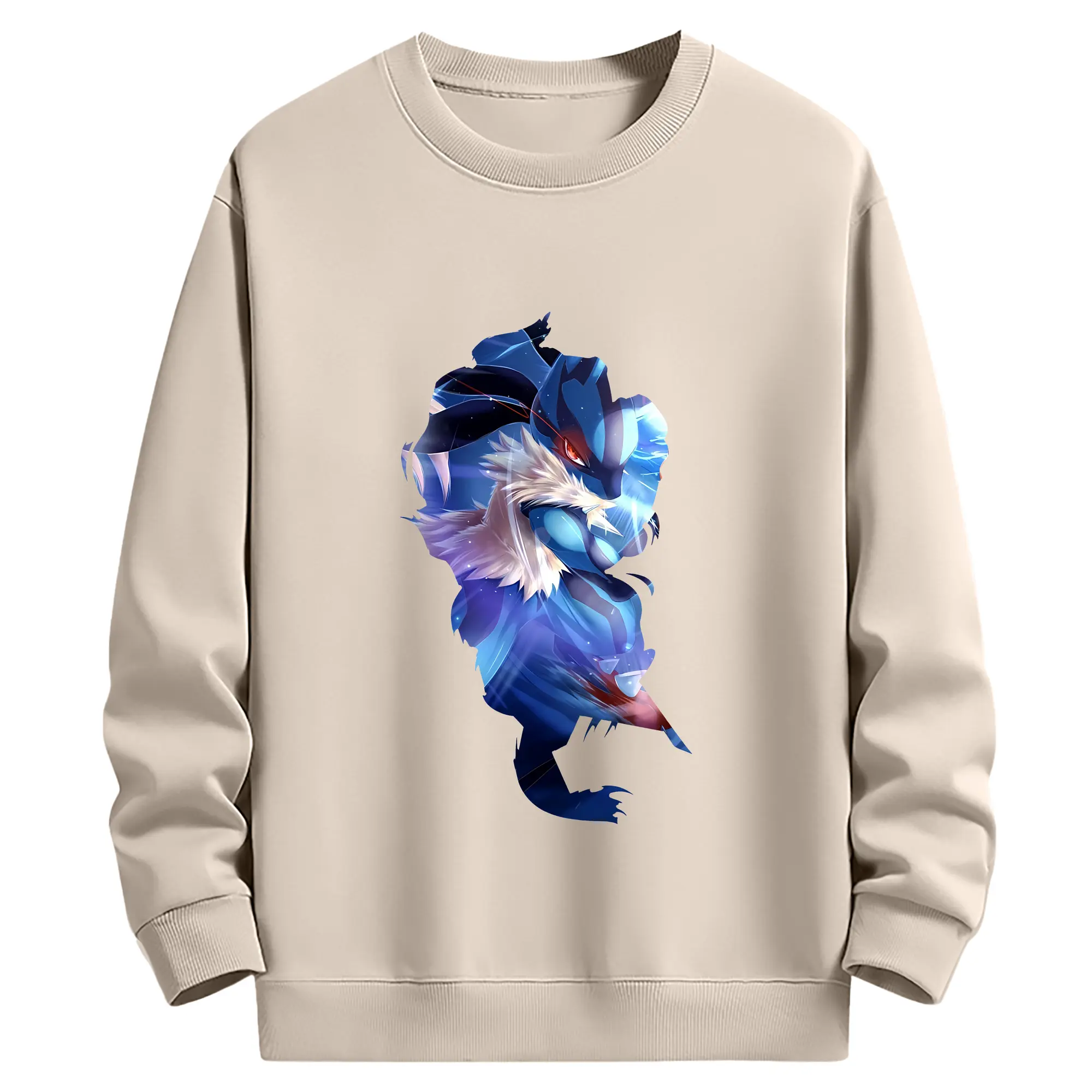 ポケモン グッズ,ルカリオ - 薄手 クルーネック スウェット 裏毛260g · ポリエステル 春秋向け カジュアル 男女兼用 · トレーナー デイリー スポーツ 散歩に最適