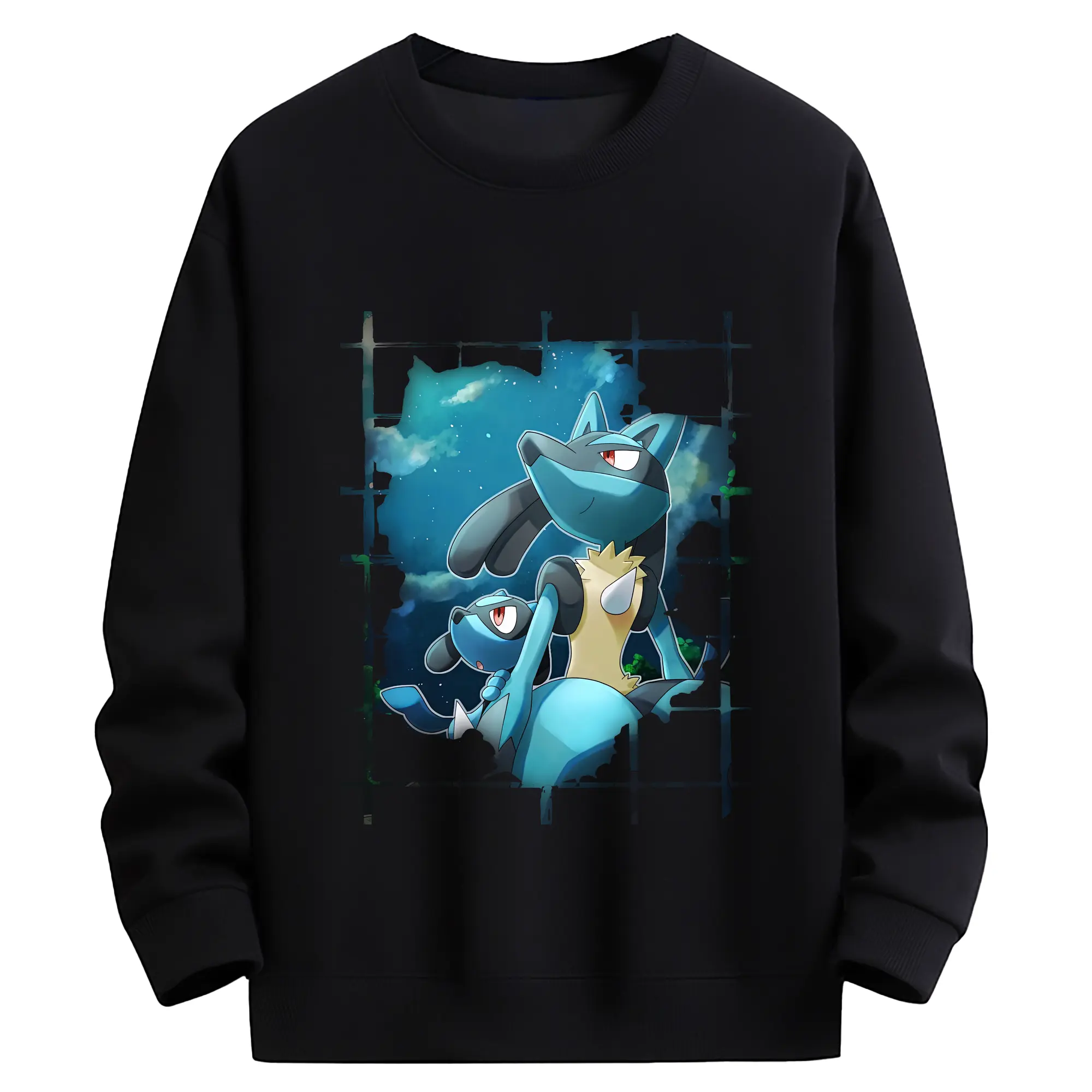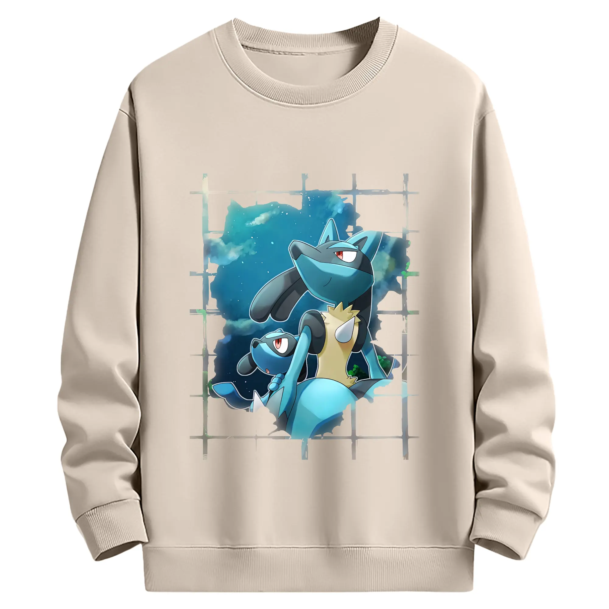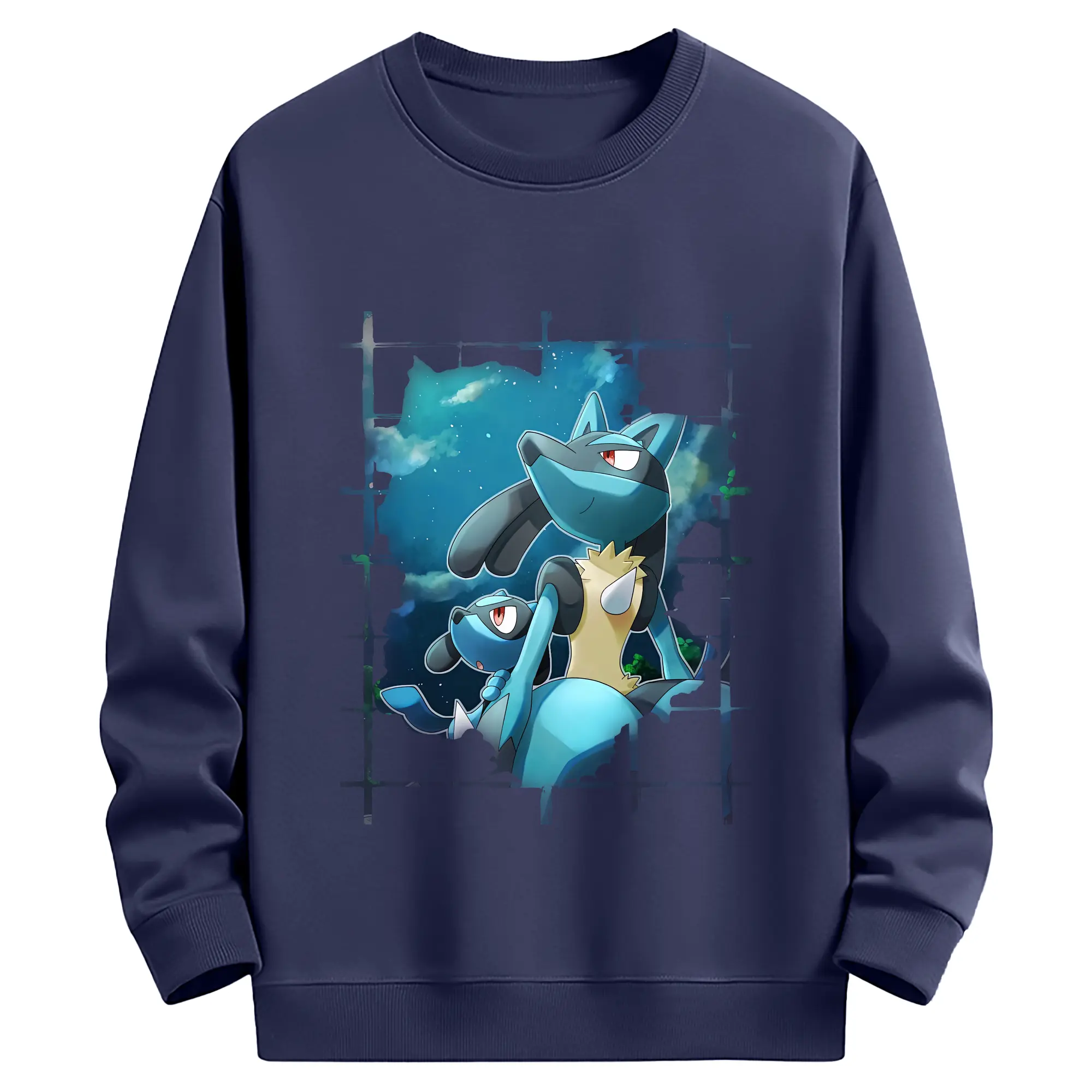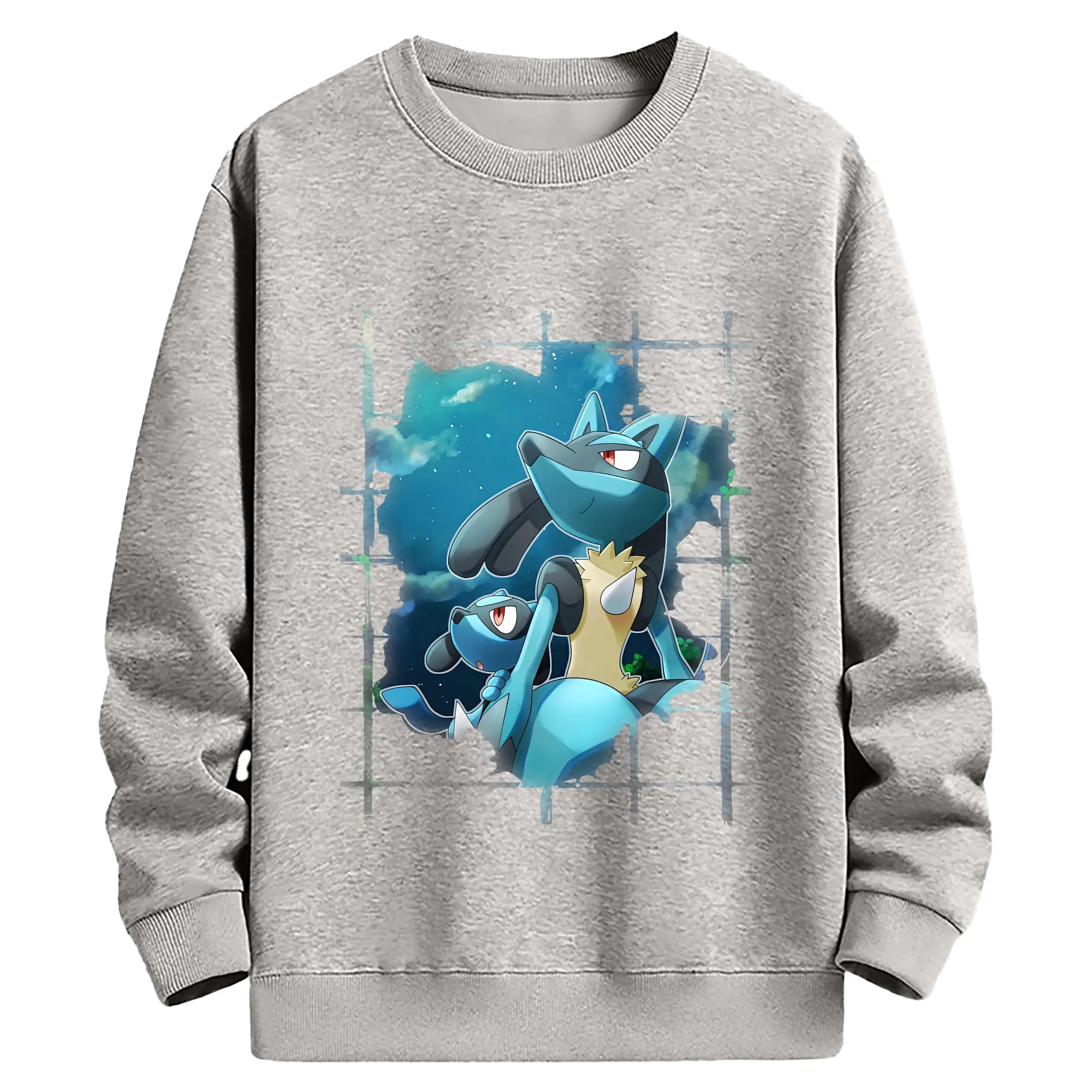 ポケモン グッズ,ルカリオ - 薄手 クルーネック スウェット 裏毛260g · ポリエステル 春秋向け カジュアル 男女兼用 · トレーナー デイリー スポーツ 散歩に最適