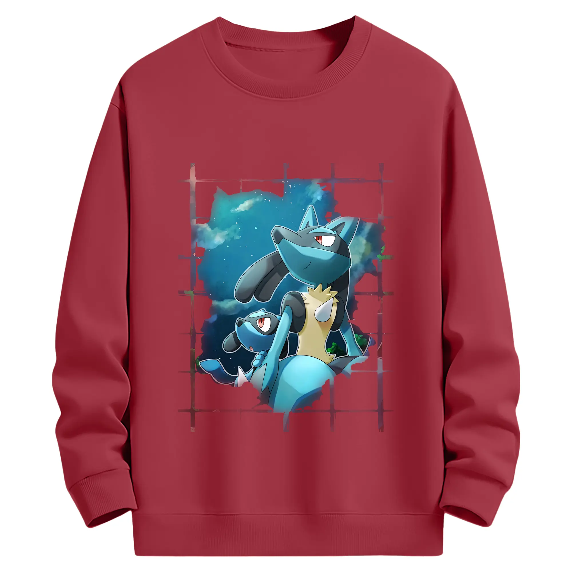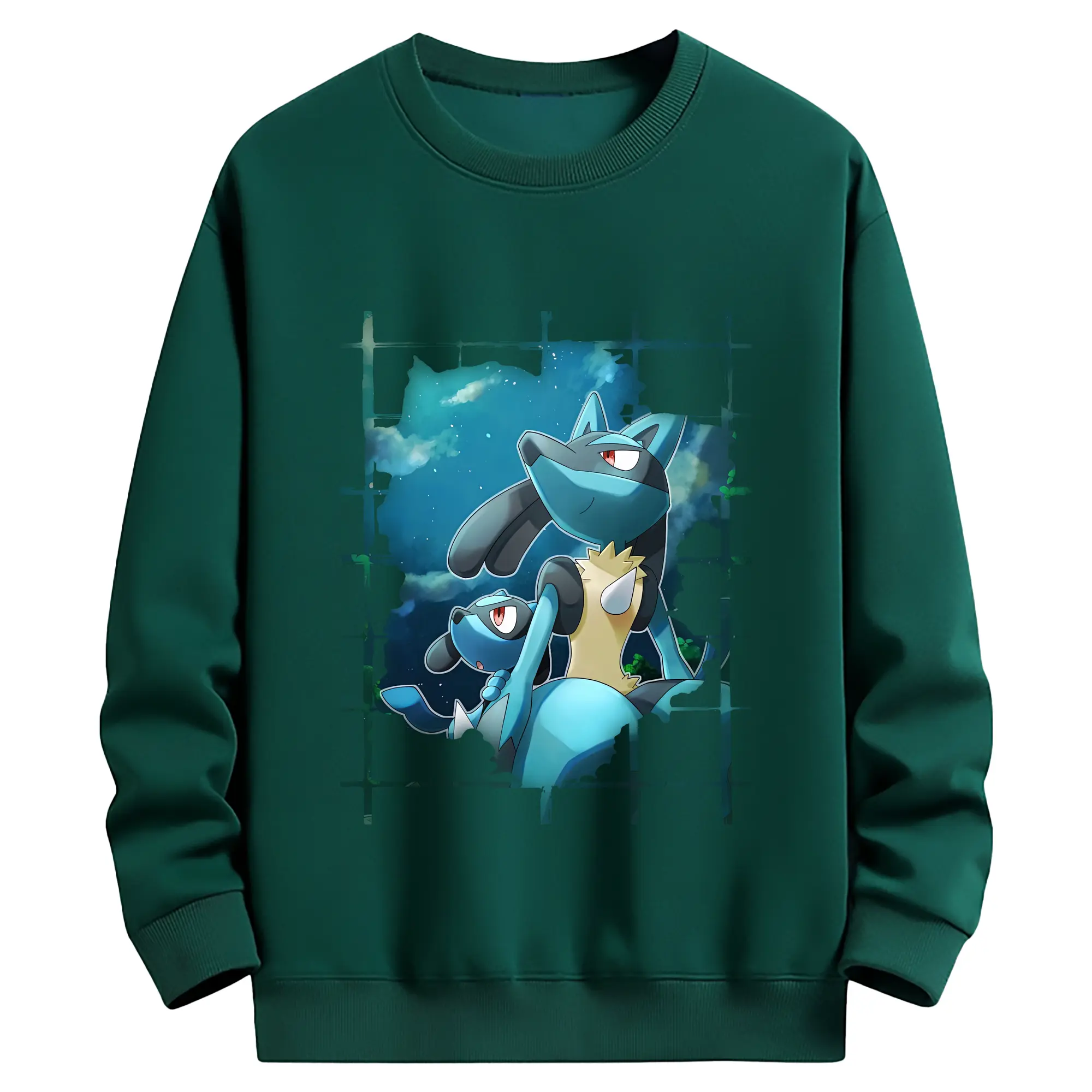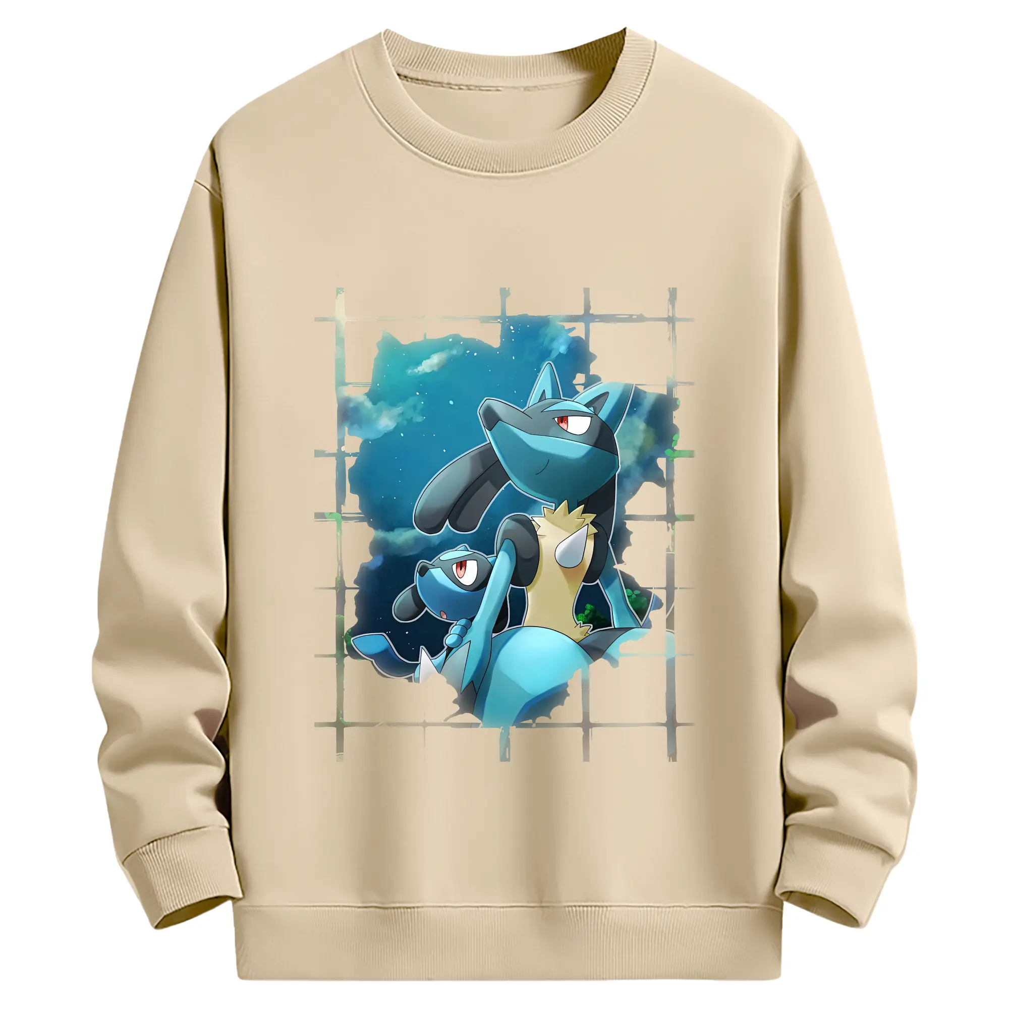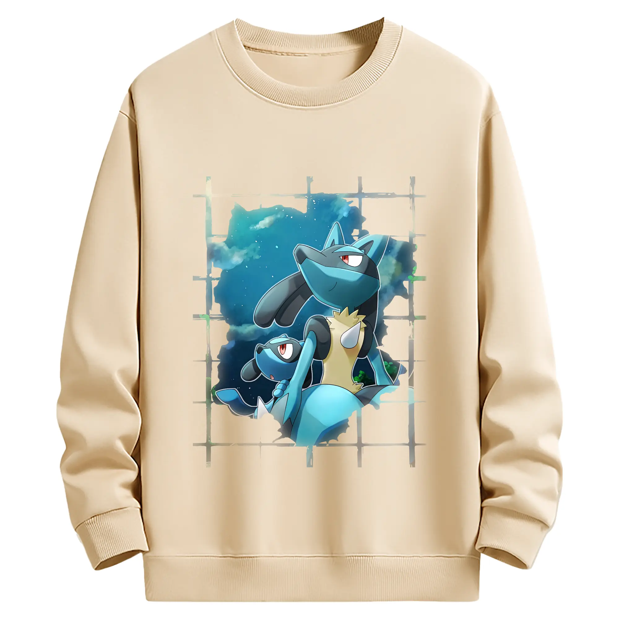 ポケモン グッズ,ルカリオ - 薄手 クルーネック スウェット 裏毛260g · ポリエステル 春秋向け カジュアル 男女兼用 · トレーナー デイリー スポーツ 散歩に最適