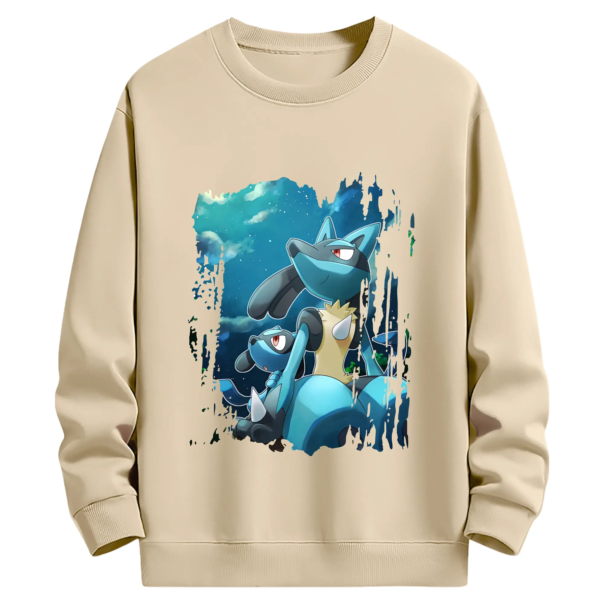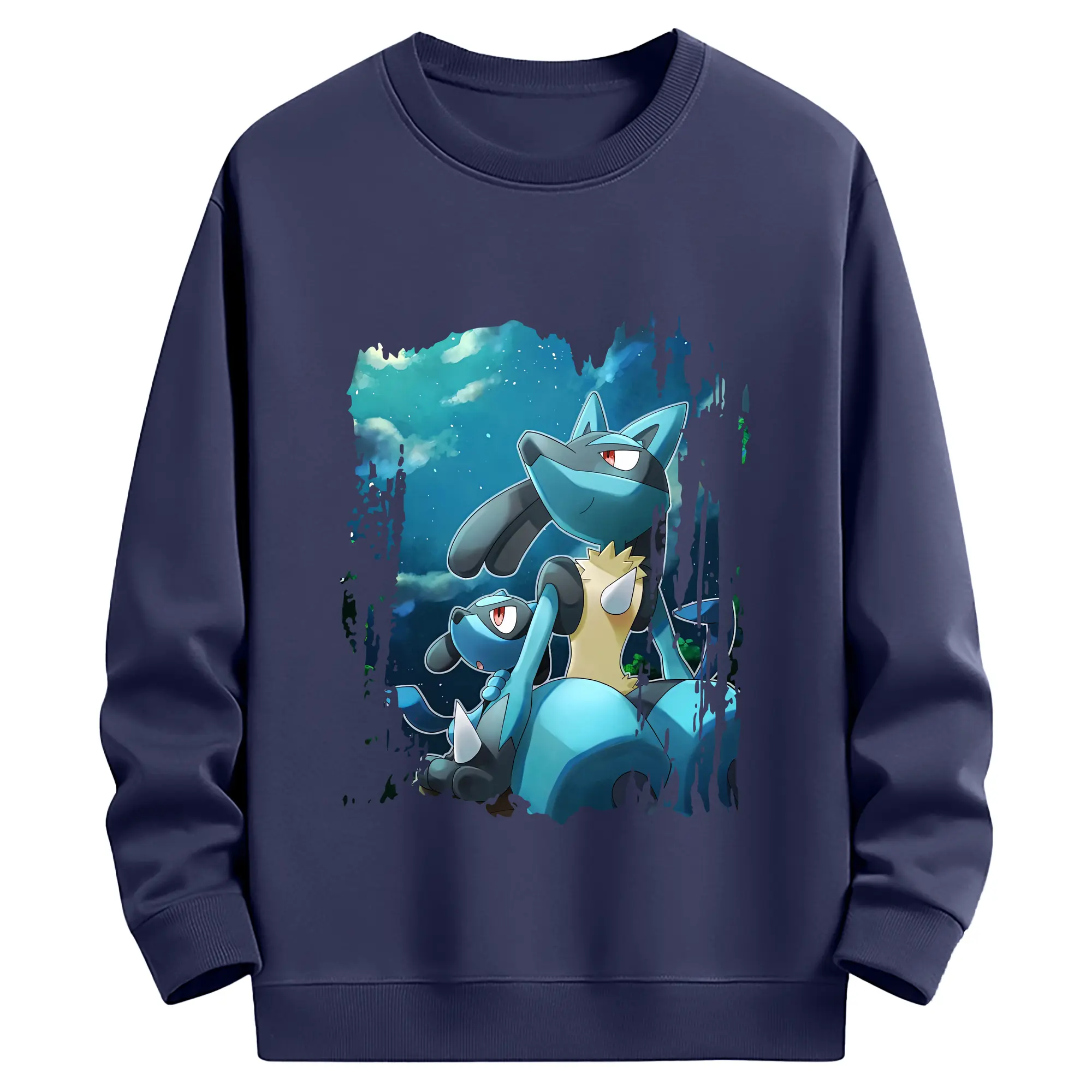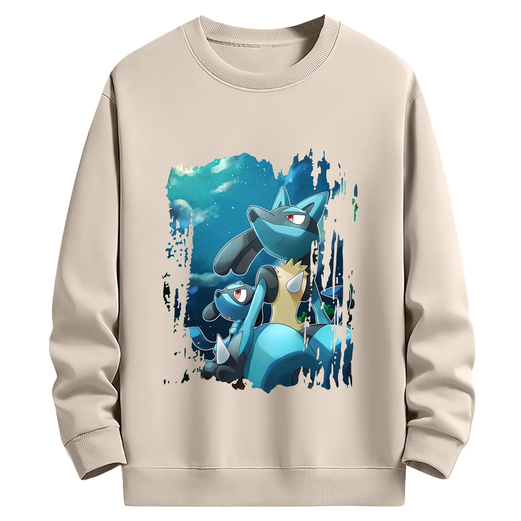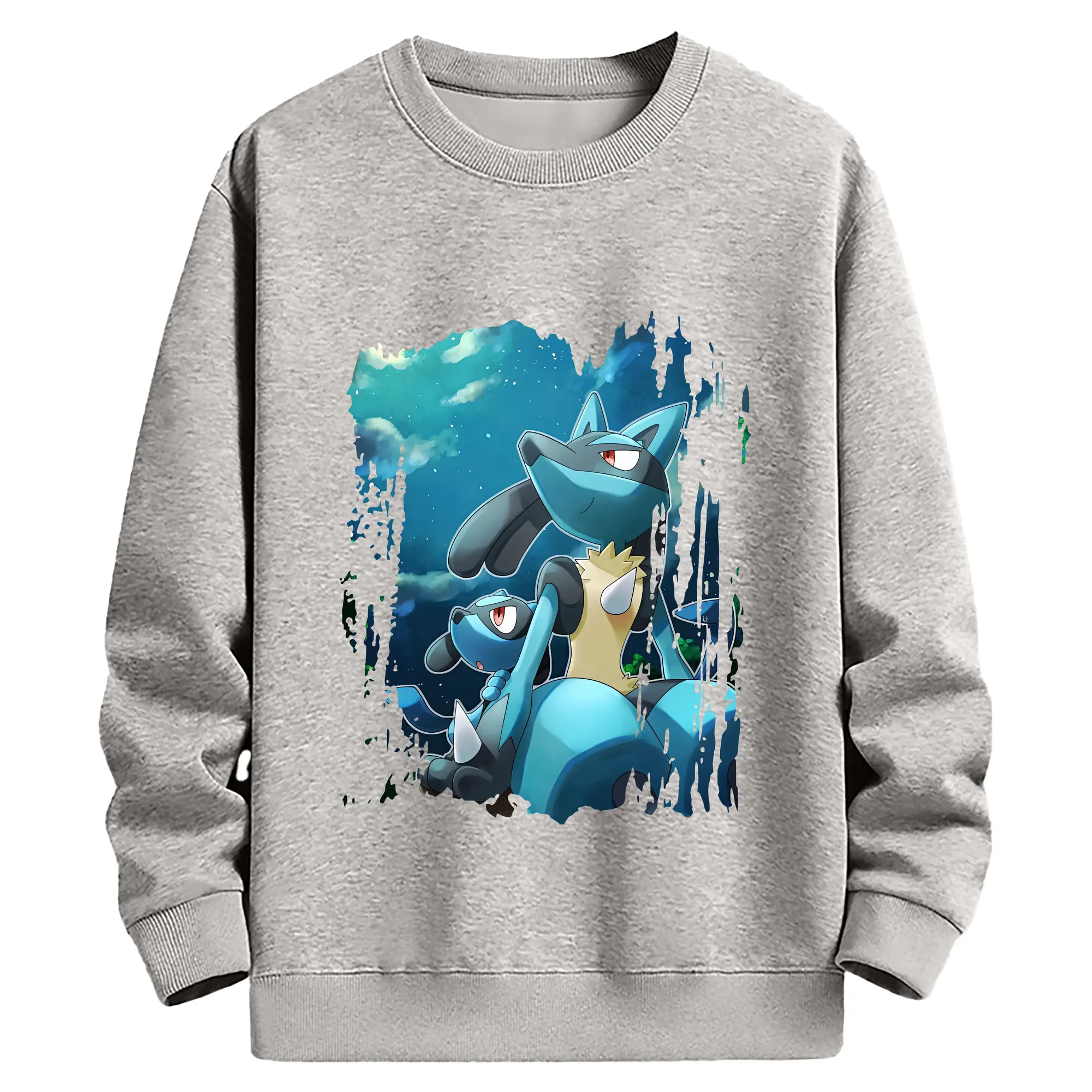 ポケモン グッズ,ルカリオ - 薄手 クルーネック スウェット 裏毛260g · ポリエステル 春秋向け カジュアル 男女兼用 · トレーナー デイリー スポーツ 散歩に最適