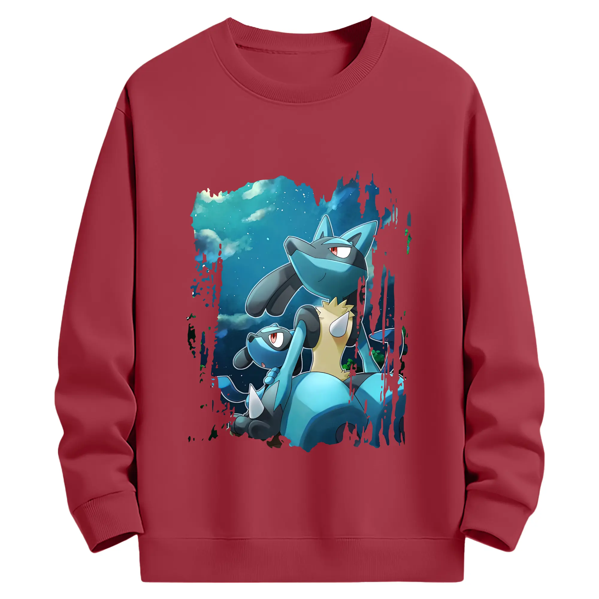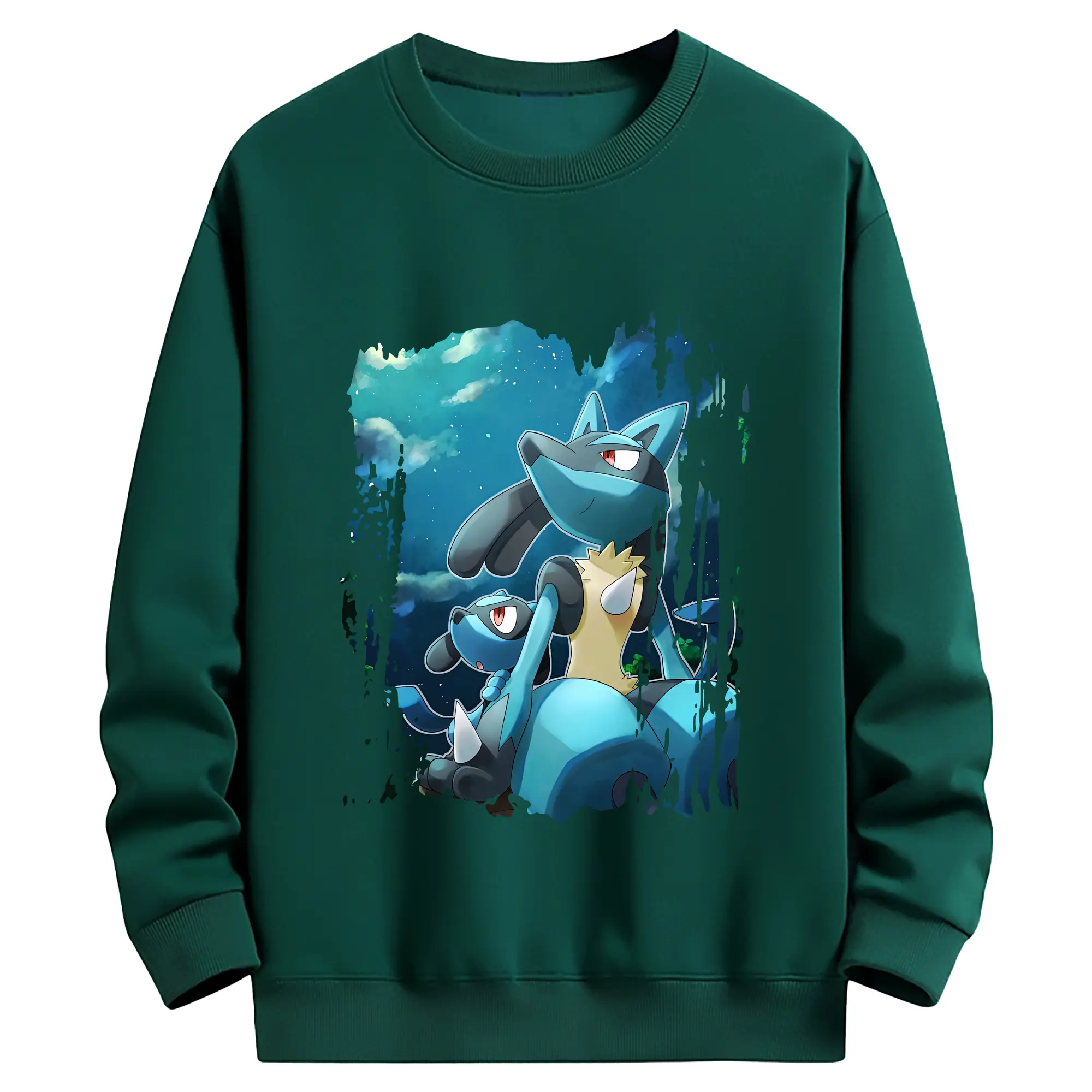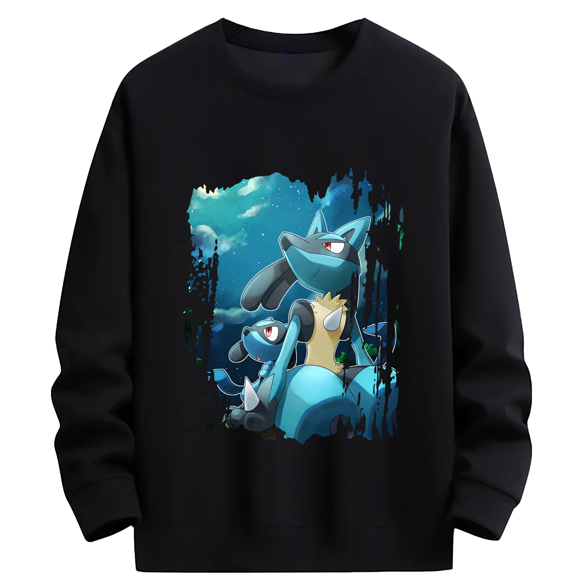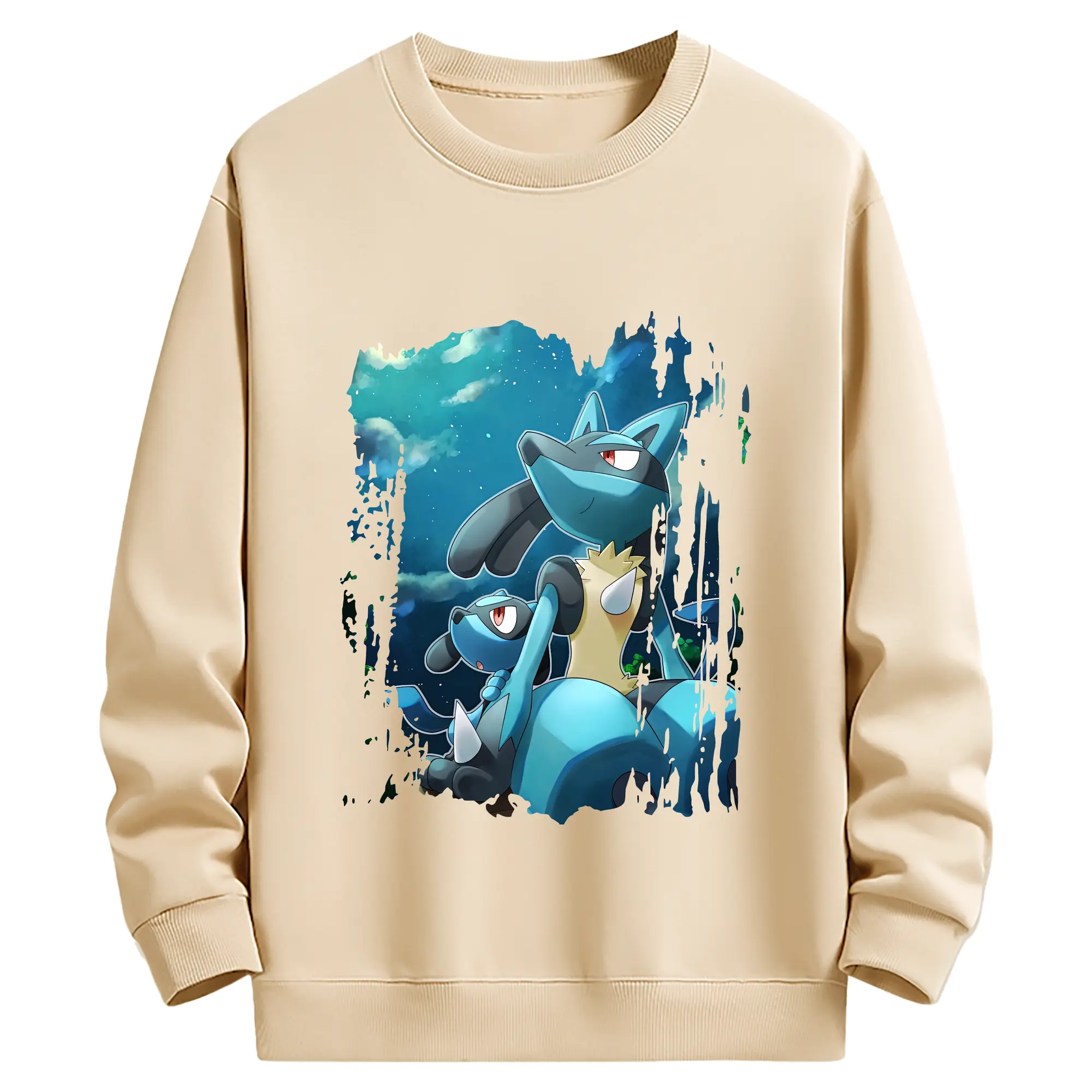ポケモン グッズ,ルカリオ - 薄手 クルーネック スウェット 裏毛260g · ポリエステル 春秋向け カジュアル 男女兼用 · トレーナー デイリー スポーツ 散歩に最適