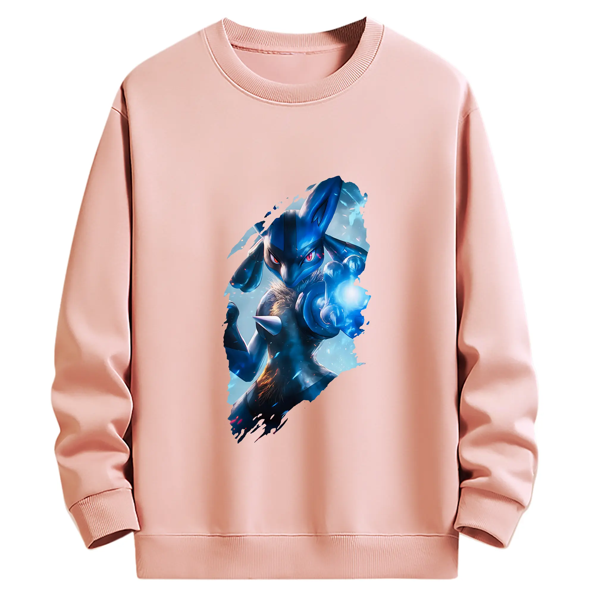 ポケモン グッズ,ルカリオ - 薄手 クルーネック スウェット 裏毛260g · ポリエステル 春秋向け カジュアル 男女兼用 · トレーナー デイリー スポーツ 散歩に最適