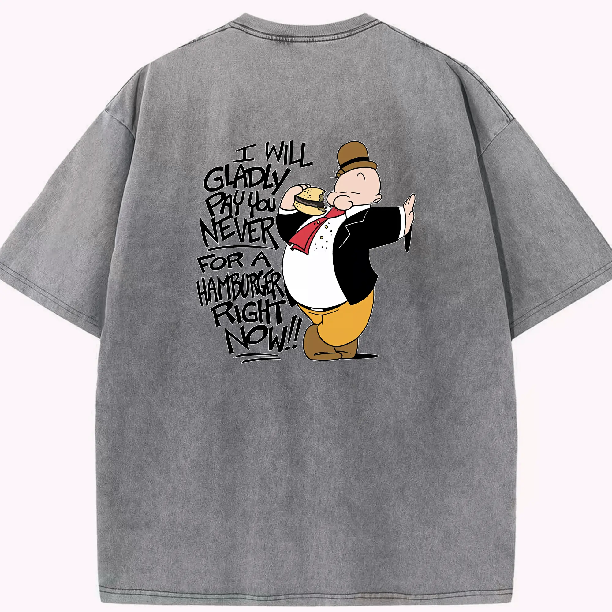 ポパイ グッズ ウィンピー - 綿100% 半袖Tシャツ ・ バックプリント ・ 快適 通気性 ・ 日常使い 散歩 スポーツ用