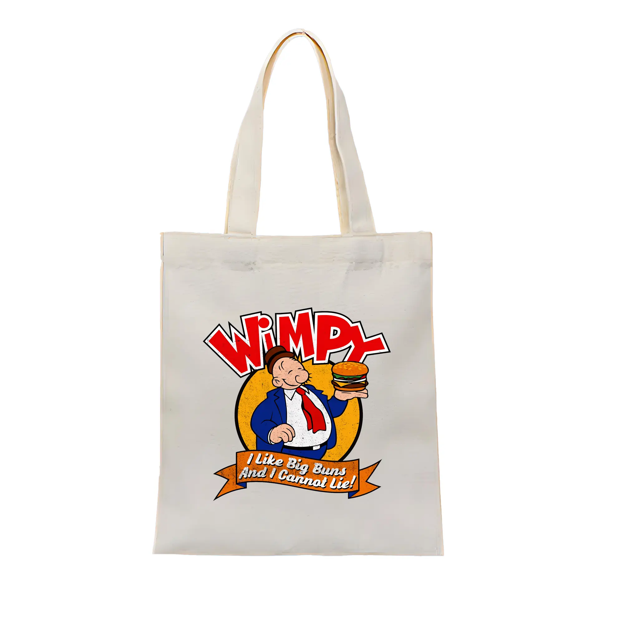 ポパイ グッズ ウィンピー - 縦型キャンバス手提げバッグ(トートバッグ) ・ キャンバス素材 ・ ショッピング用 ・ 軽量 丈夫 お手入れ簡単