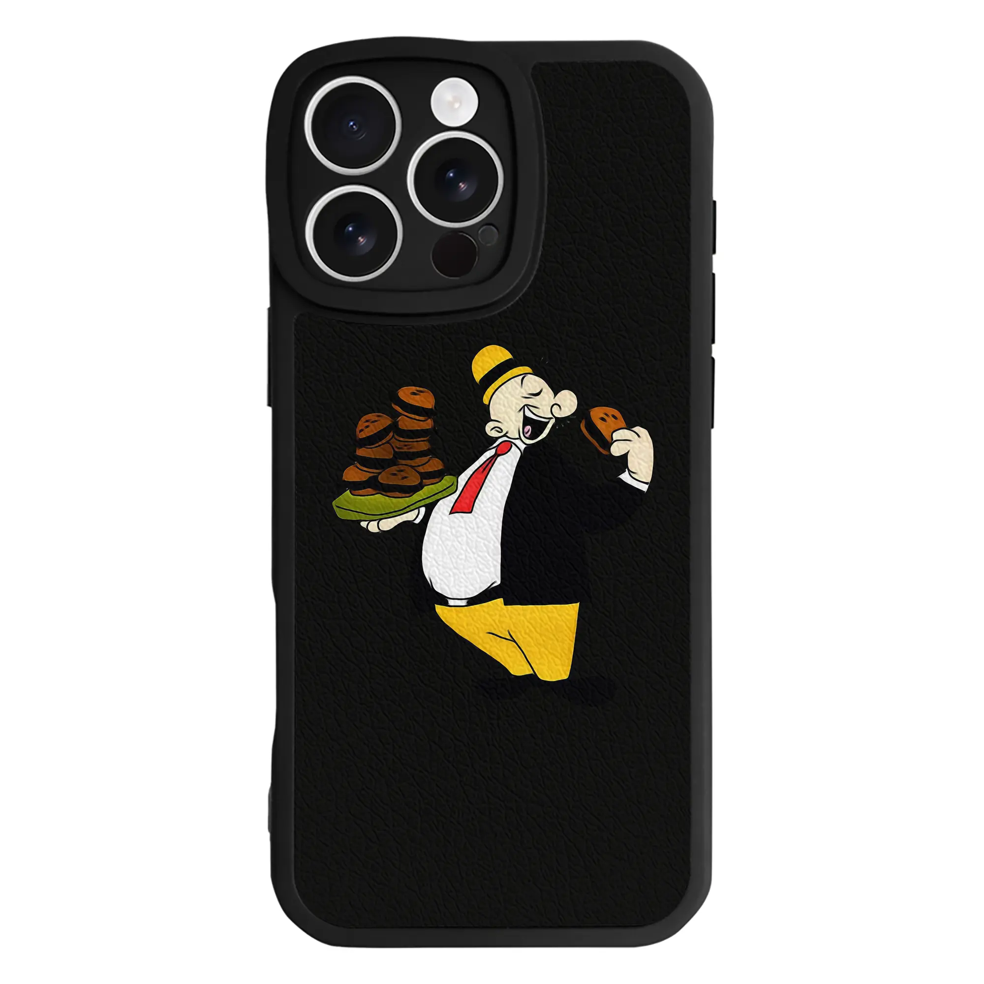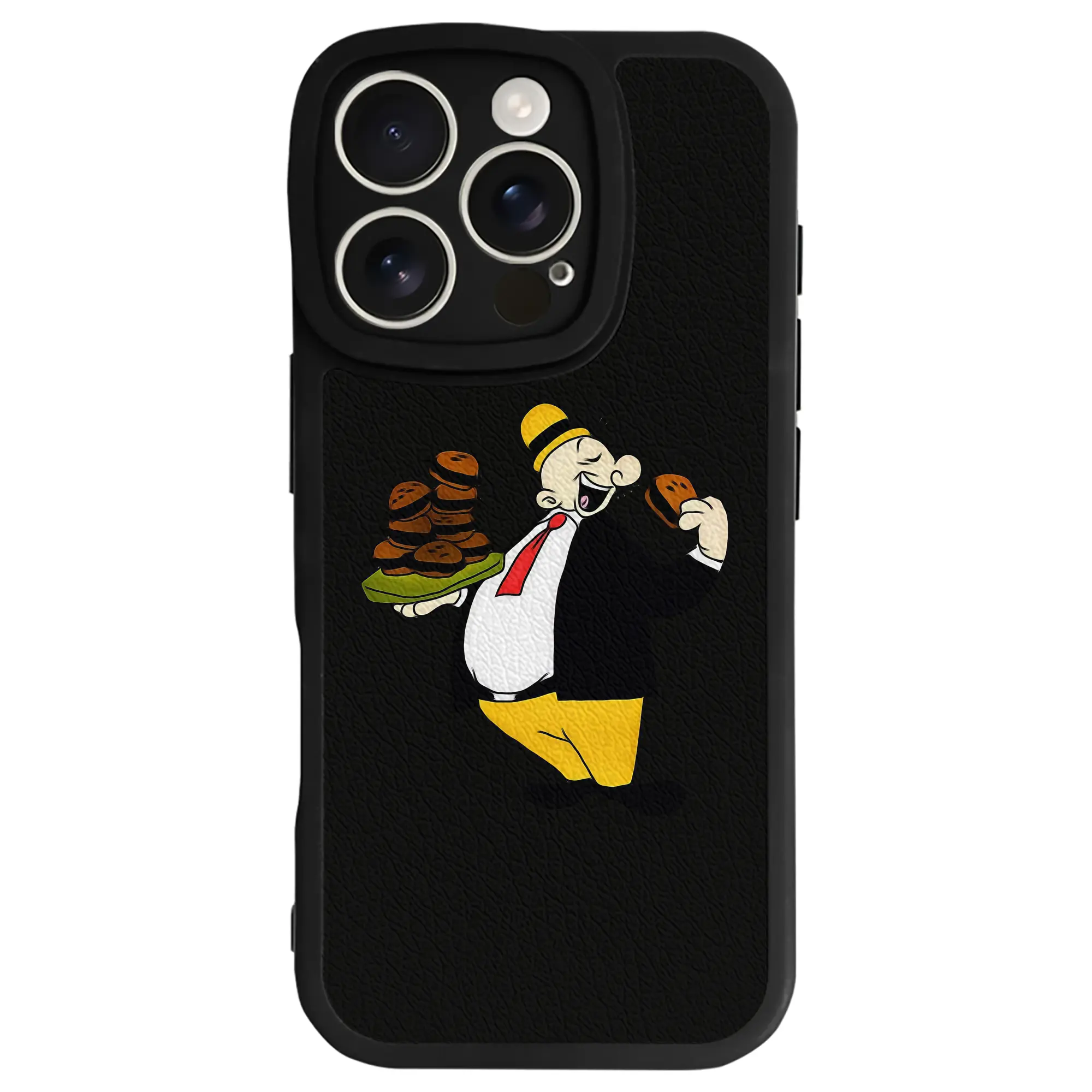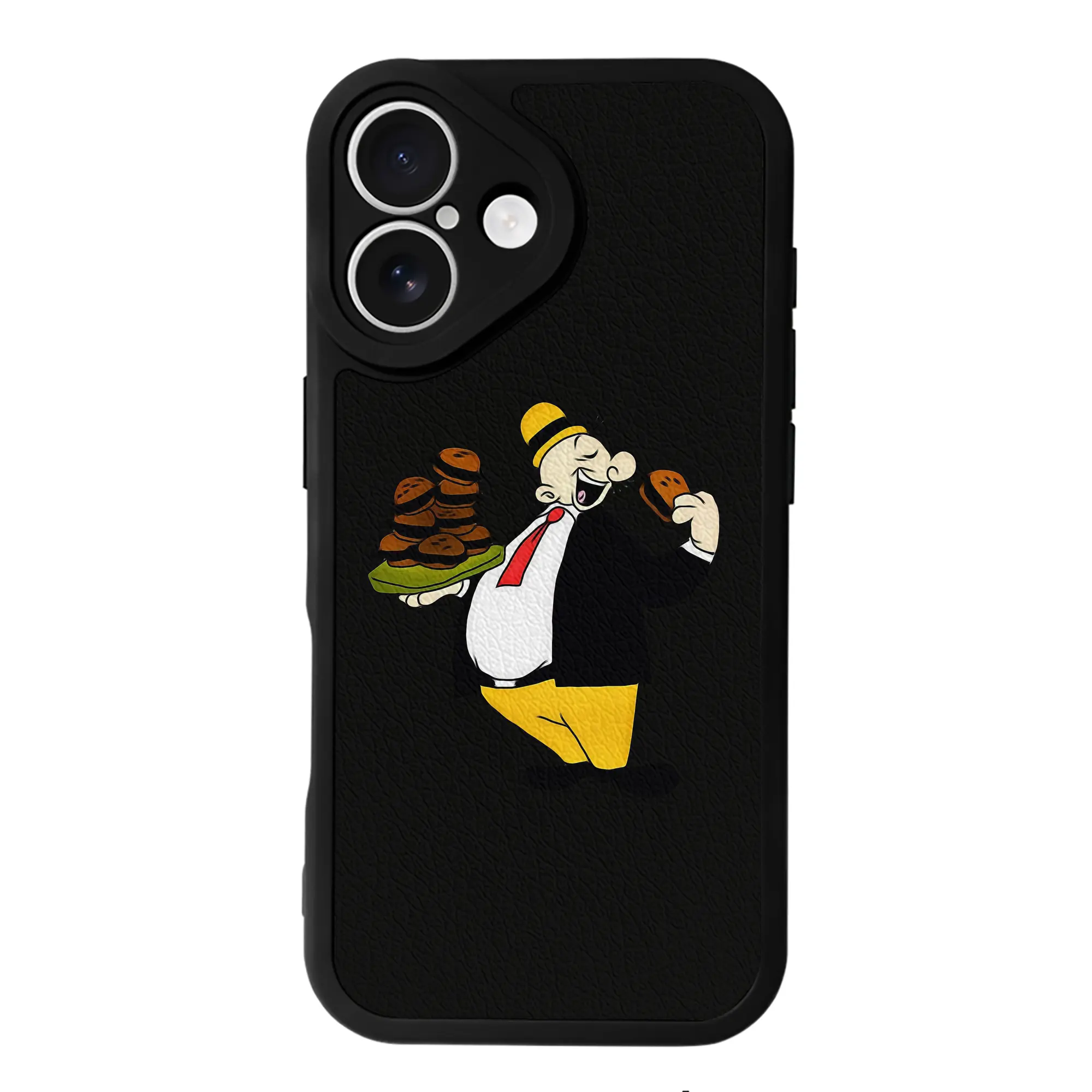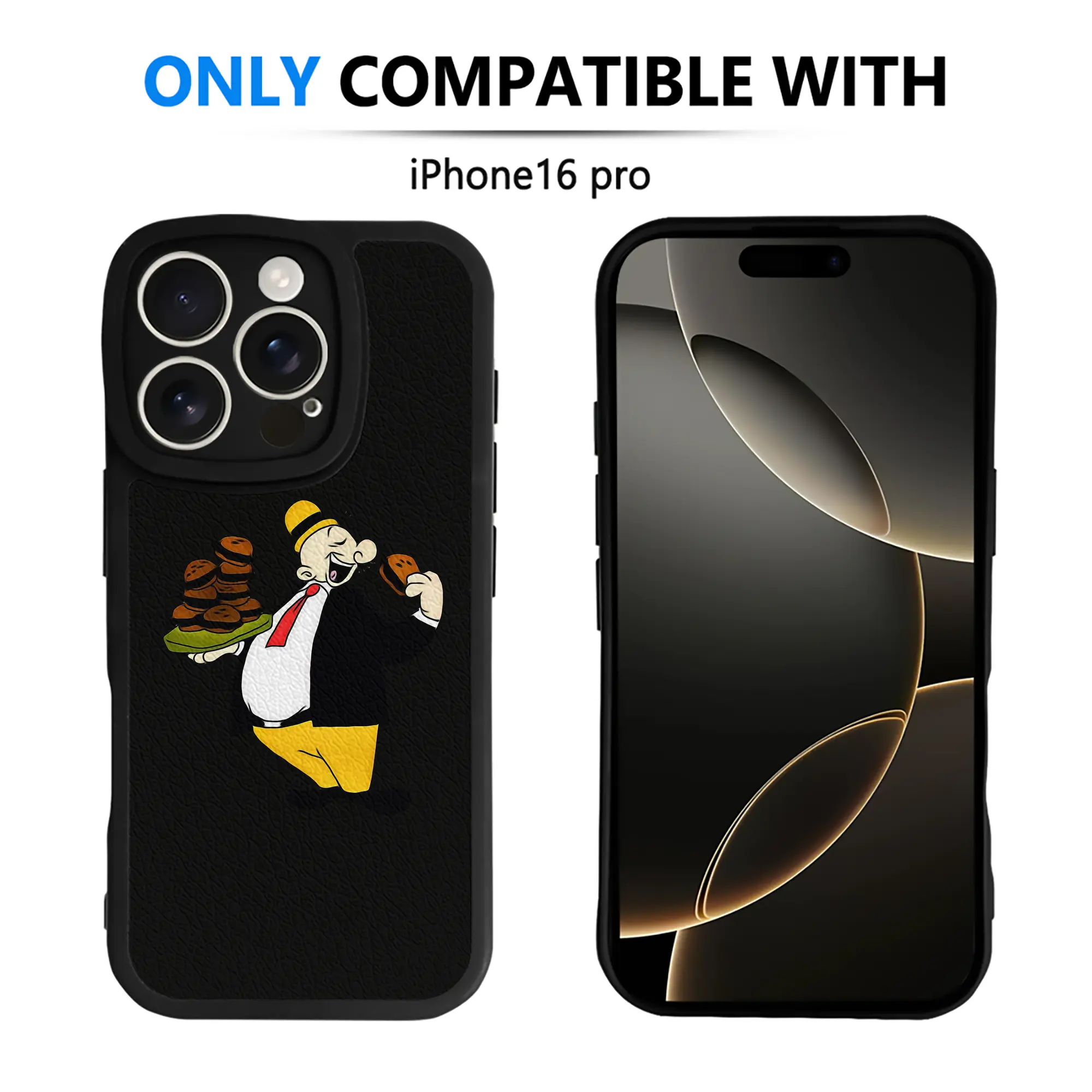 ポパイ グッズ ウィンピー - IPhone 16シリーズ対応 ・ シリコンスマホケース ・ レザー調 ・ 高精度フィット ・ 耐衝撃 ・ ワイヤレス充電対応 ・ 精密カット