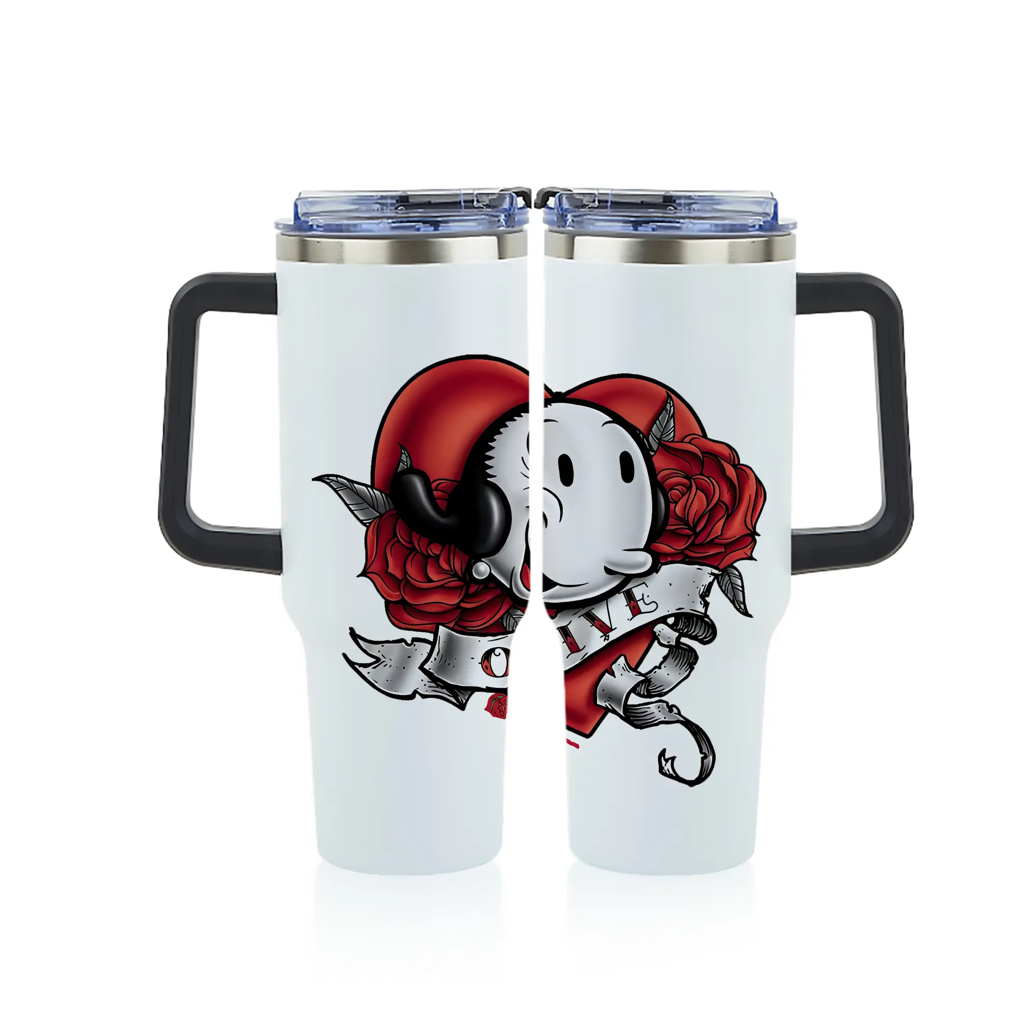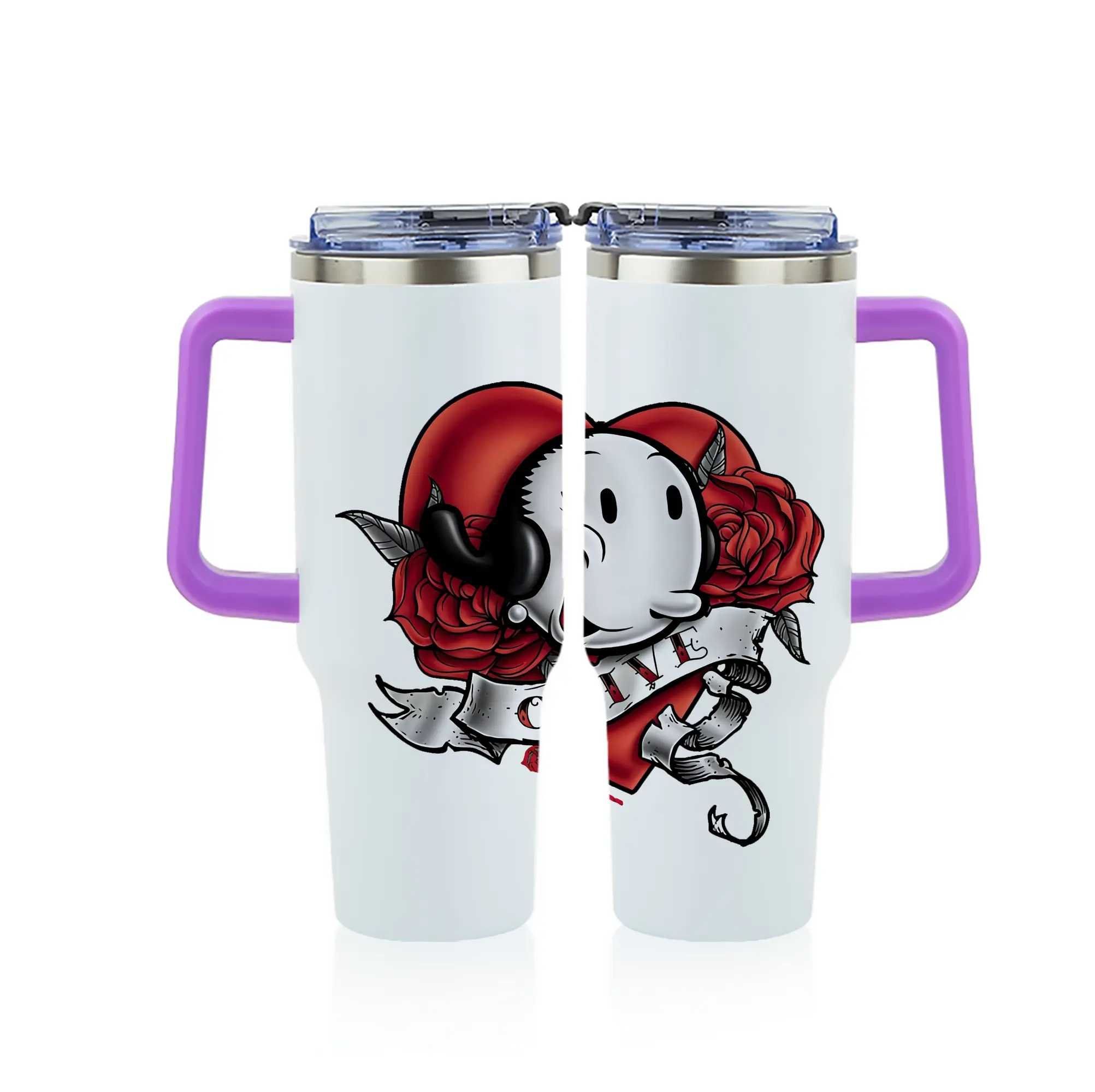 この40オンスカータンブラーは、洗練されたフルラップUVプリントで鮮やかな色彩と優れた耐久性を実現。304ステンレス製内側と201ステンレス製外側の組み合わせにより、長期間の使用に耐え、錆びにくく安全に飲料を楽しめます。