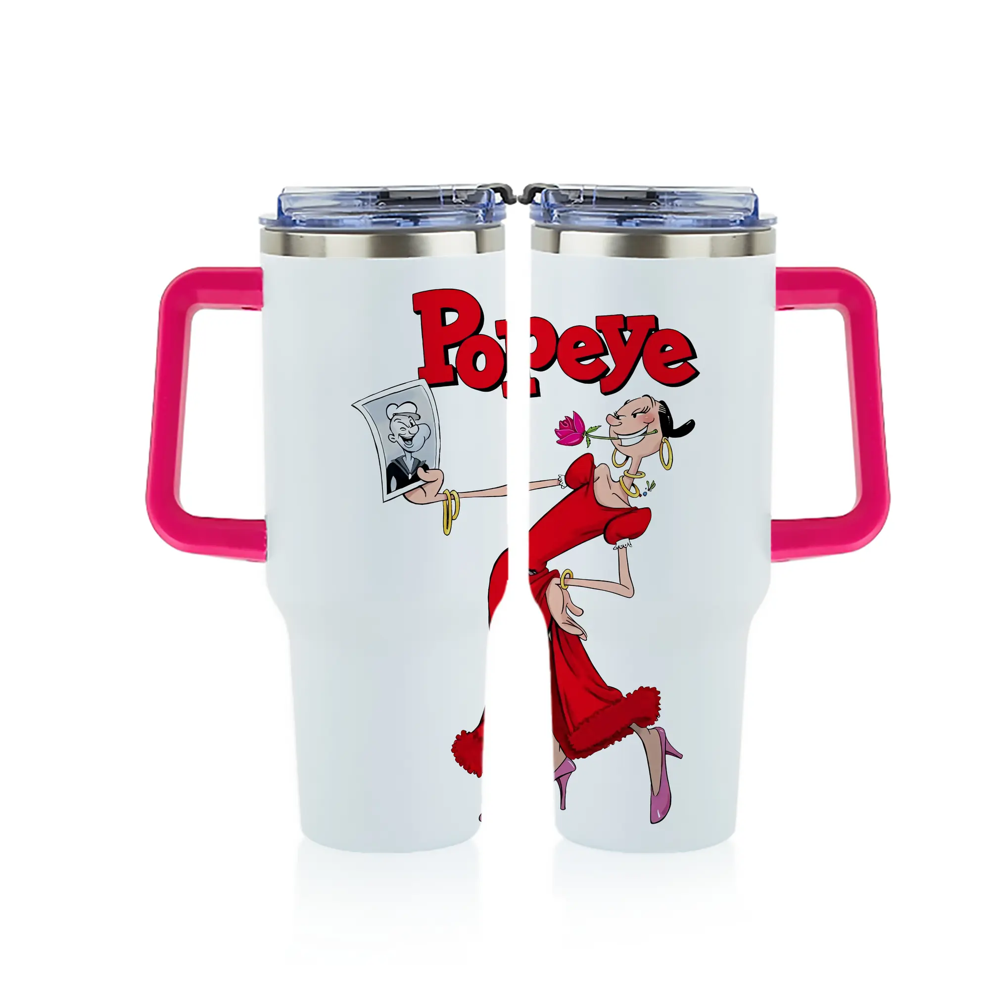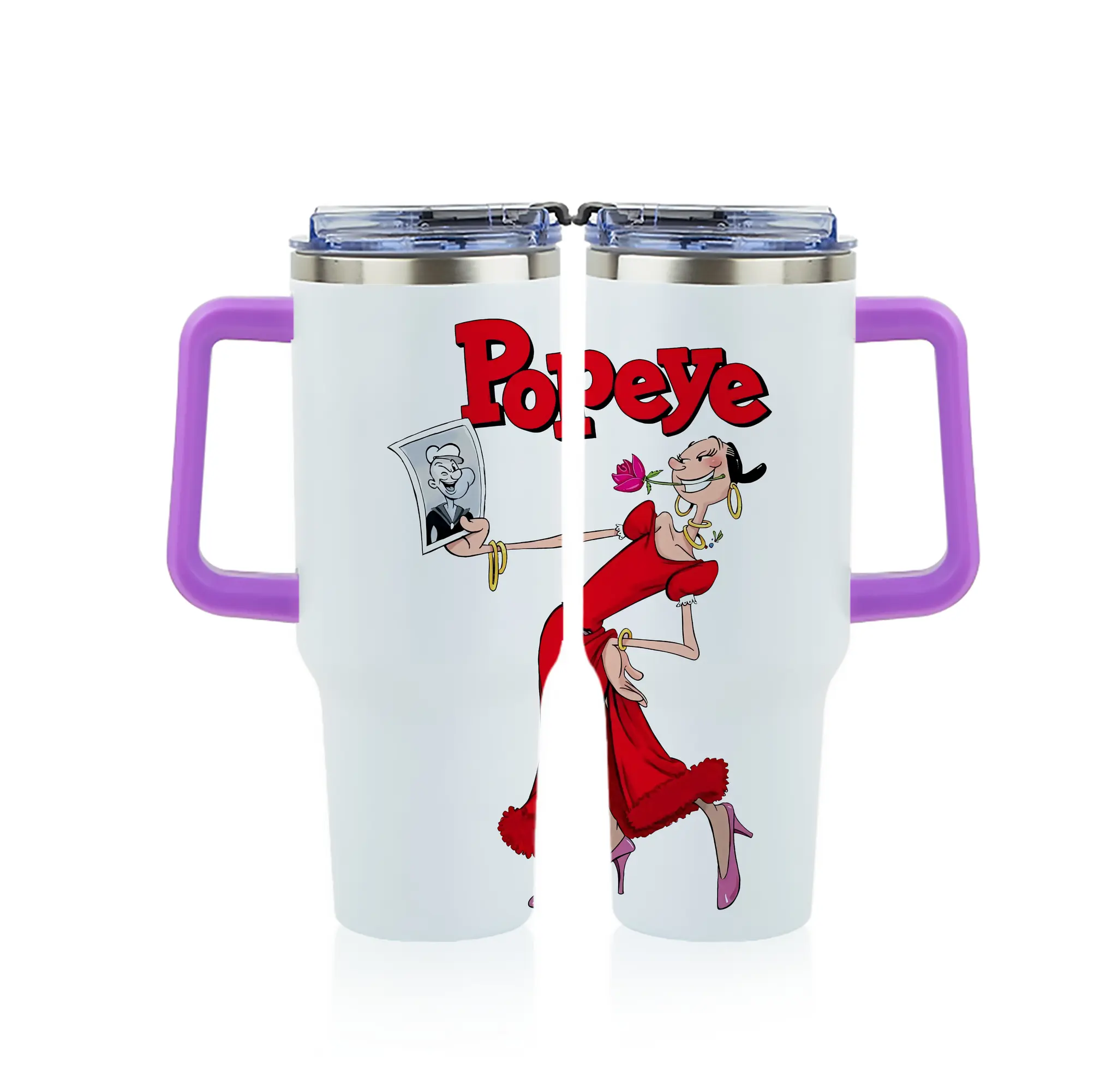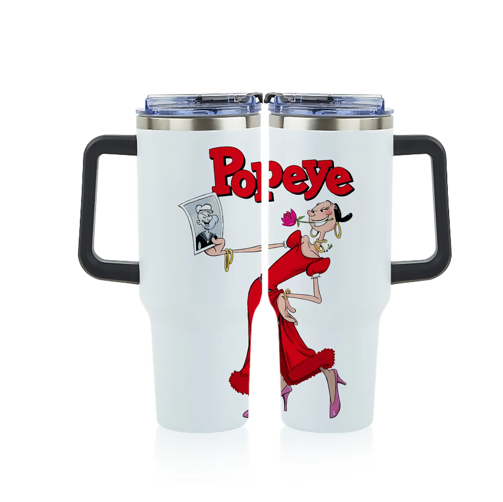ポパイ グッズ オリーブ・オイル - 1200mL フルプリント車用タンブラー ・ 304ステンレス 内側 ・ 201ステンレス 外側 ・ 保温 保冷 ・ 通勤 ドライブ アウトドア用