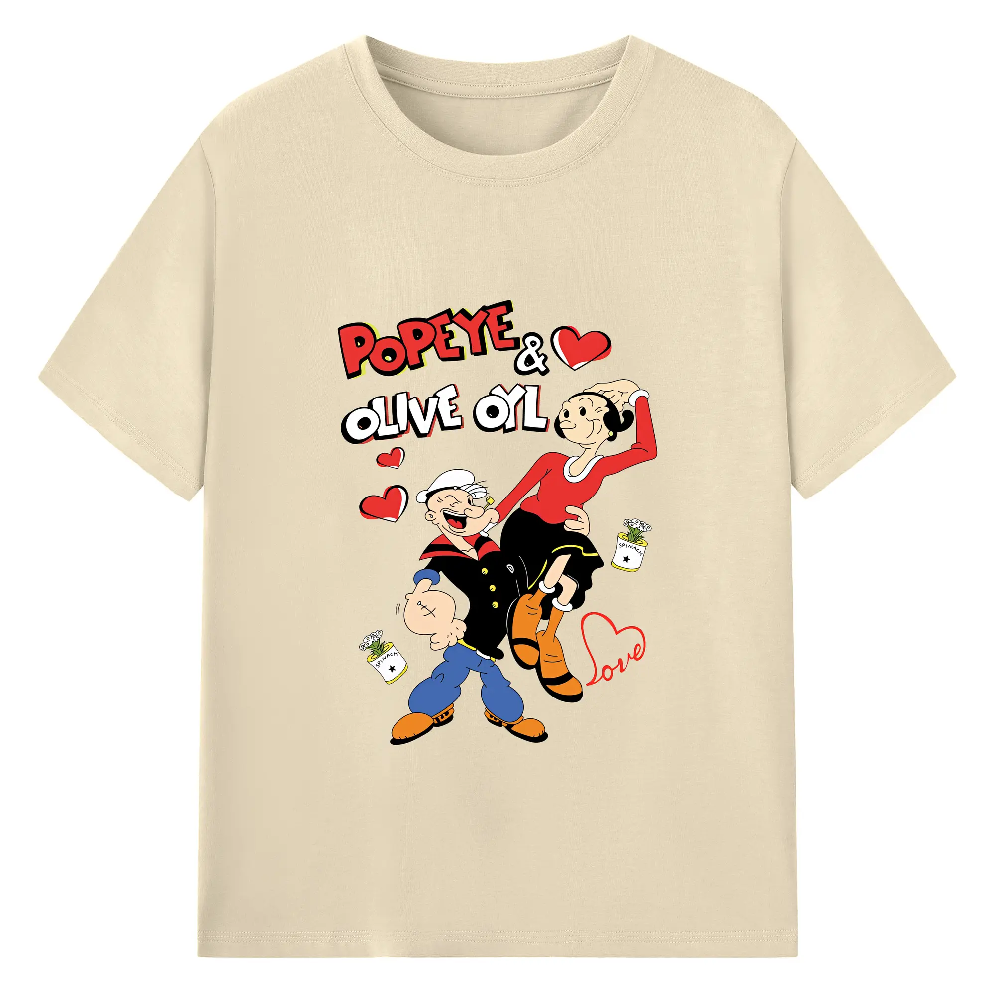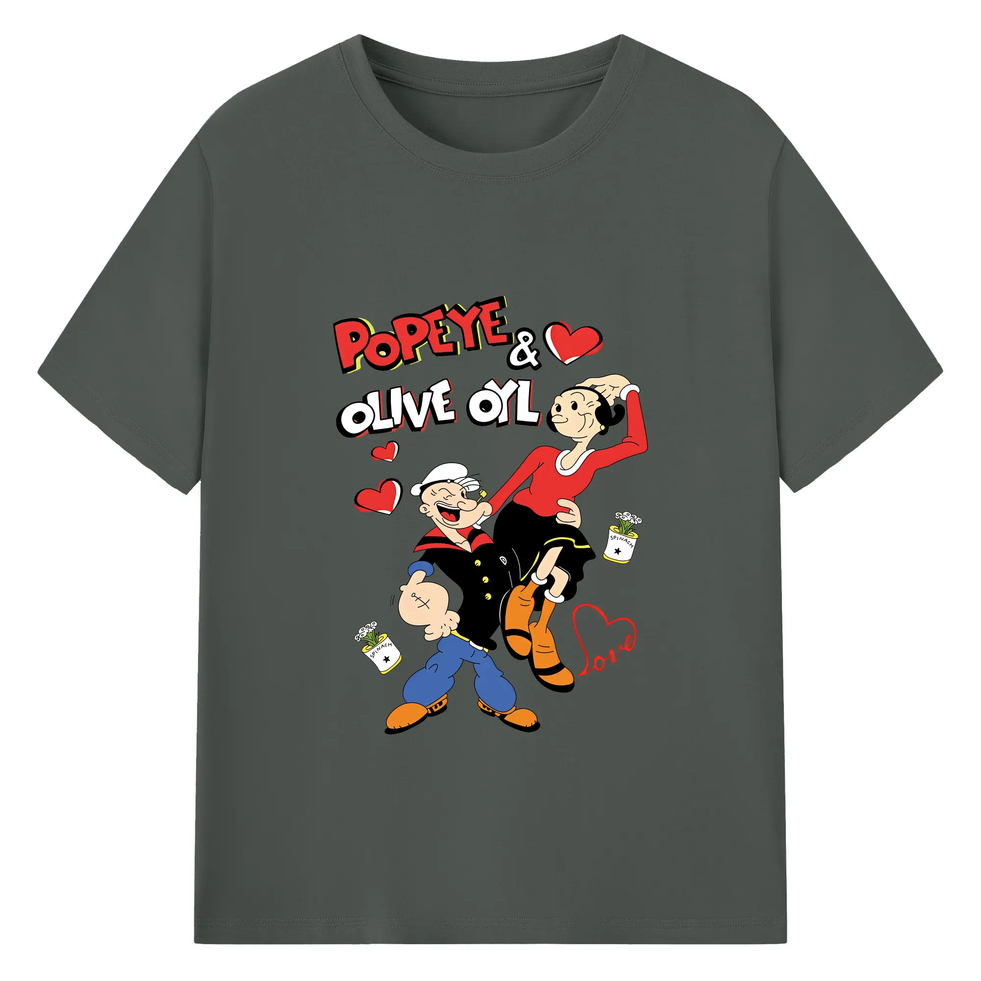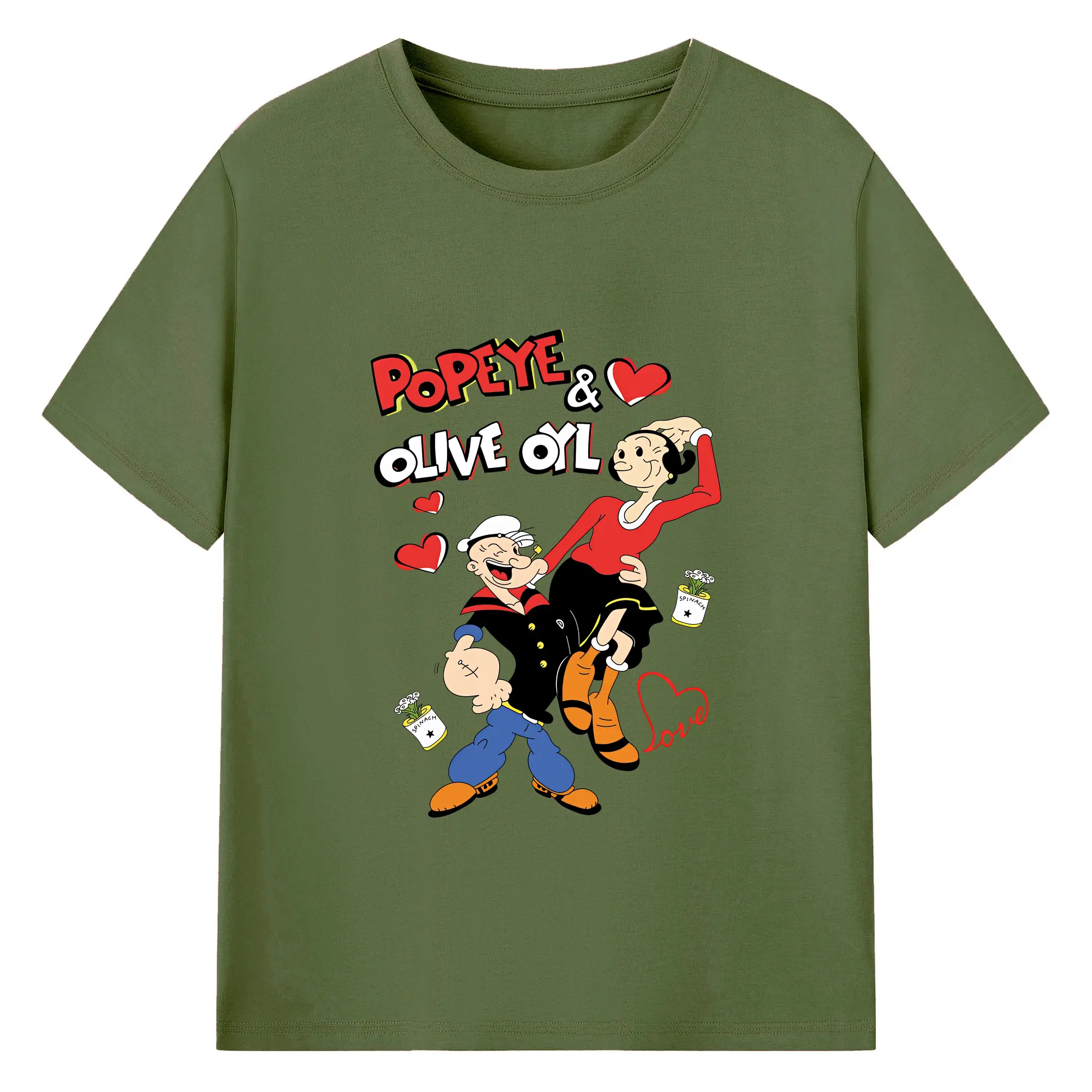 ポパイ グッズ オリーブ・オイル - 綿100% ヴィンテージ風 半袖Tシャツ ・ フロントプリント ・ 柔らか肌触り ・ 通気性 快適 ・ スポーツ カジュアル 外出用