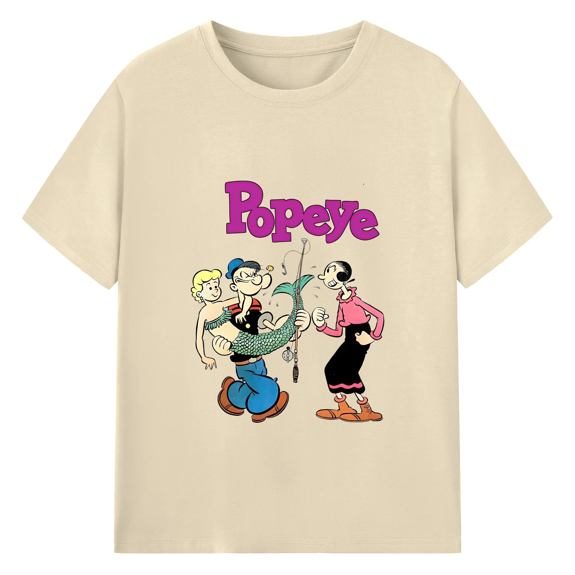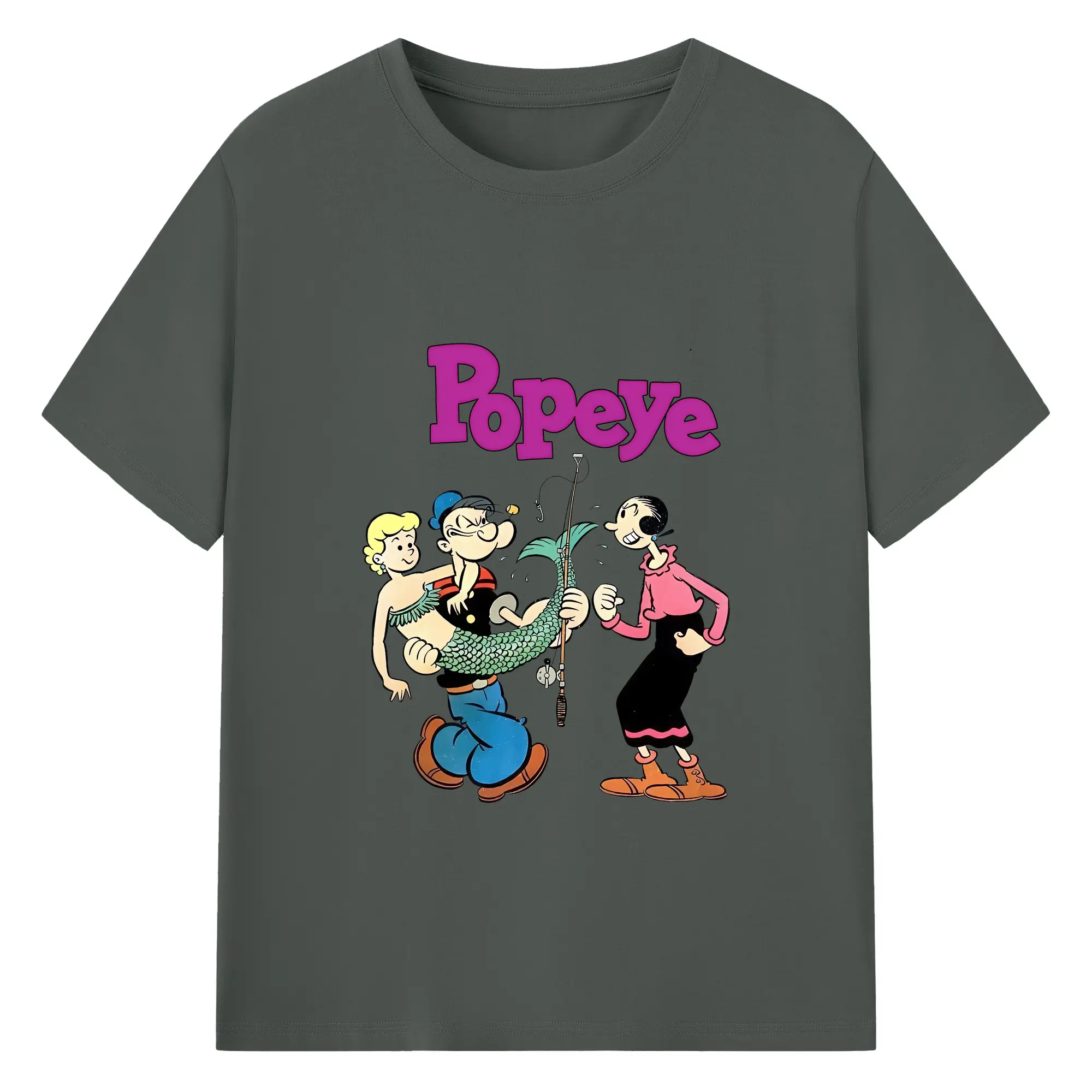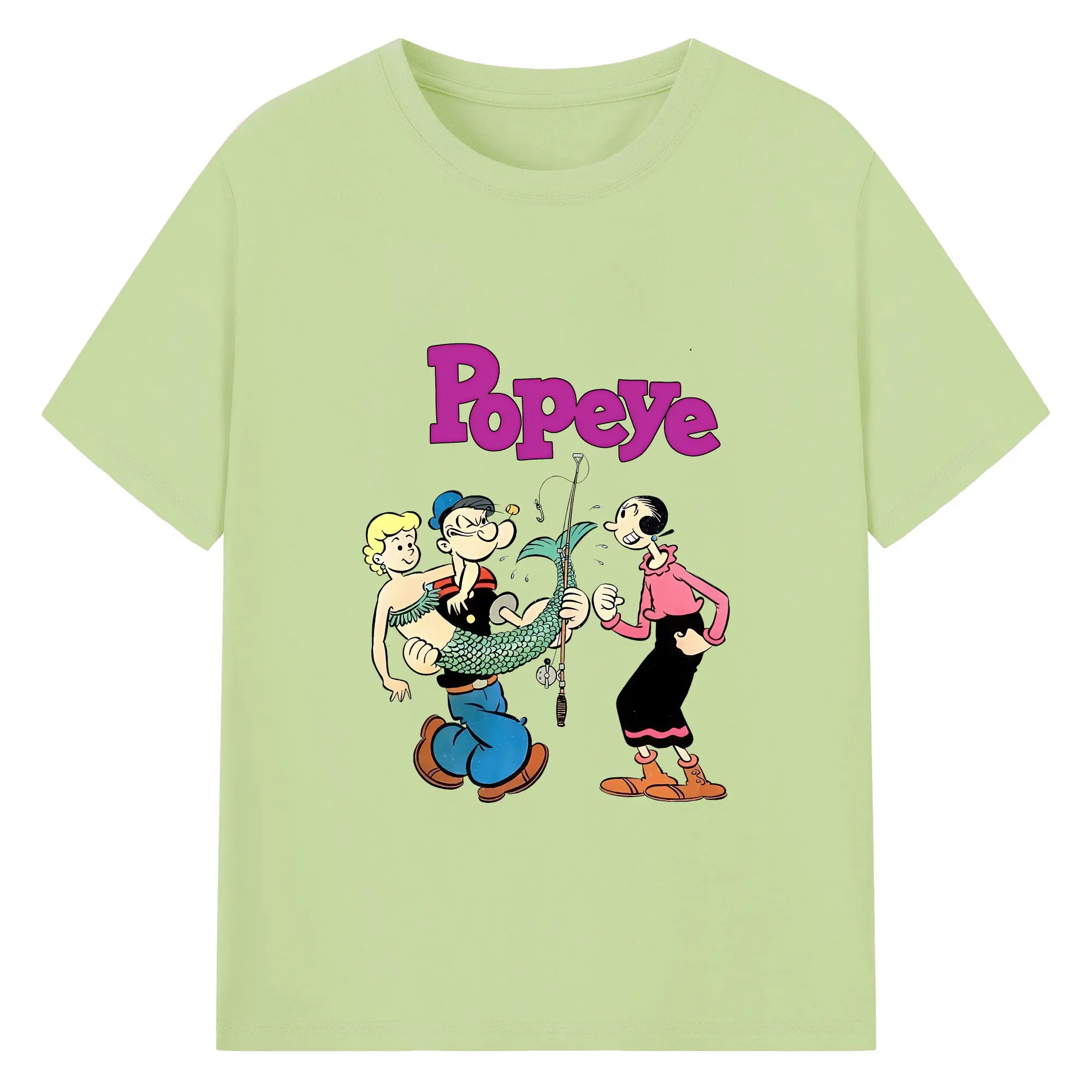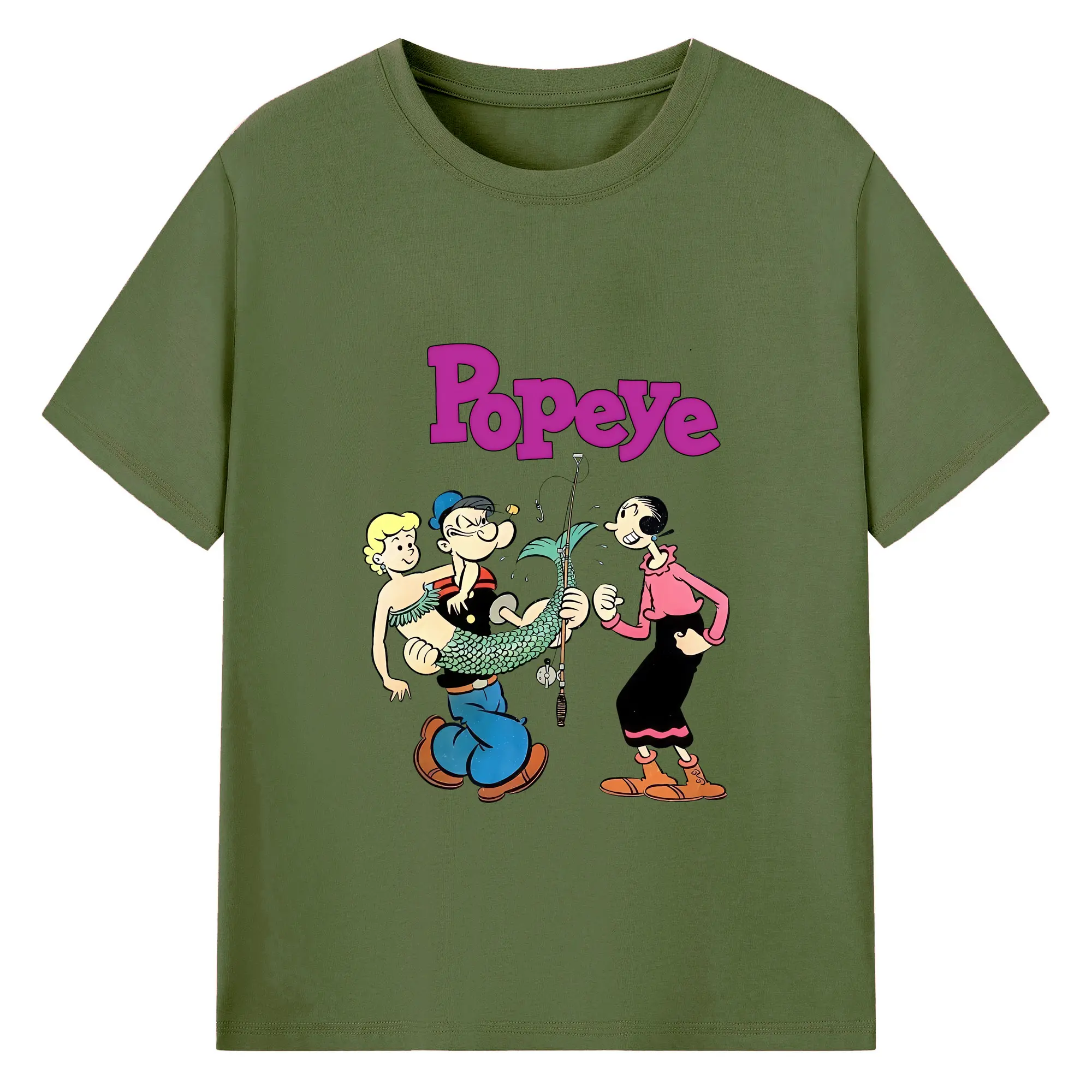 ポパイ グッズ オリーブ・オイル - 綿100% ヴィンテージ風 半袖Tシャツ ・ フロントプリント ・ 柔らか肌触り ・ 通気性 快適 ・ スポーツ カジュアル 外出用
