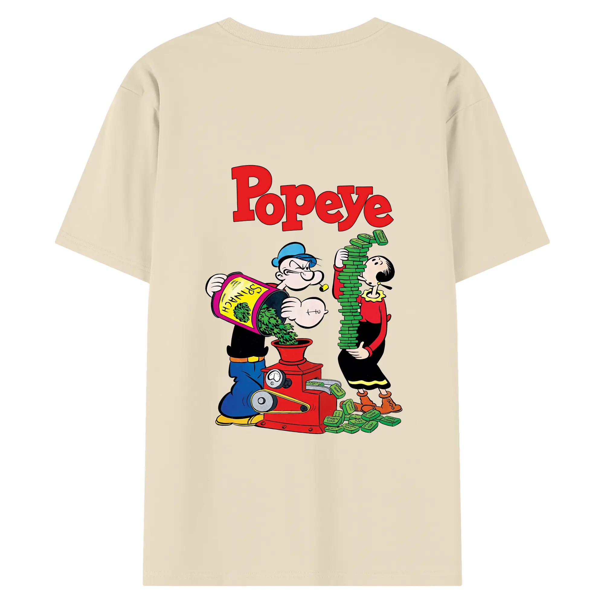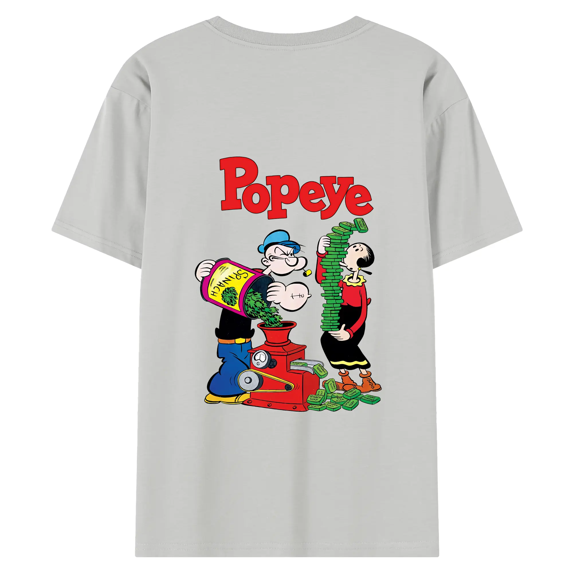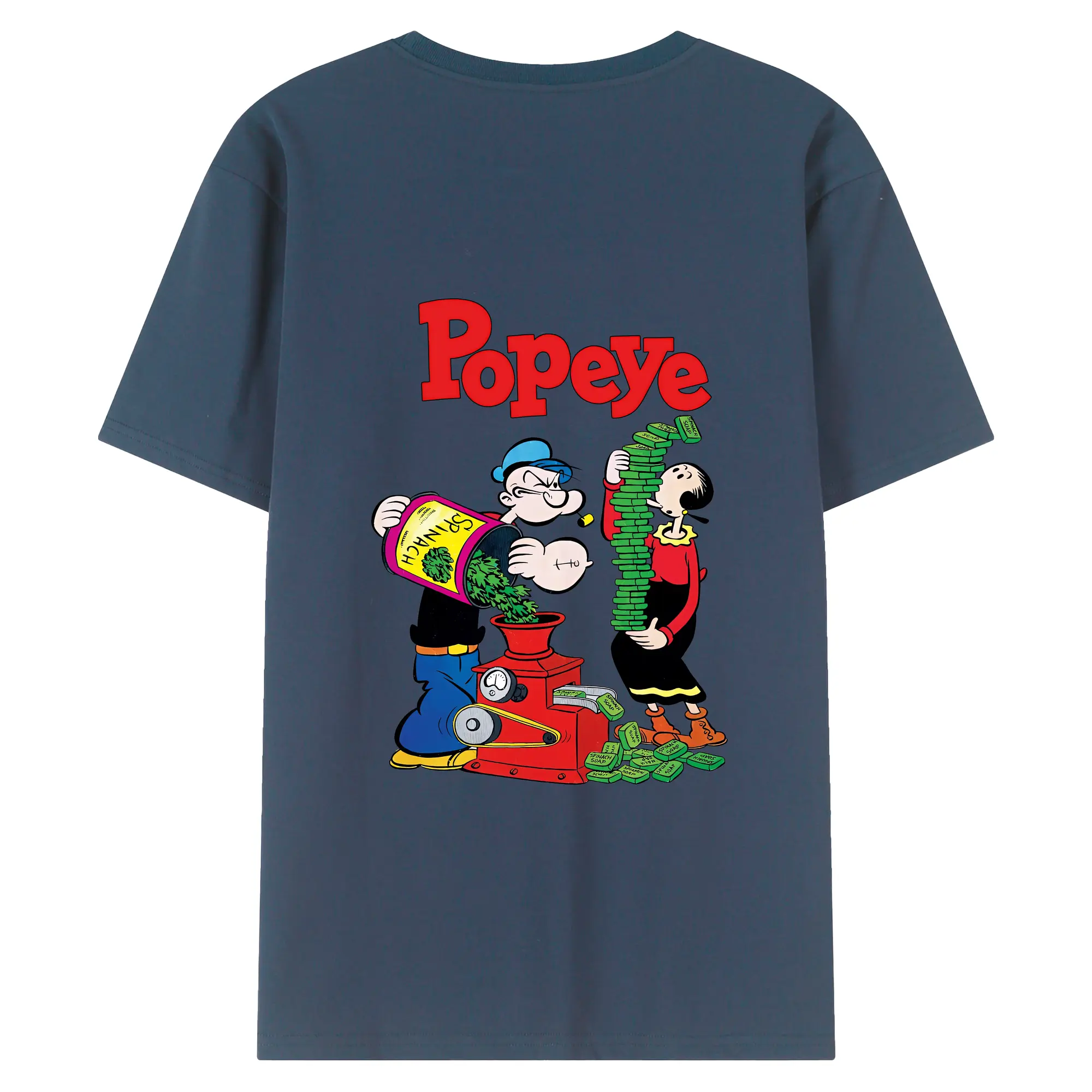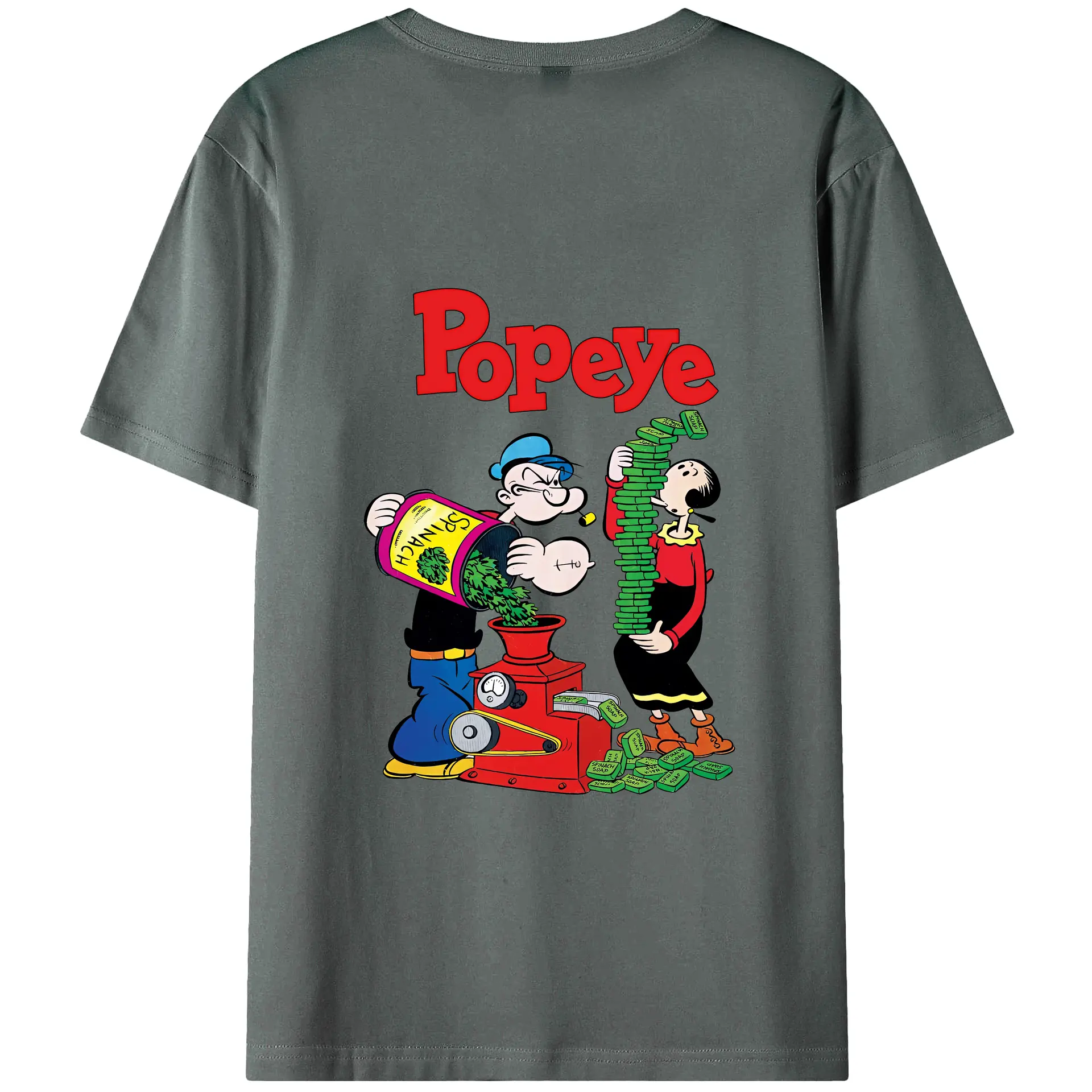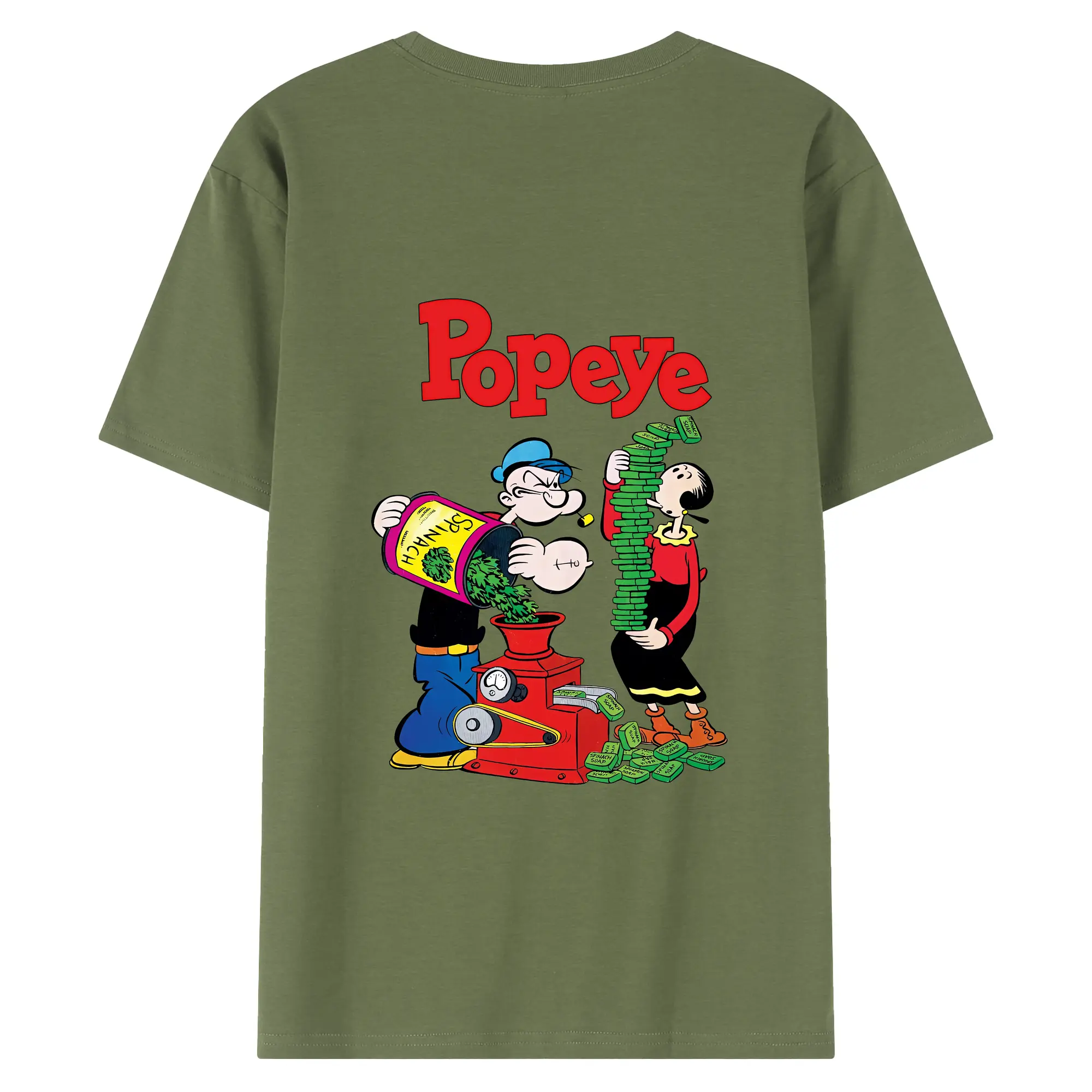 ポパイ グッズ オリーブ・オイル - 綿100% ヴィンテージ風 半袖Tシャツ ・ 背面プリント ・ 柔らか肌触り ・ 通気性 快適 ・ スポーツ カジュアル 外出用
