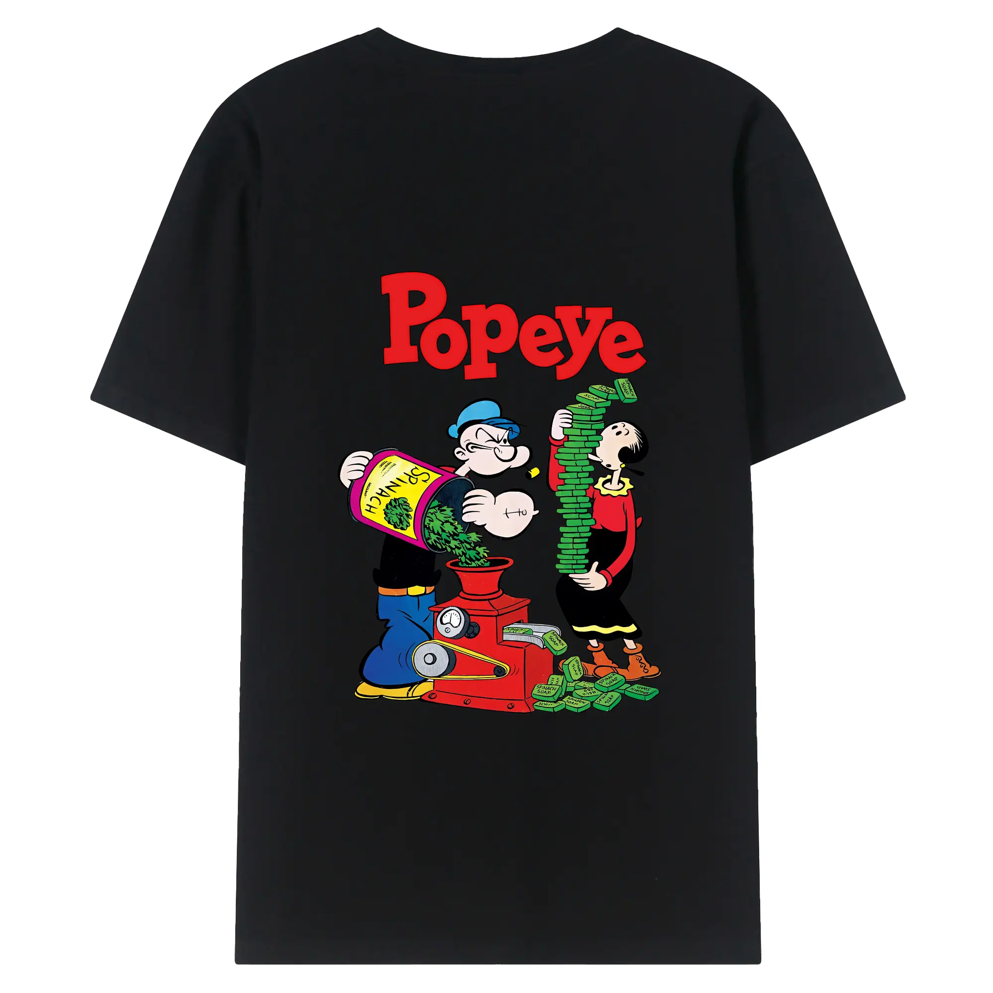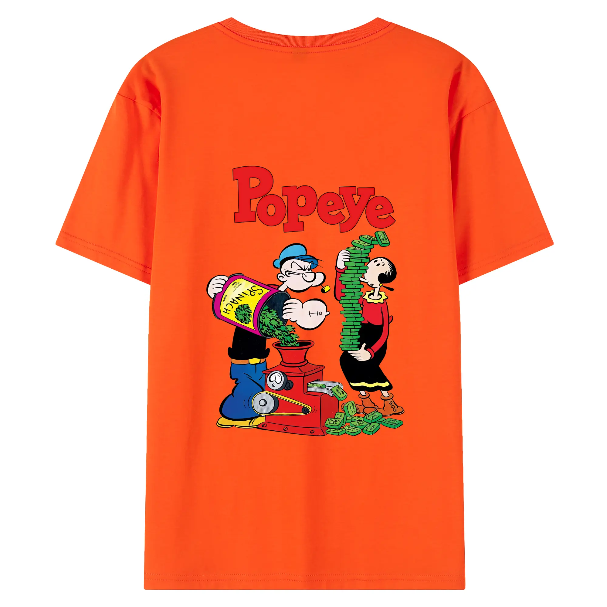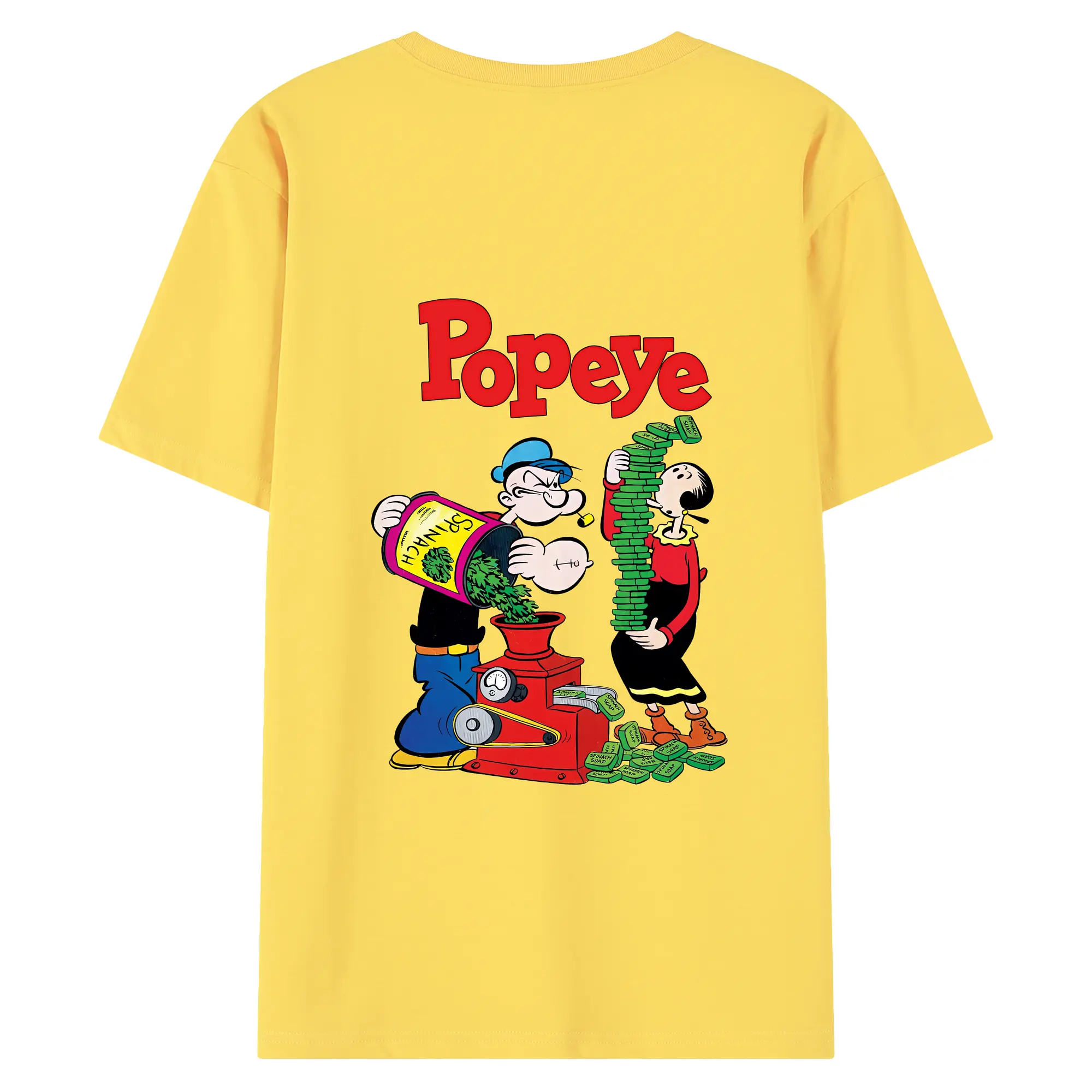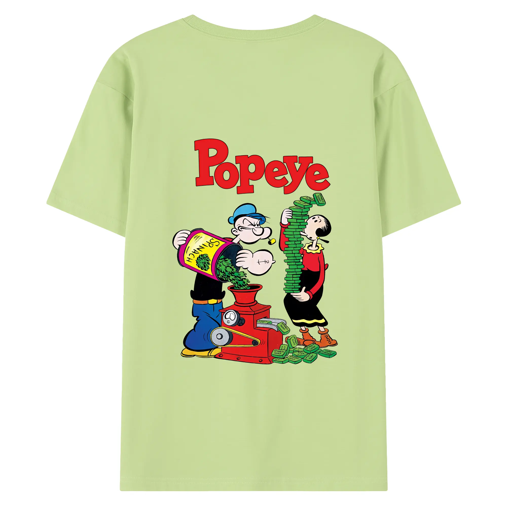 ポパイ グッズ オリーブ・オイル - 綿100% 半袖Tシャツ ・ フロントプリント ・ 快適 通気性 ・ 日常使い 散歩 スポーツ用