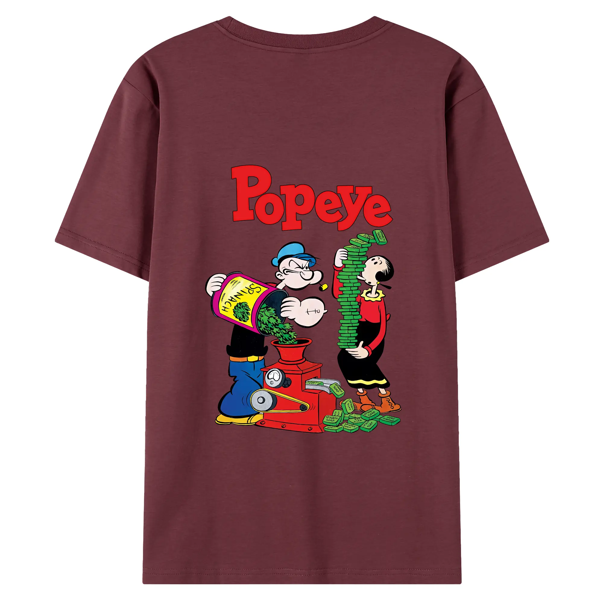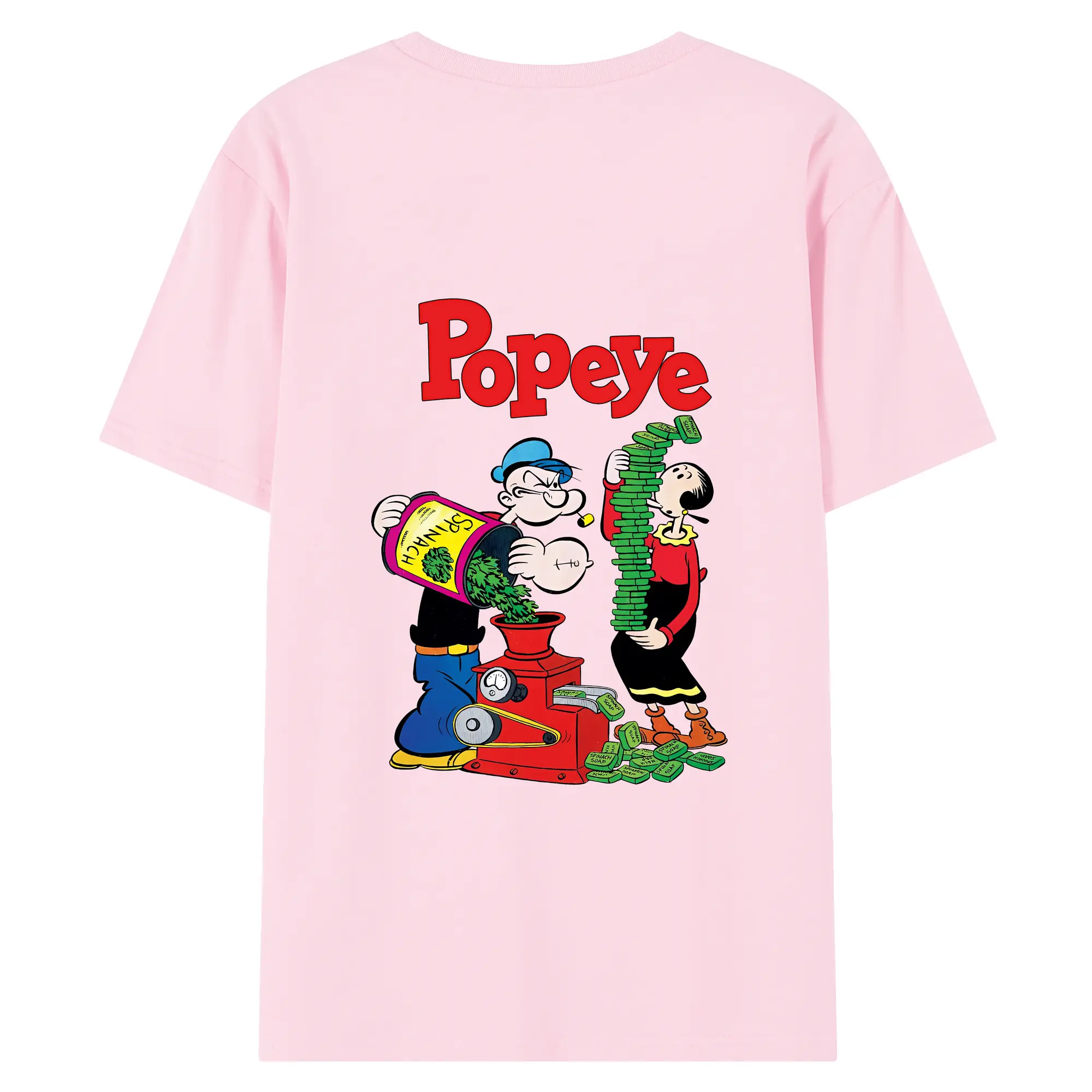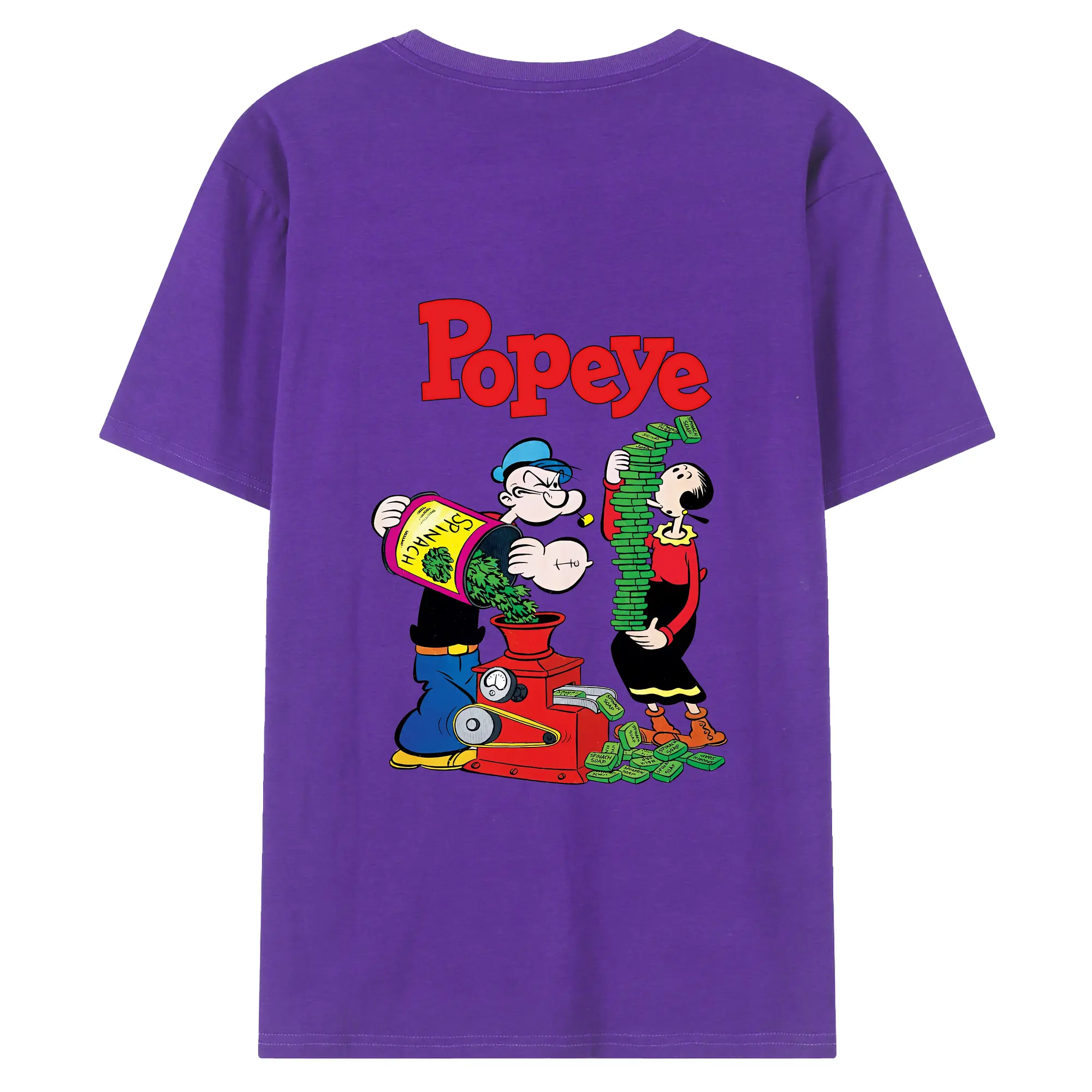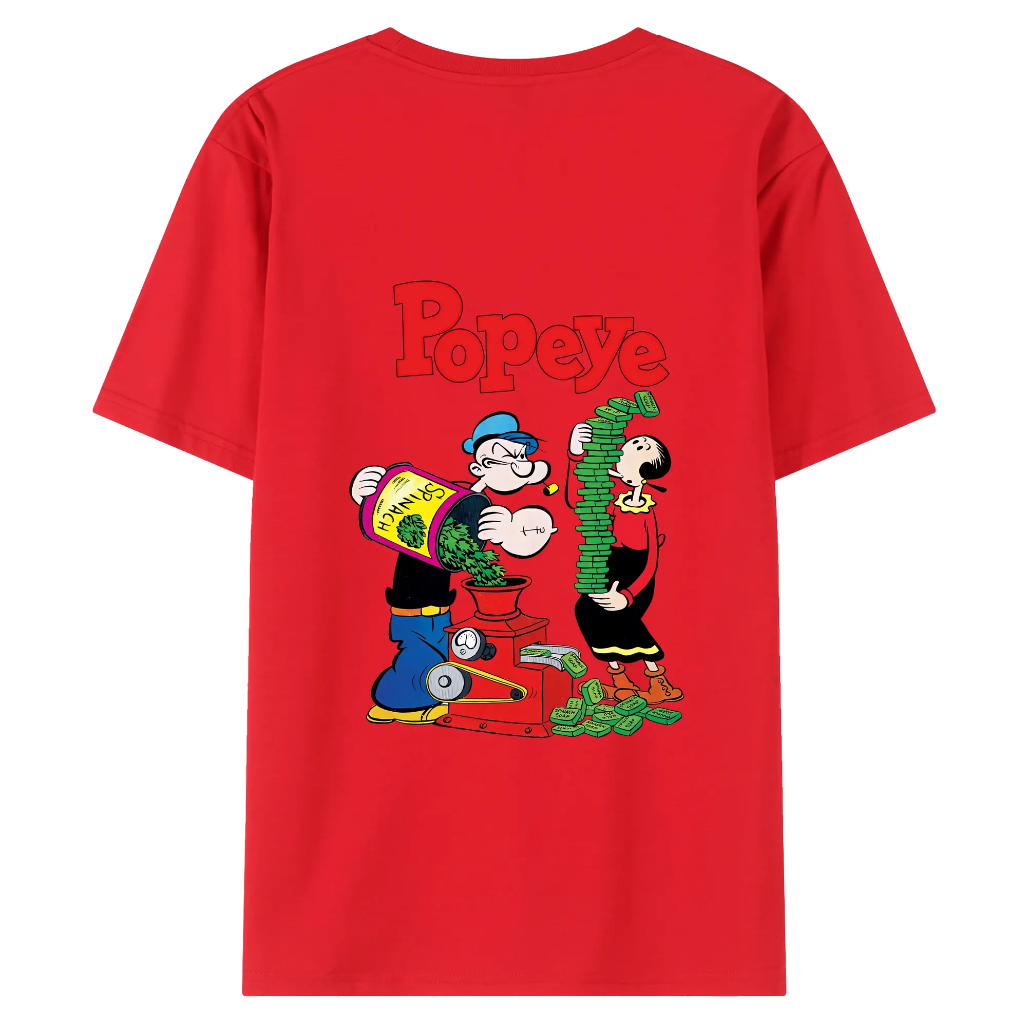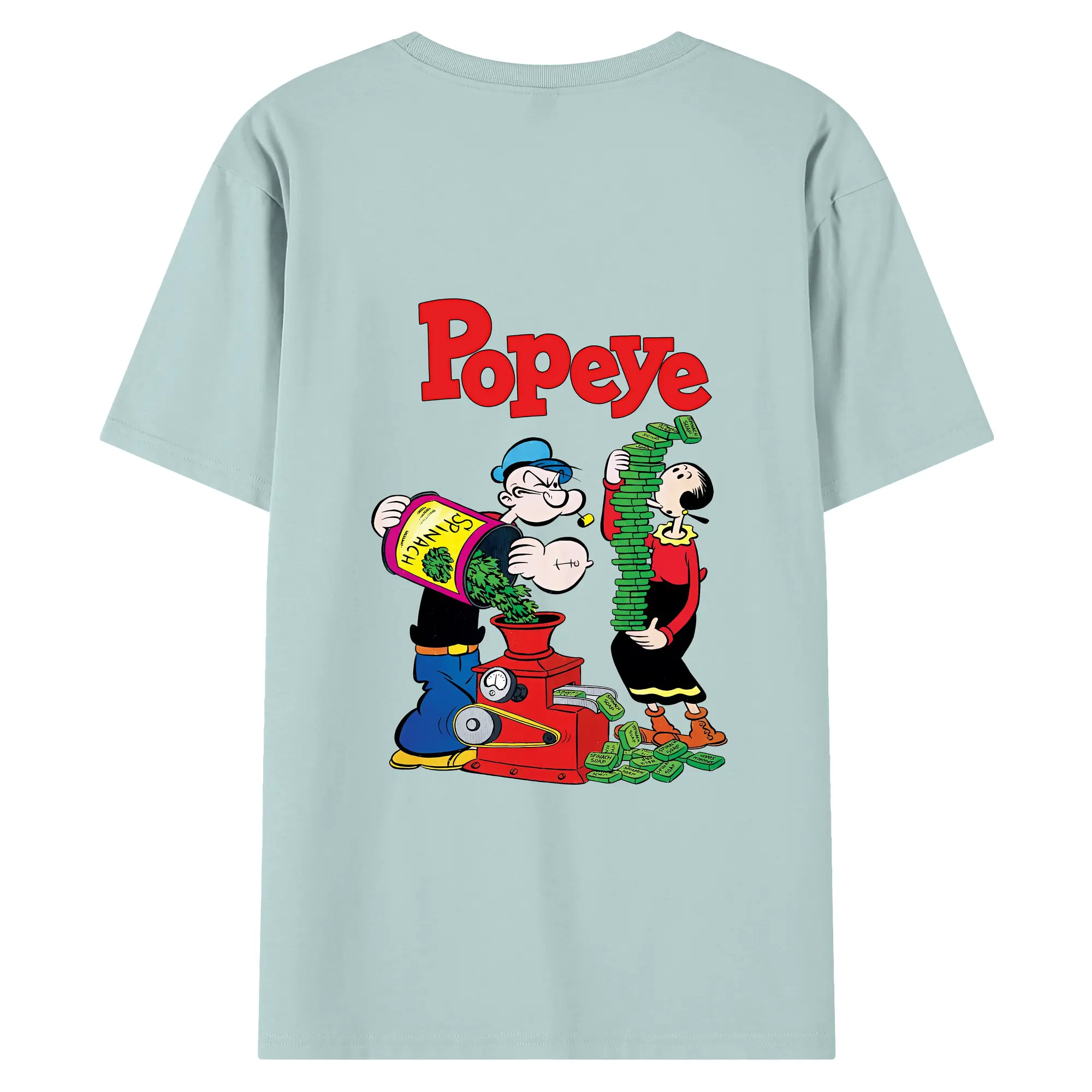 ポパイ グッズ オリーブ・オイル - 綿100% 半袖Tシャツ ・ フロントプリント ・ 快適 通気性 ・ 日常使い 散歩 スポーツ用