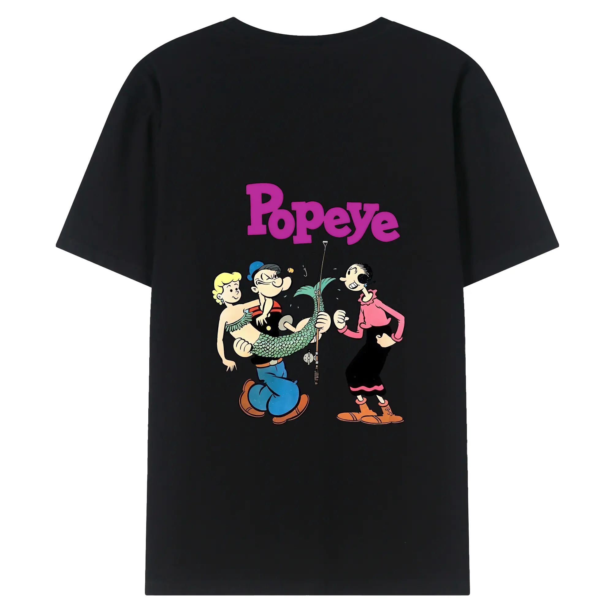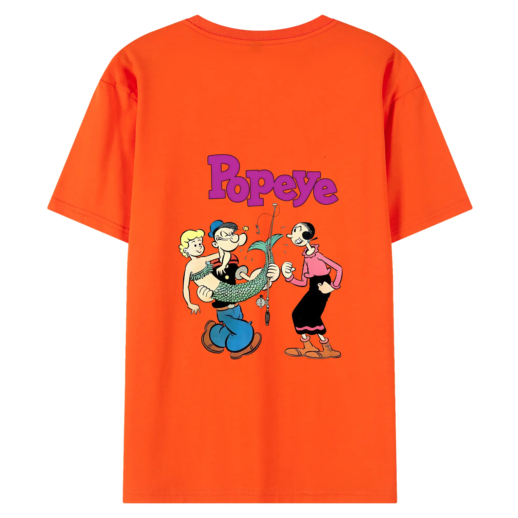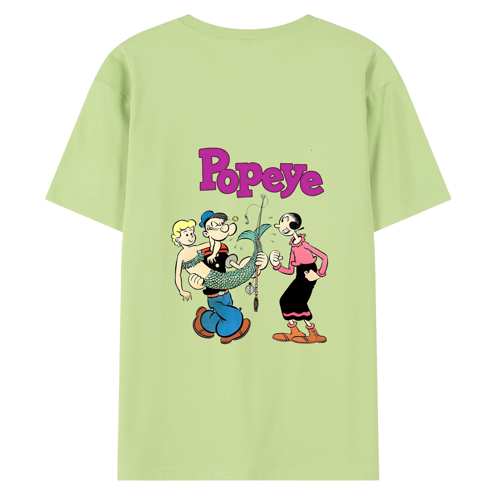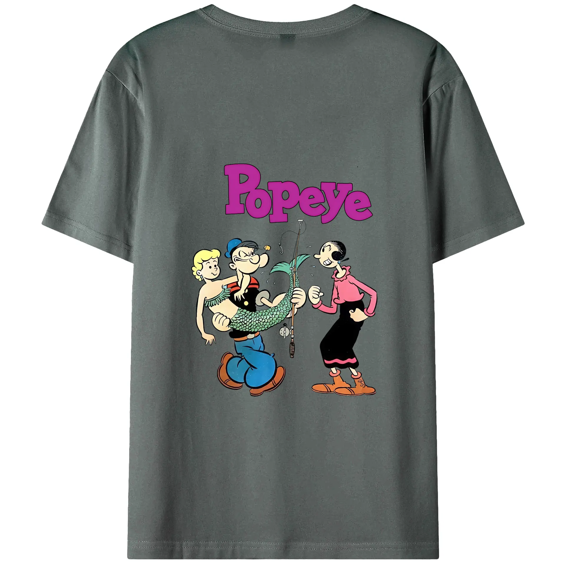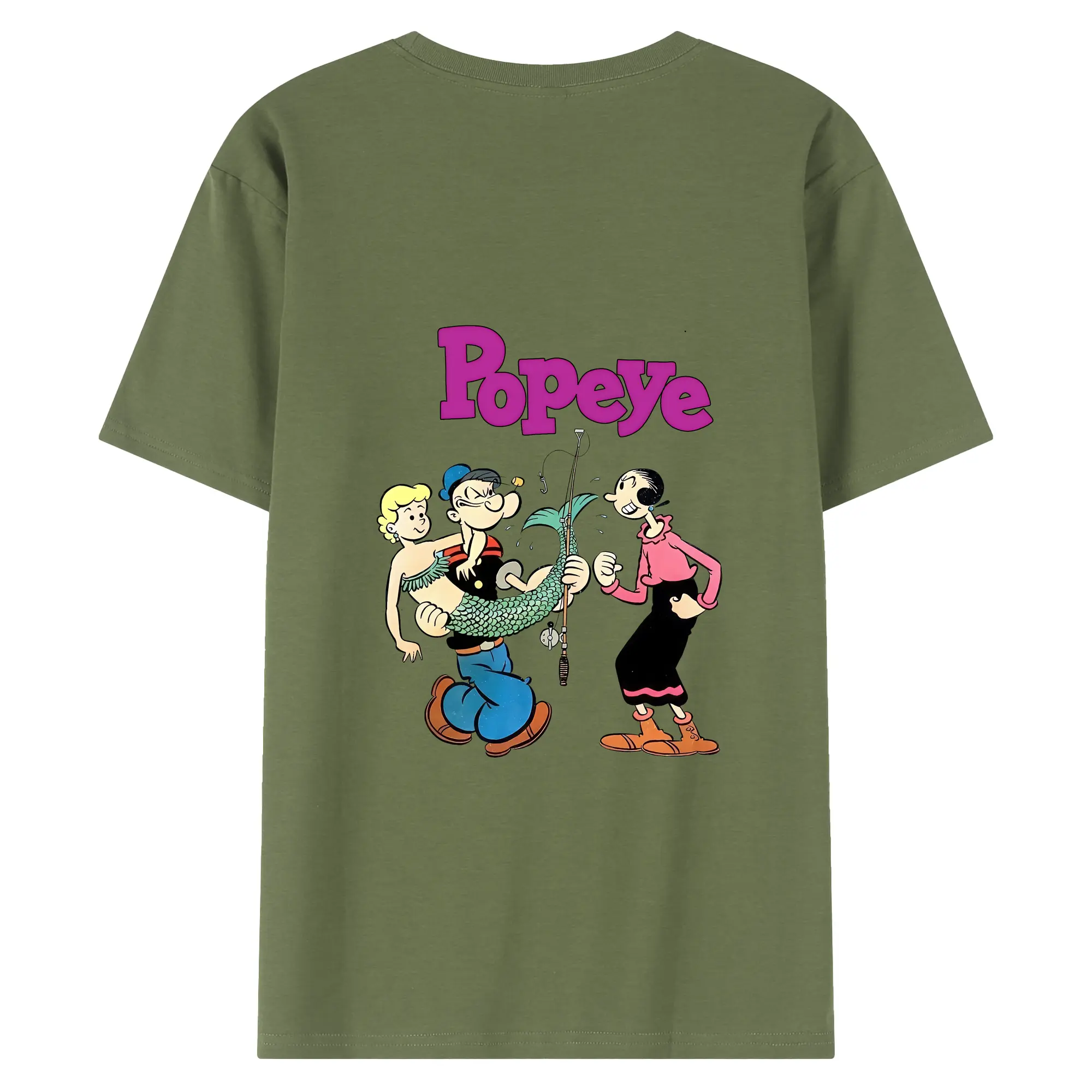 ポパイ グッズ オリーブ・オイル - 綿100% ヴィンテージ風 半袖Tシャツ ・ 背面プリント ・ 柔らか肌触り ・ 通気性 快適 ・ スポーツ カジュアル 外出用