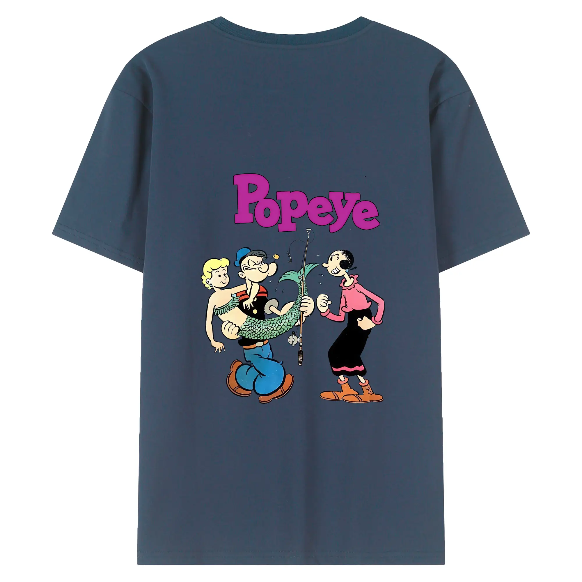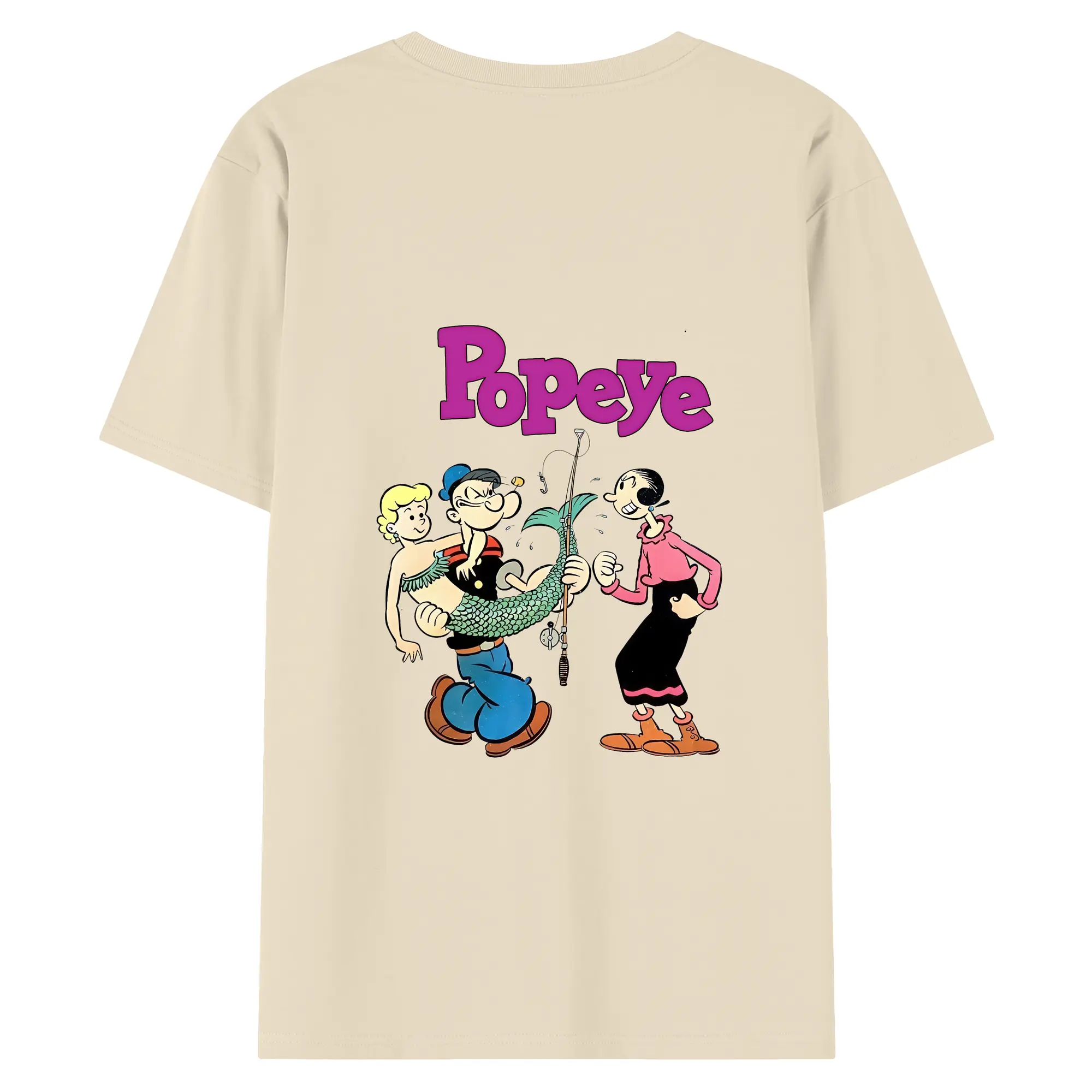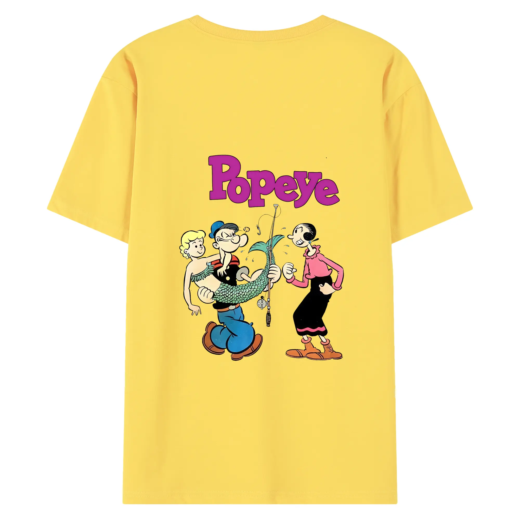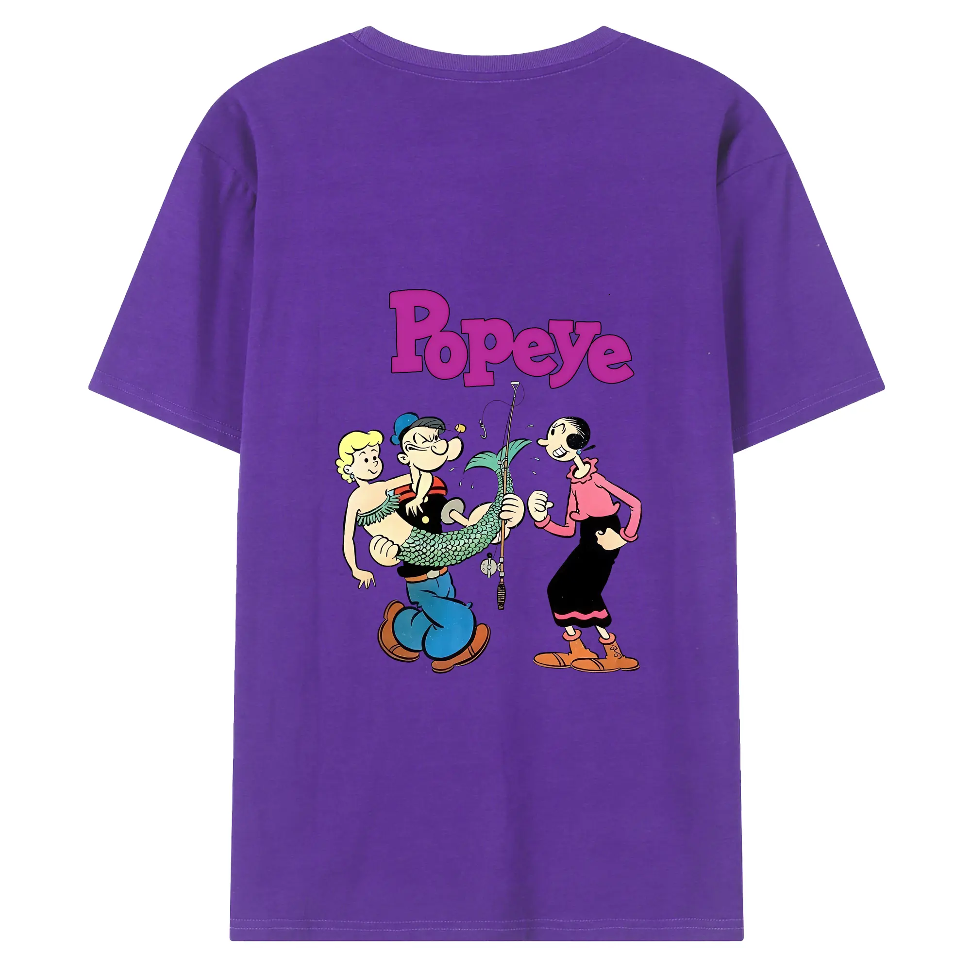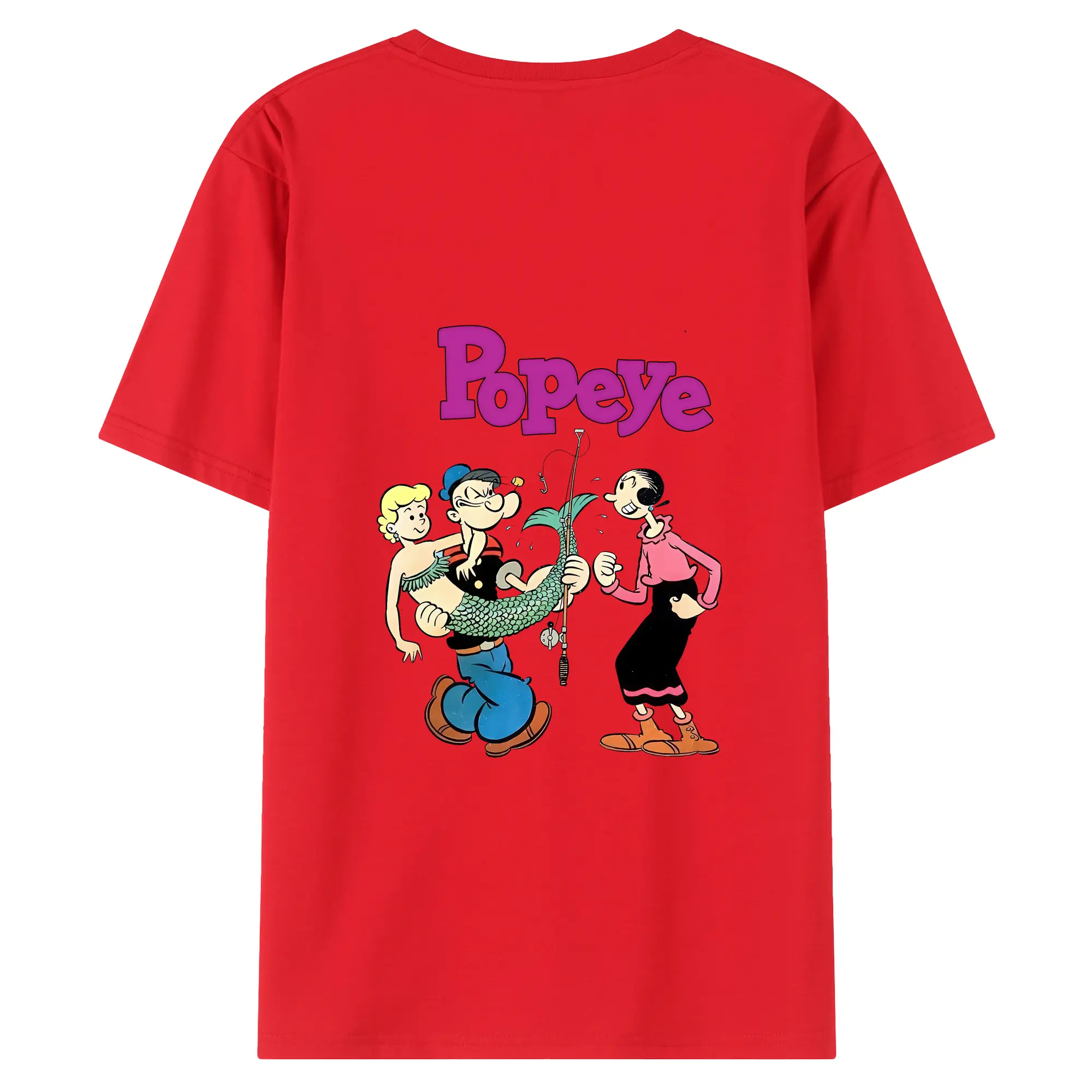 ポパイ グッズ オリーブ・オイル - 綿100% ヴィンテージ風 半袖Tシャツ ・ 背面プリント ・ 柔らか肌触り ・ 通気性 快適 ・ スポーツ カジュアル 外出用