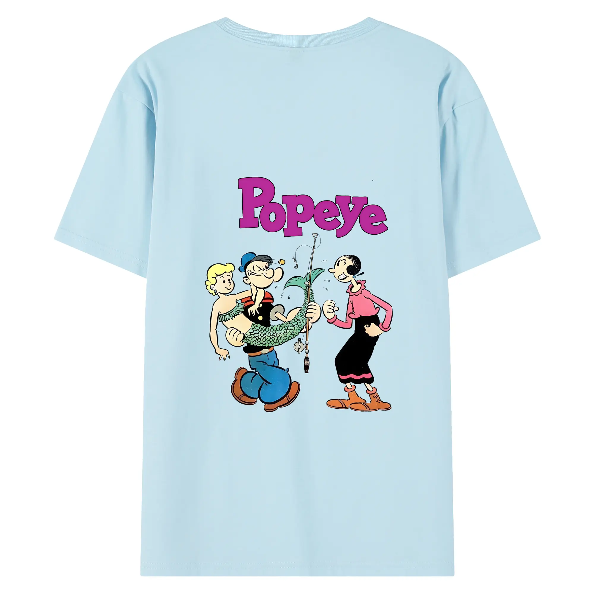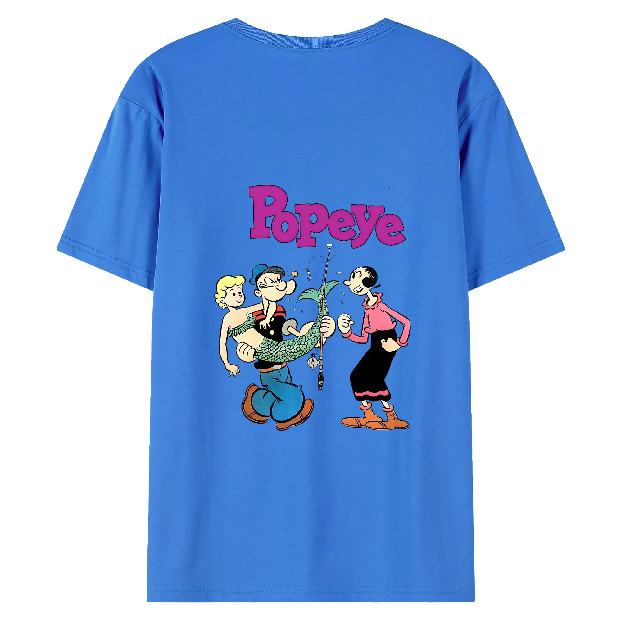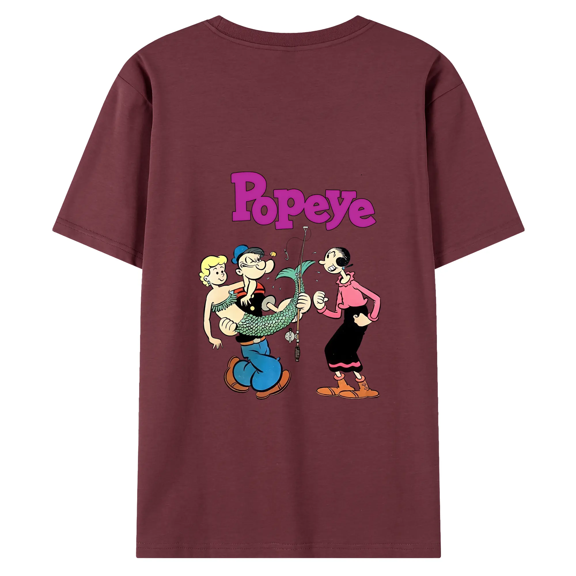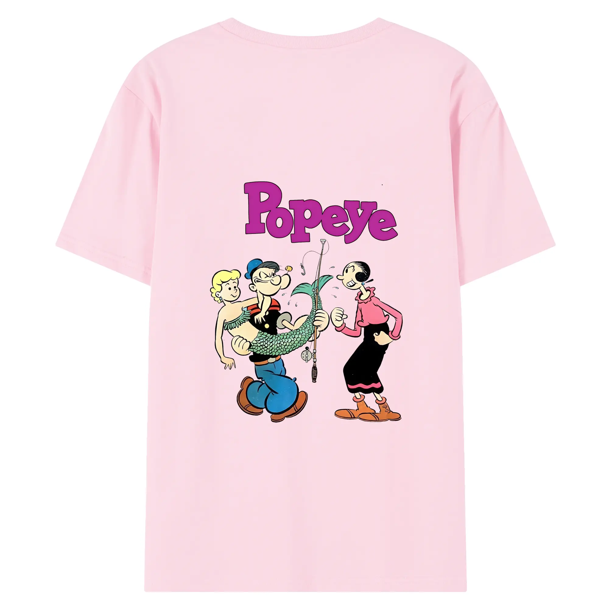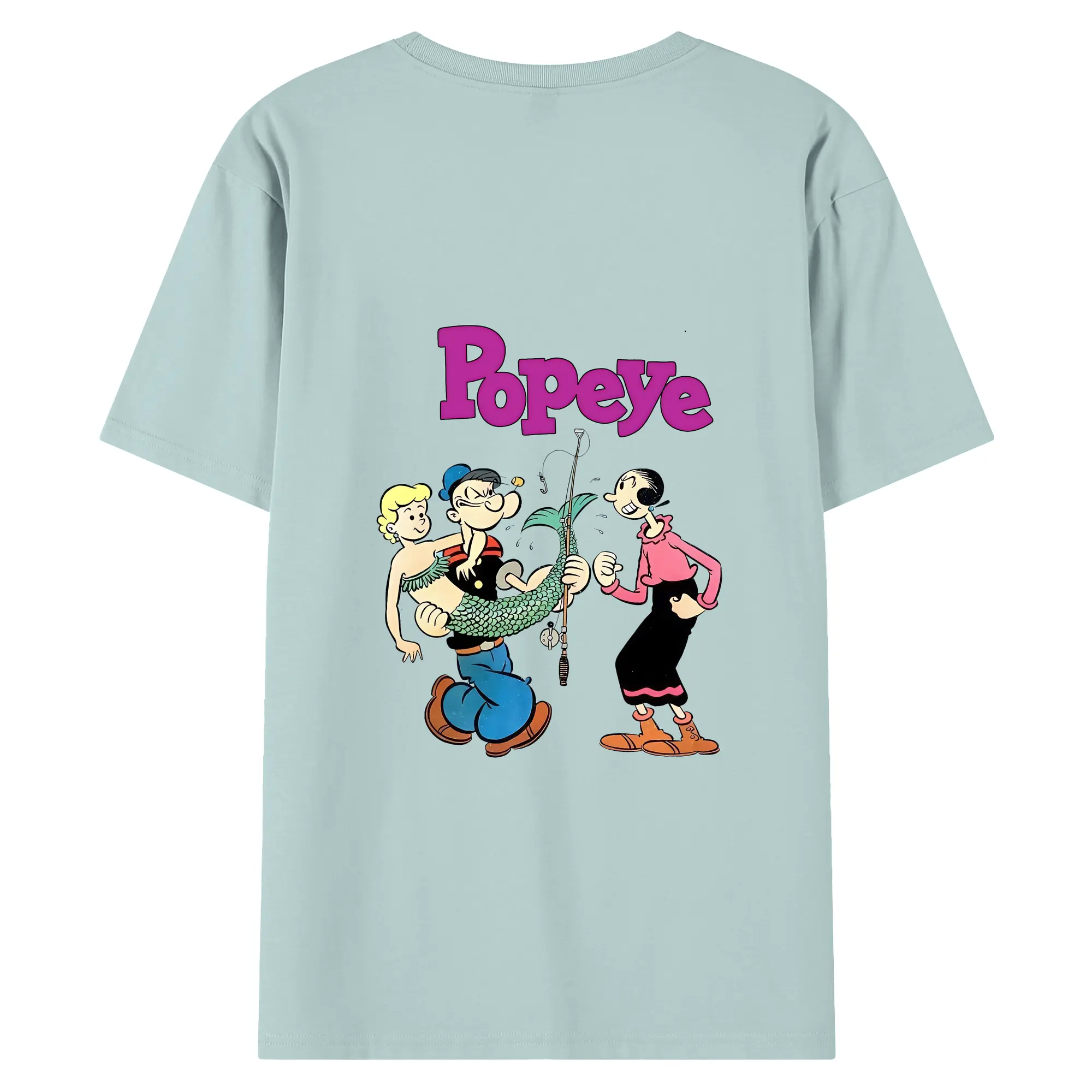 ポパイ グッズ オリーブ・オイル - 綿100% ヴィンテージ風 半袖Tシャツ ・ 背面プリント ・ 柔らか肌触り ・ 通気性 快適 ・ スポーツ カジュアル 外出用
