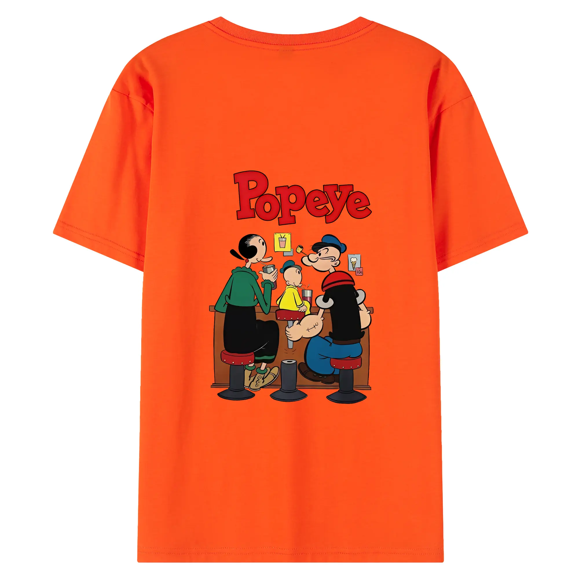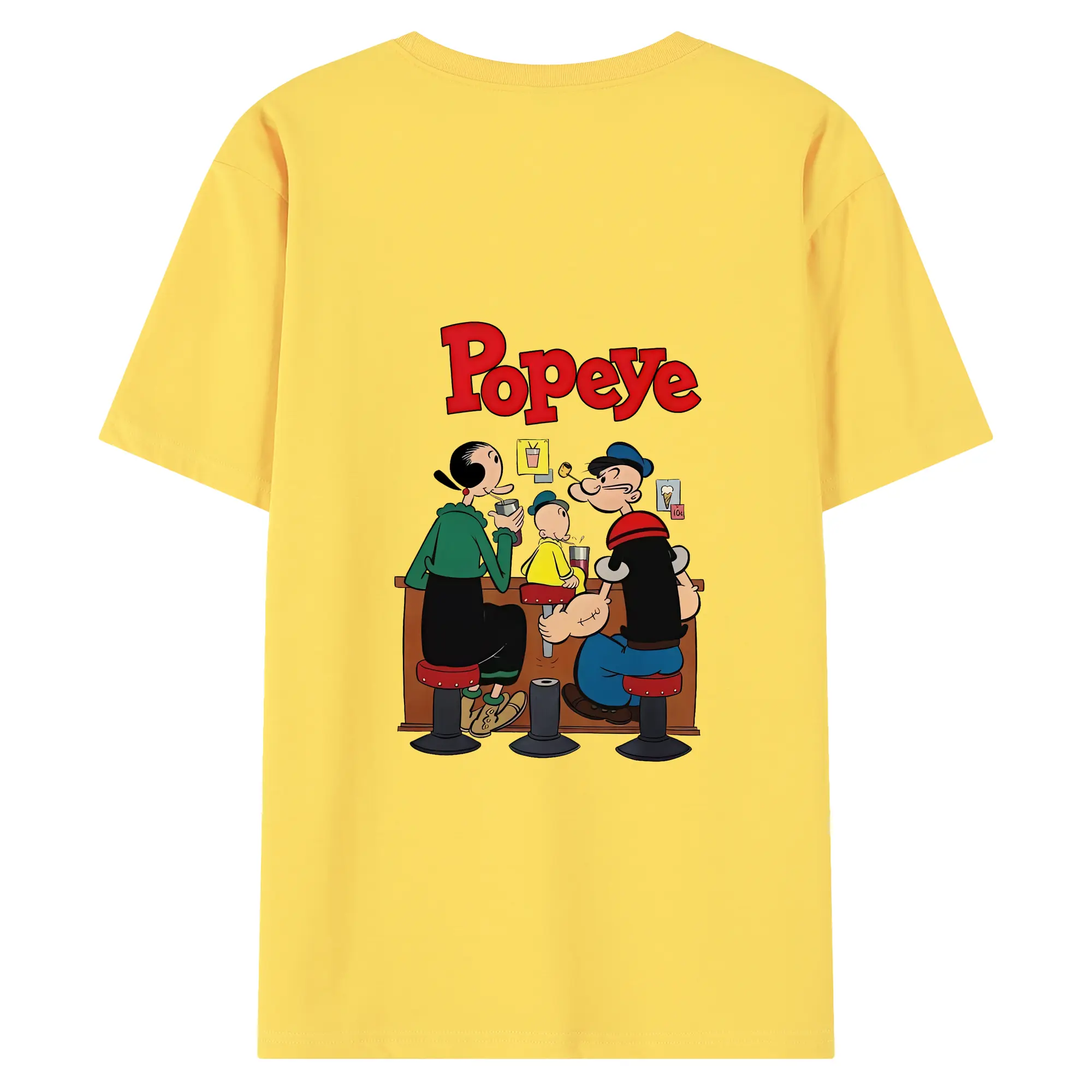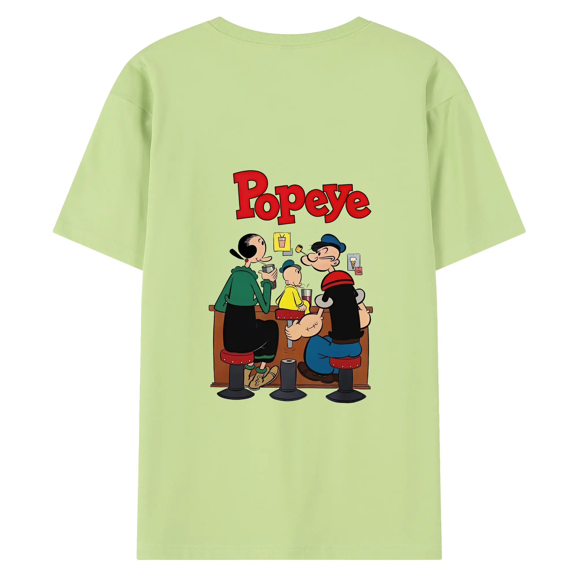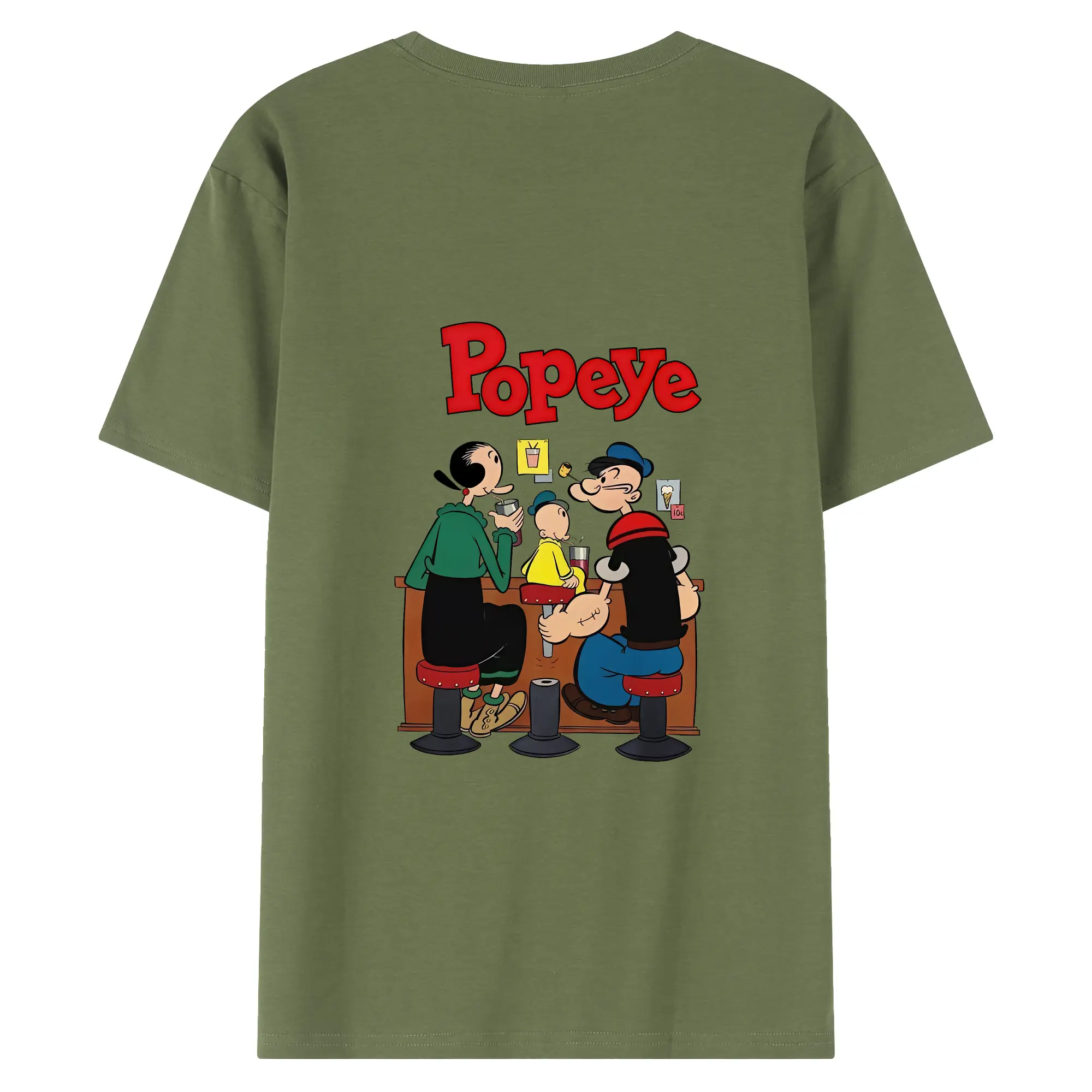 ポパイ グッズ オリーブ・オイル - 綿100% ヴィンテージ風 半袖Tシャツ ・ 背面プリント ・ 柔らか肌触り ・ 通気性 快適 ・ スポーツ カジュアル 外出用