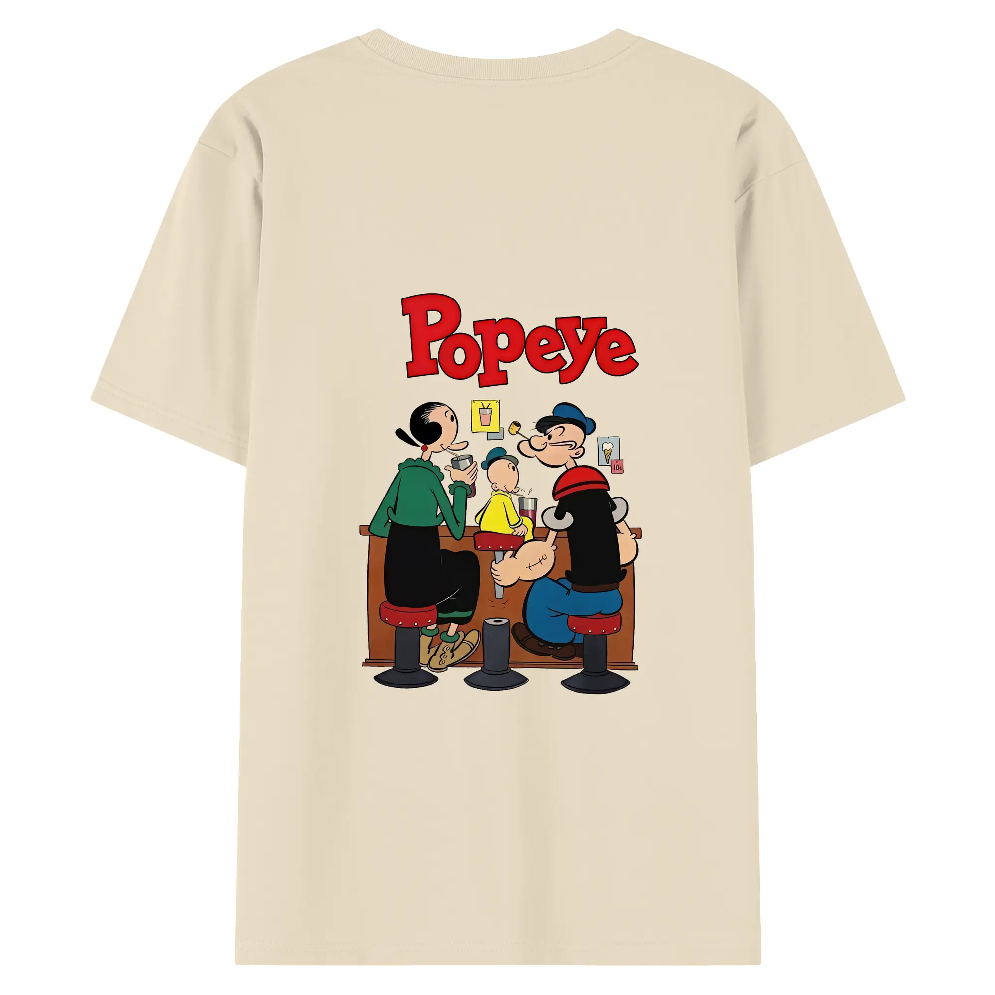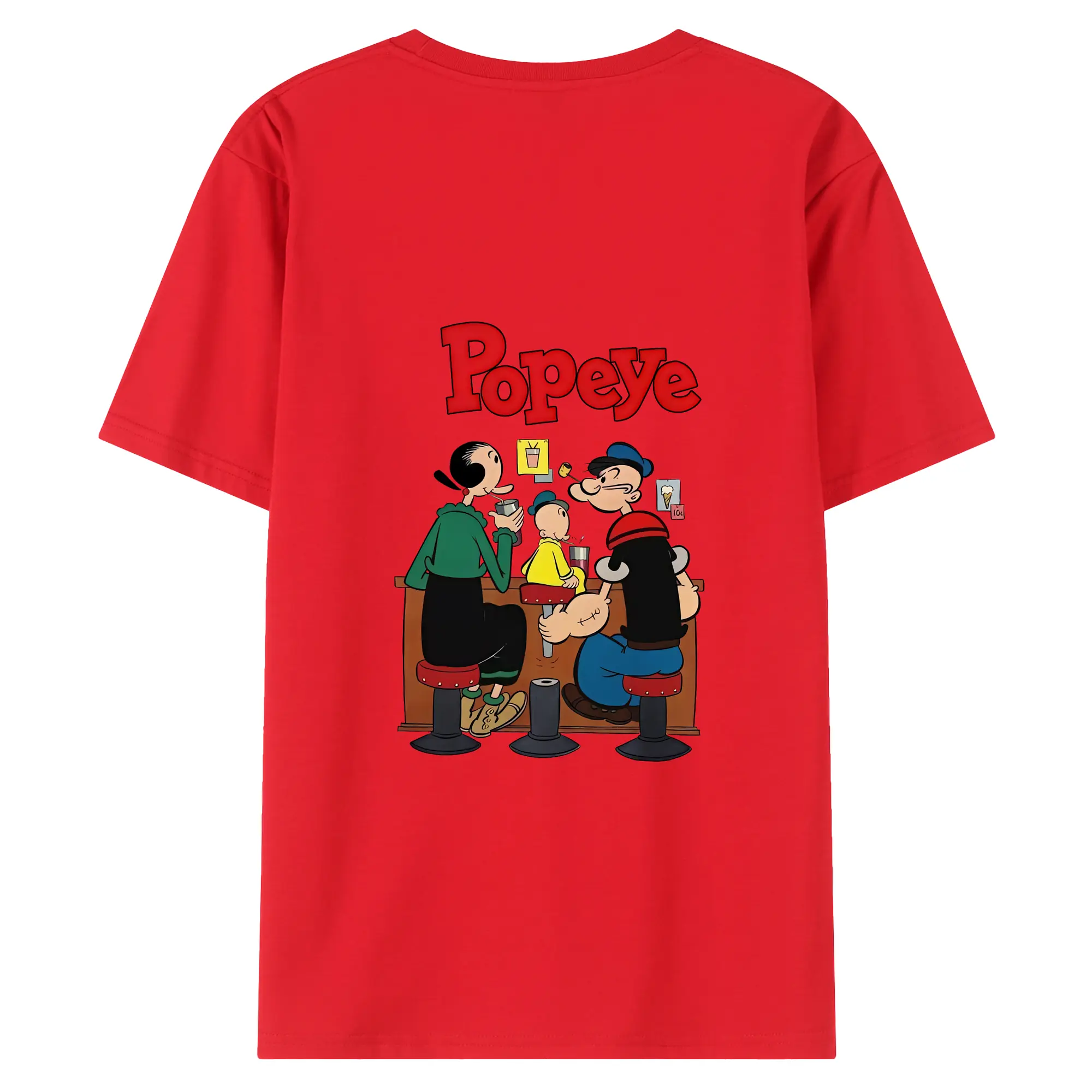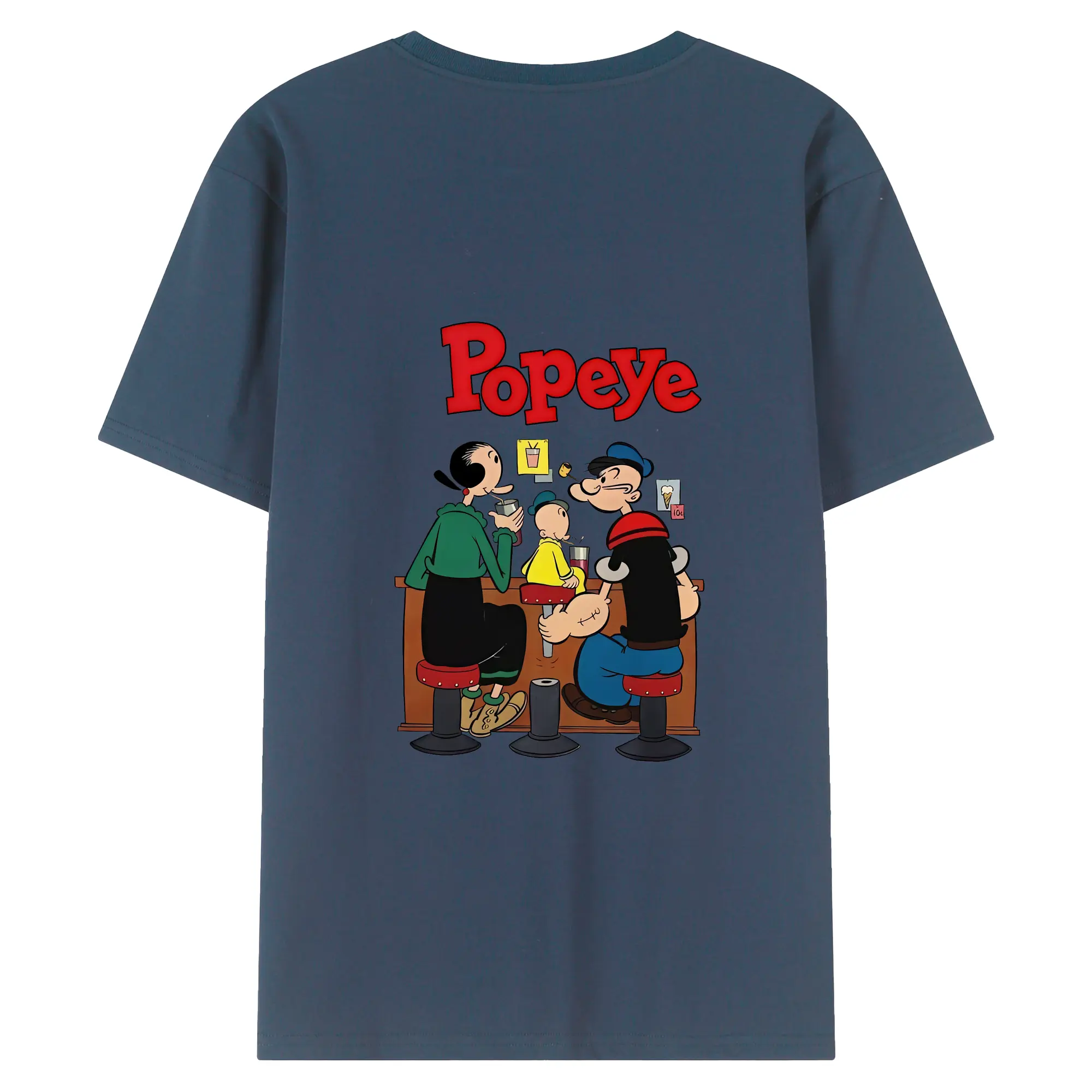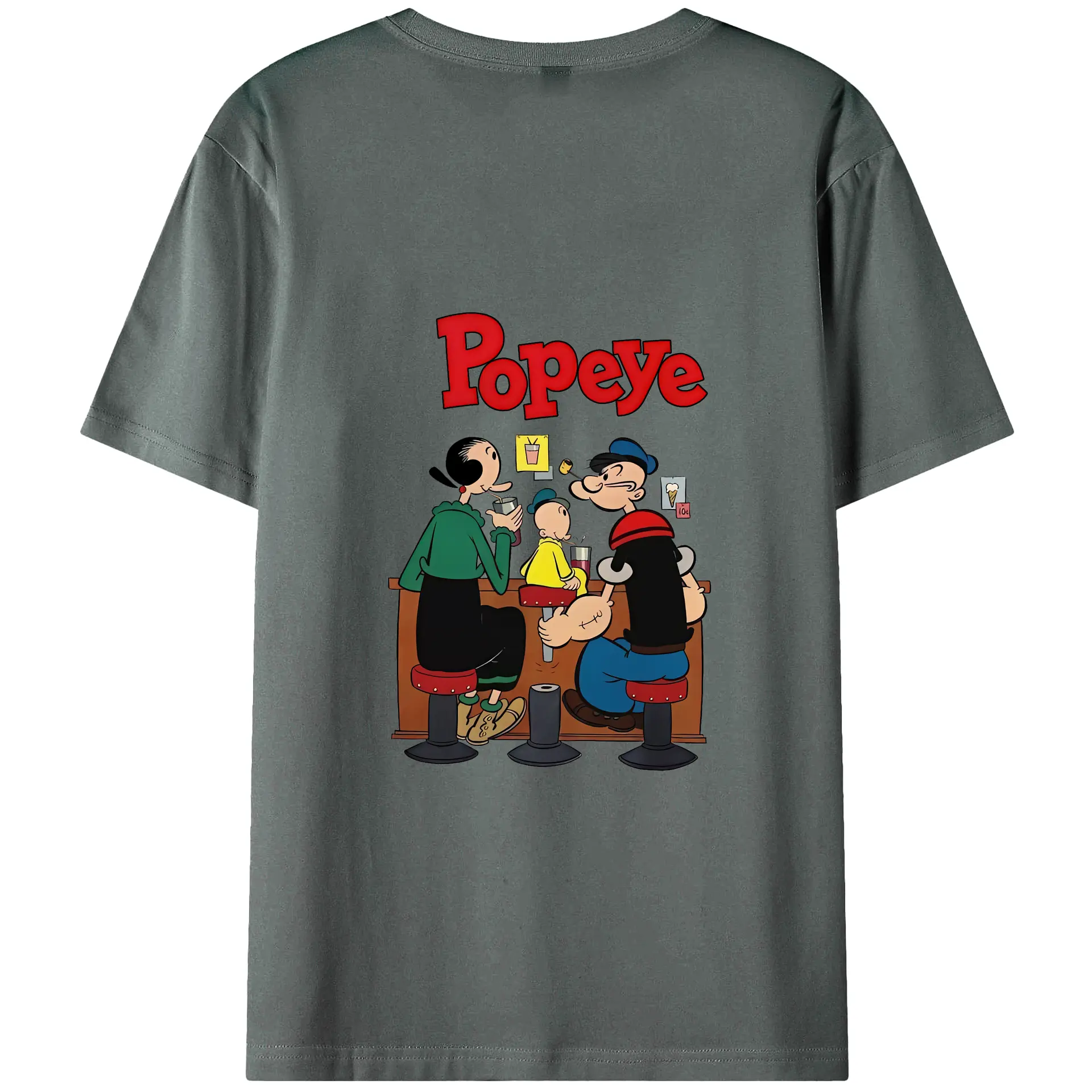 ポパイ グッズ オリーブ・オイル - 綿100% ヴィンテージ風 半袖Tシャツ ・ 背面プリント ・ 柔らか肌触り ・ 通気性 快適 ・ スポーツ カジュアル 外出用