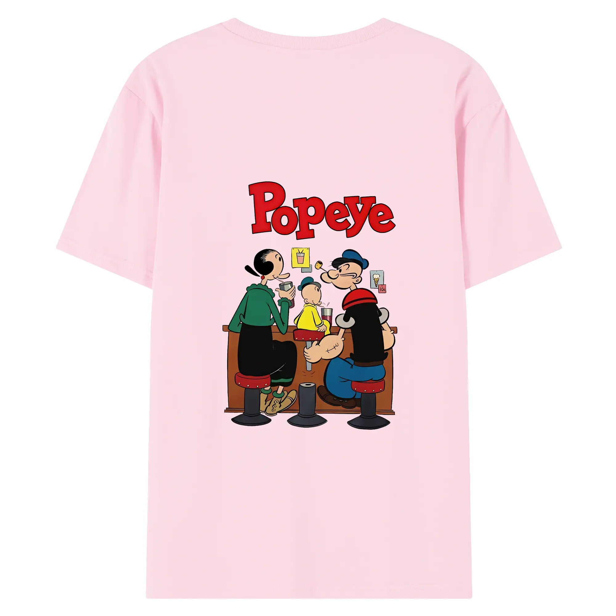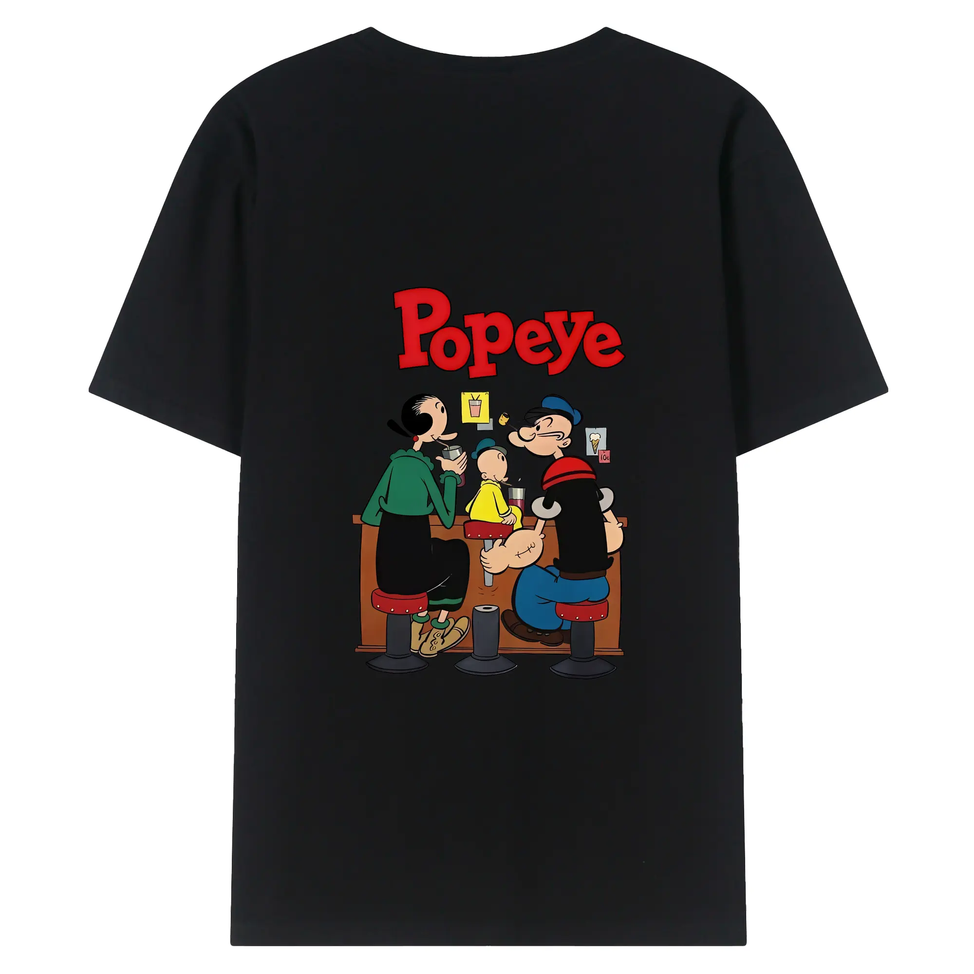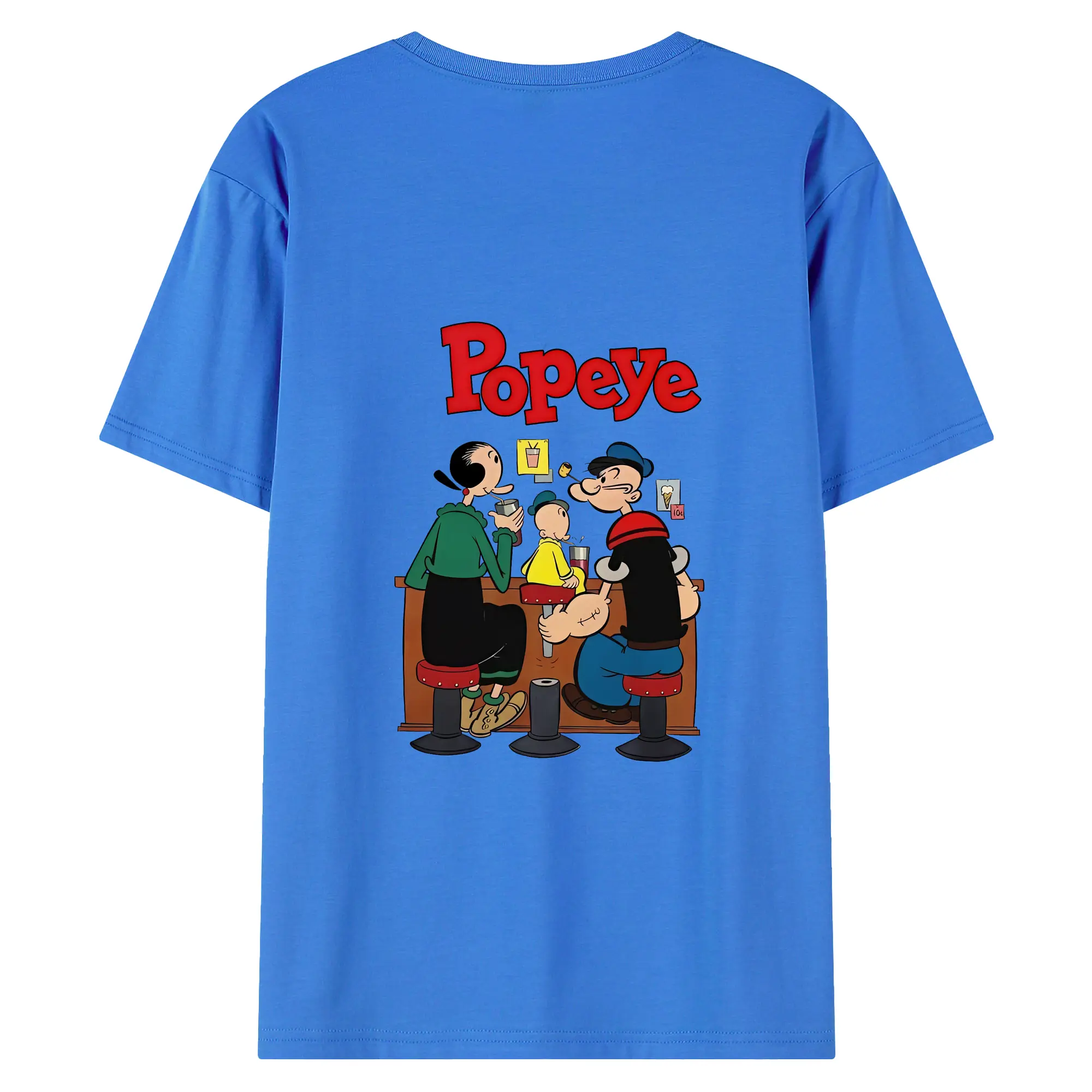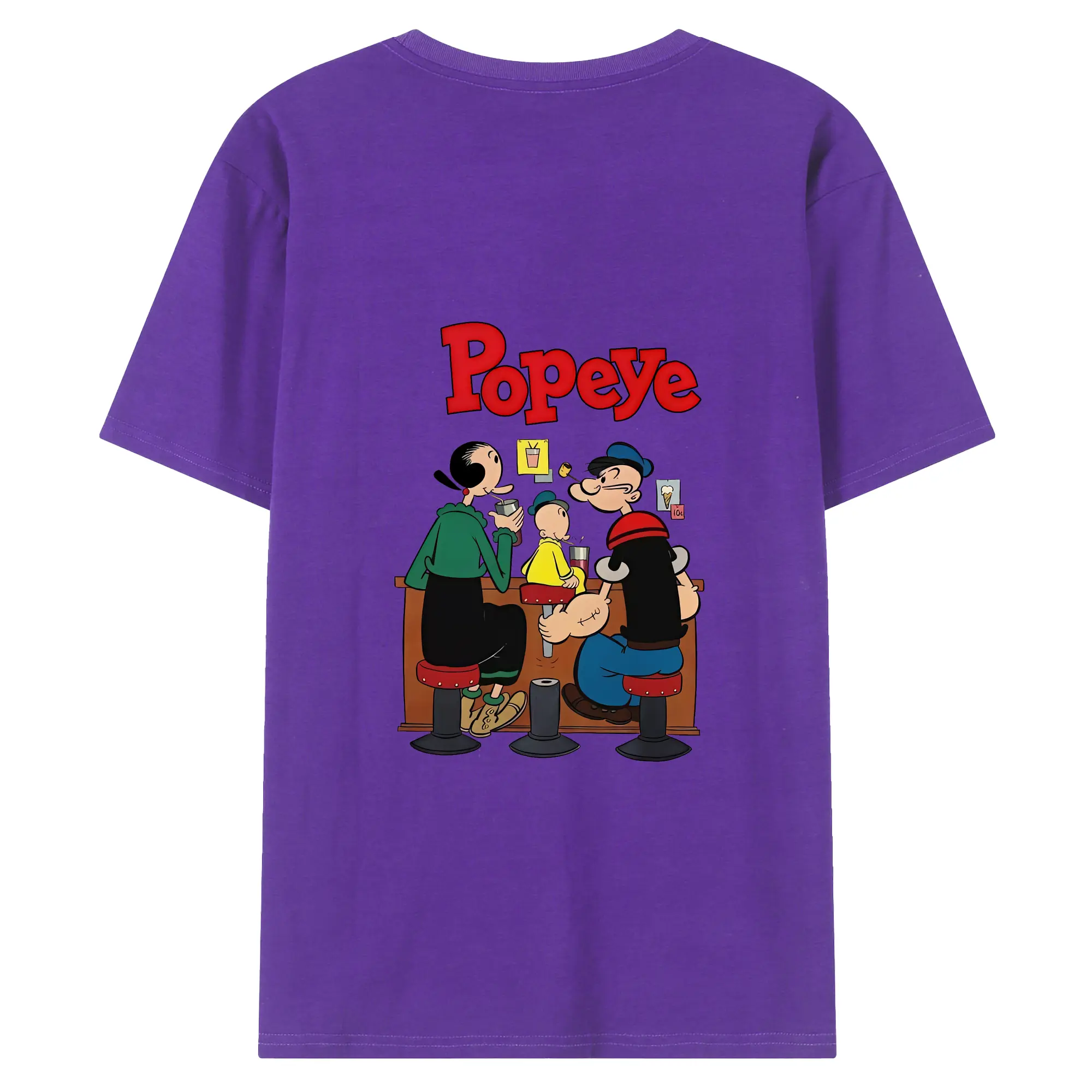 ポパイ グッズ オリーブ・オイル - 綿100% ヴィンテージ風 半袖Tシャツ ・ 背面プリント ・ 柔らか肌触り ・ 通気性 快適 ・ スポーツ カジュアル 外出用