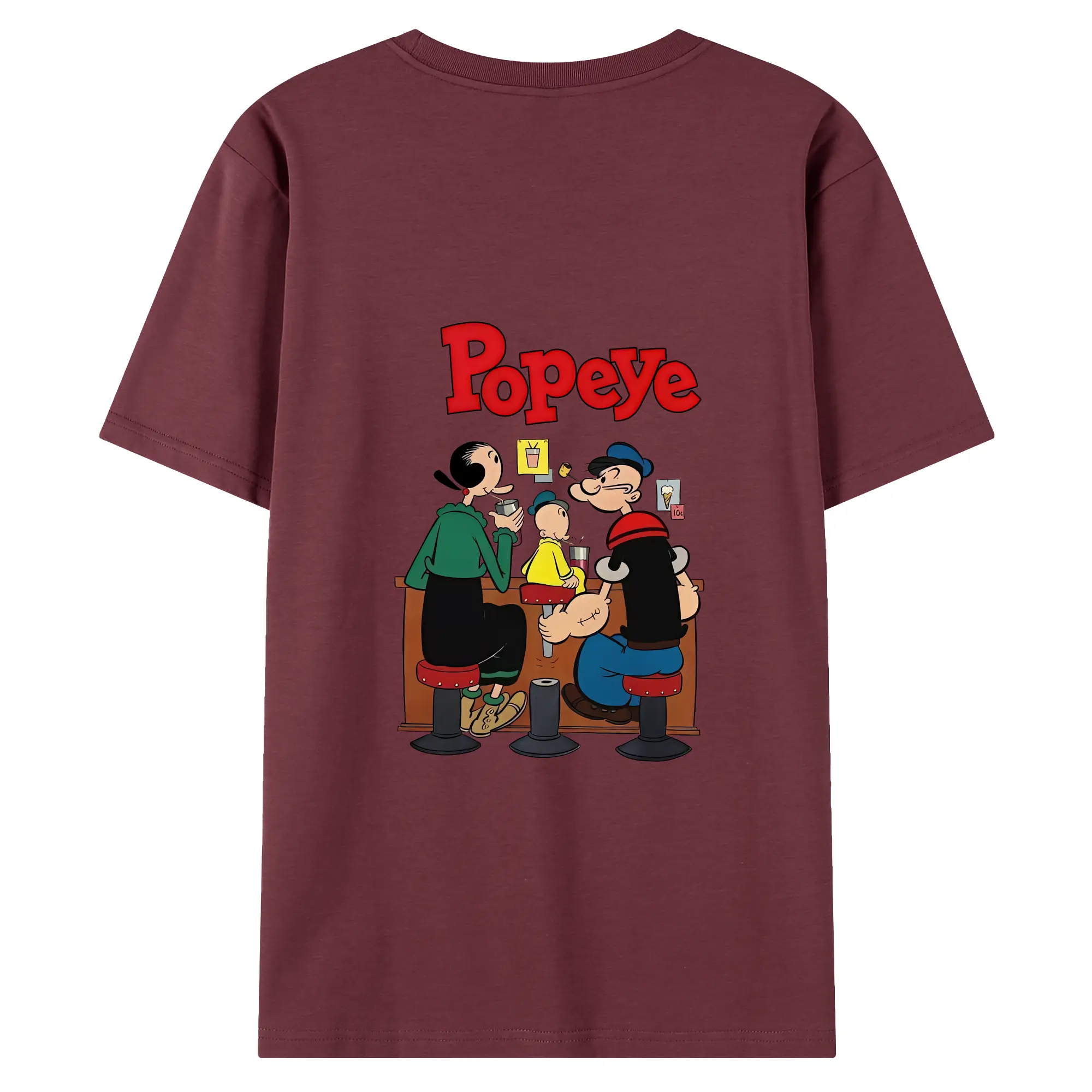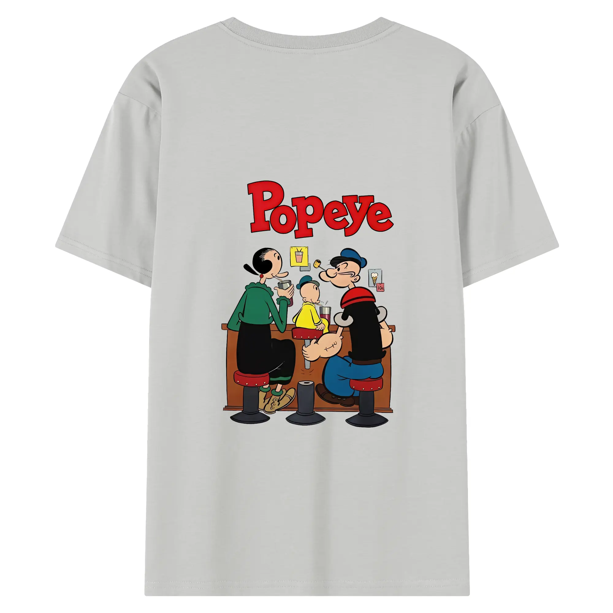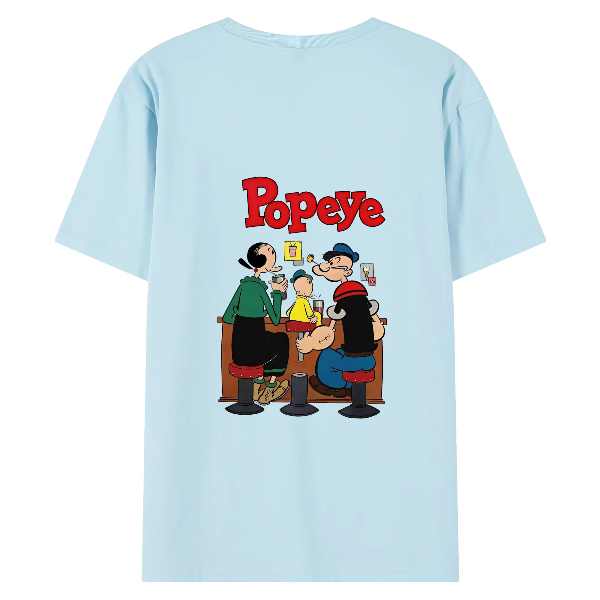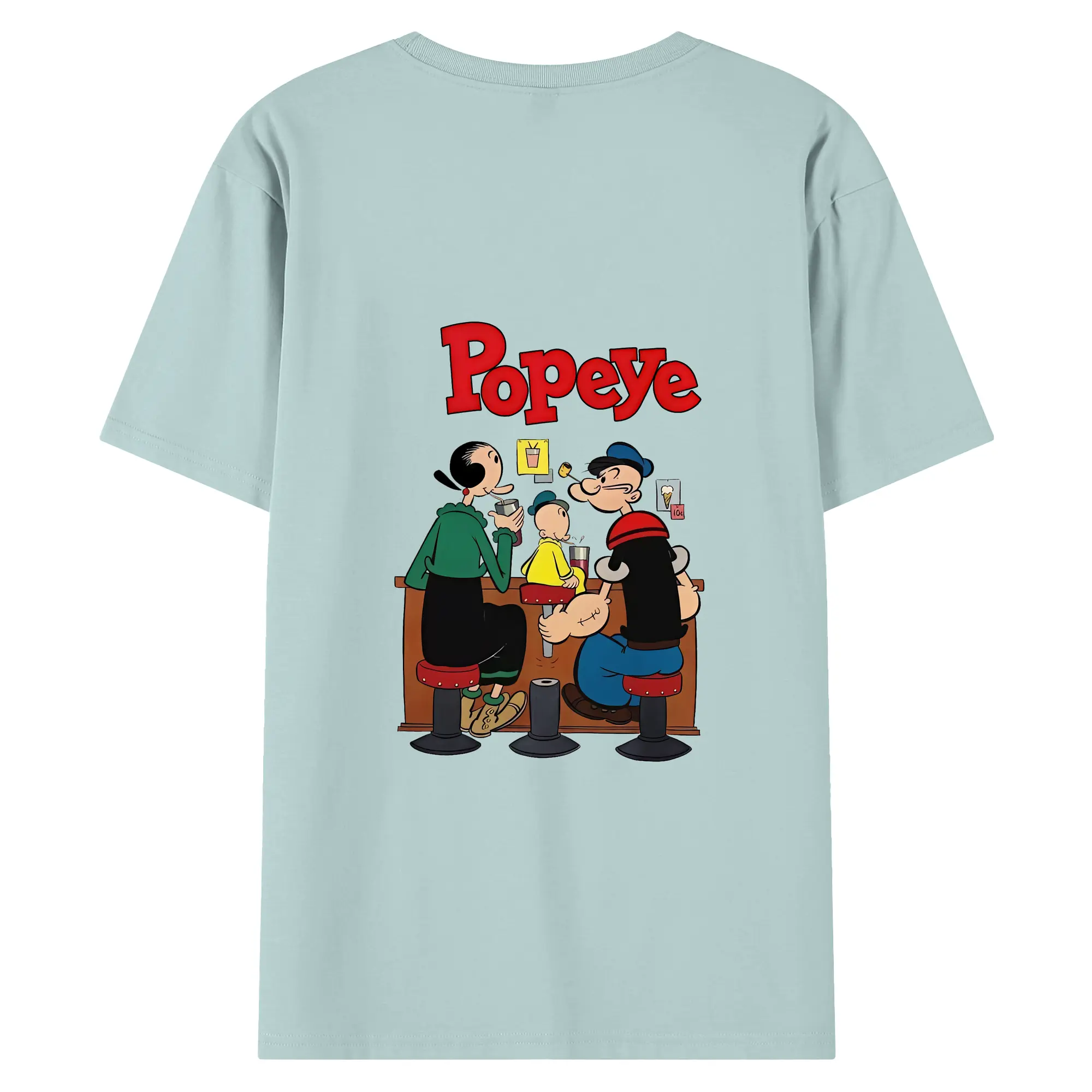 ポパイ グッズ オリーブ・オイル - 綿100% ヴィンテージ風 半袖Tシャツ ・ 背面プリント ・ 柔らか肌触り ・ 通気性 快適 ・ スポーツ カジュアル 外出用