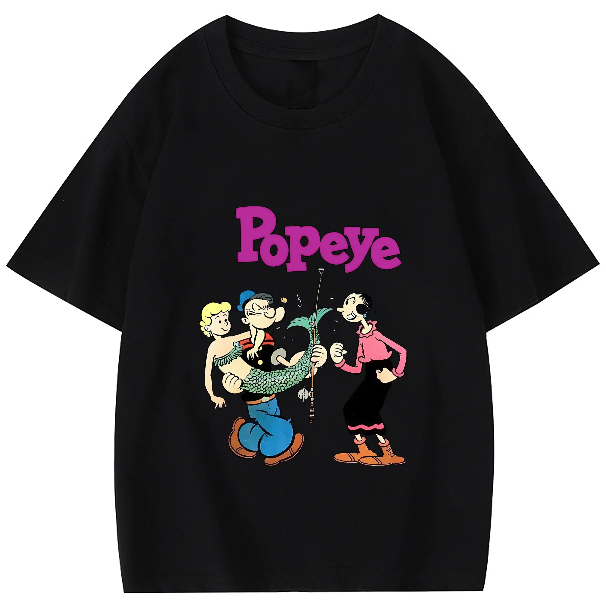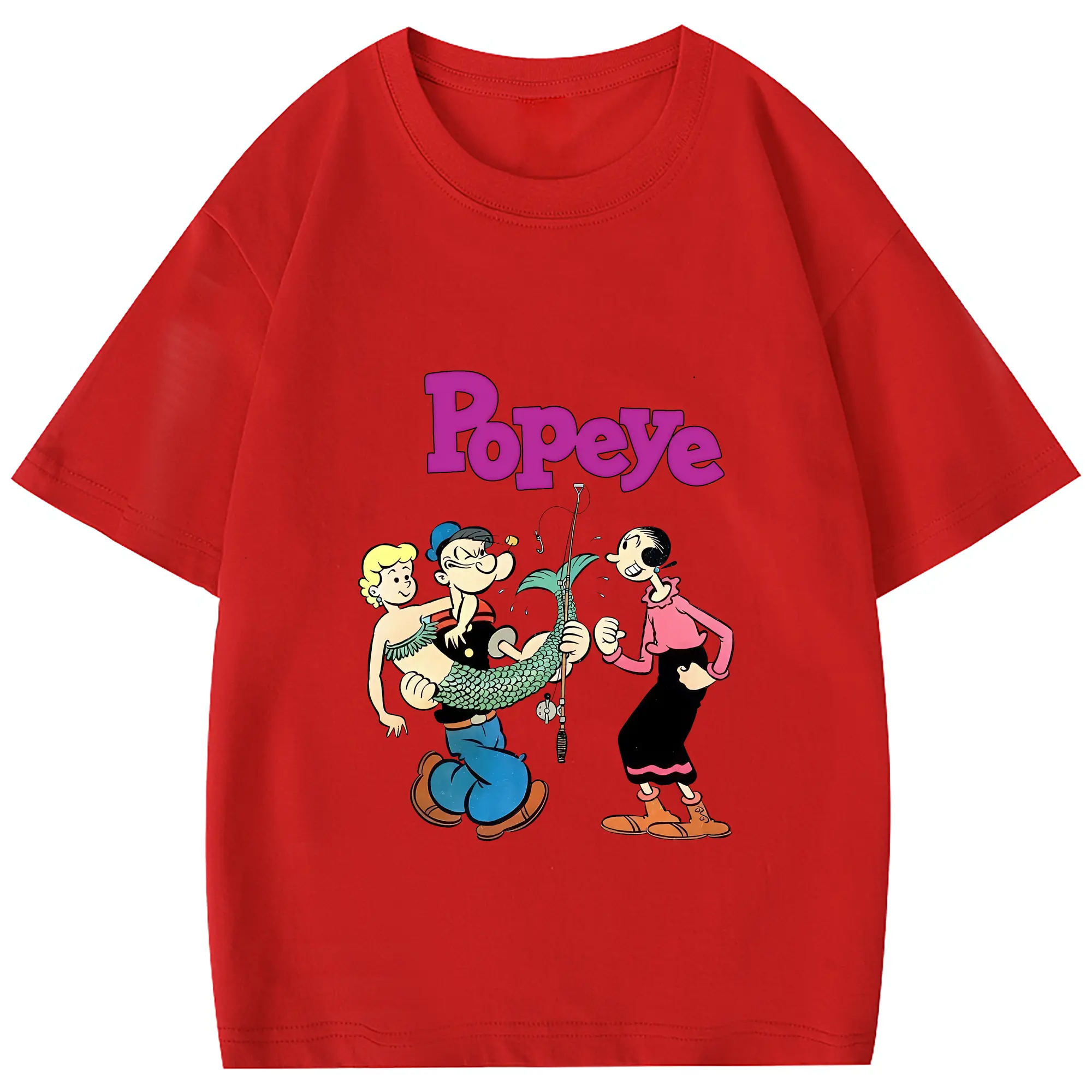 ポパイ グッズ オリーブ・オイル - 綿100% 半袖Tシャツ ・ バックプリント ・ 快適 通気性 ・ 日常使い 散歩 スポーツ用