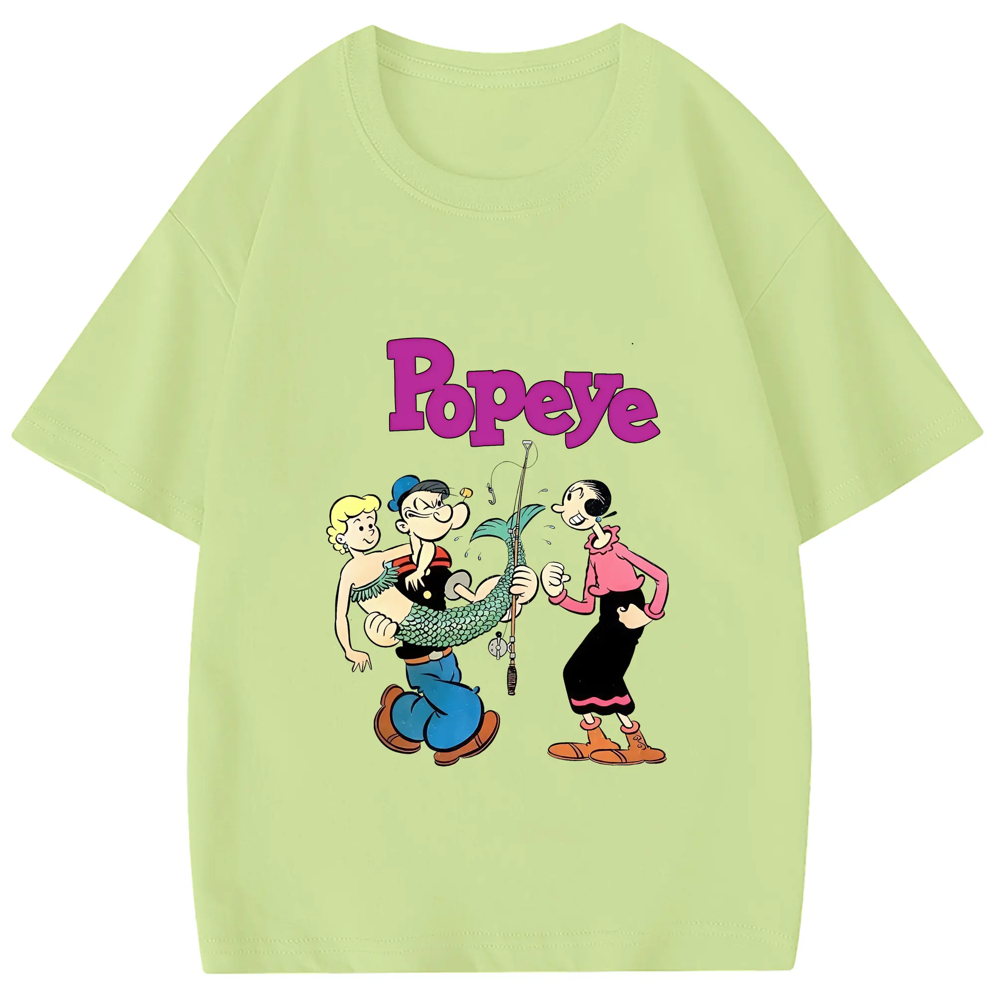ポパイ グッズ オリーブ・オイル - 綿100% 半袖Tシャツ ・ フロントプリント ・ 快適 通気性 ・ 日常使い 散歩 スポーツ用