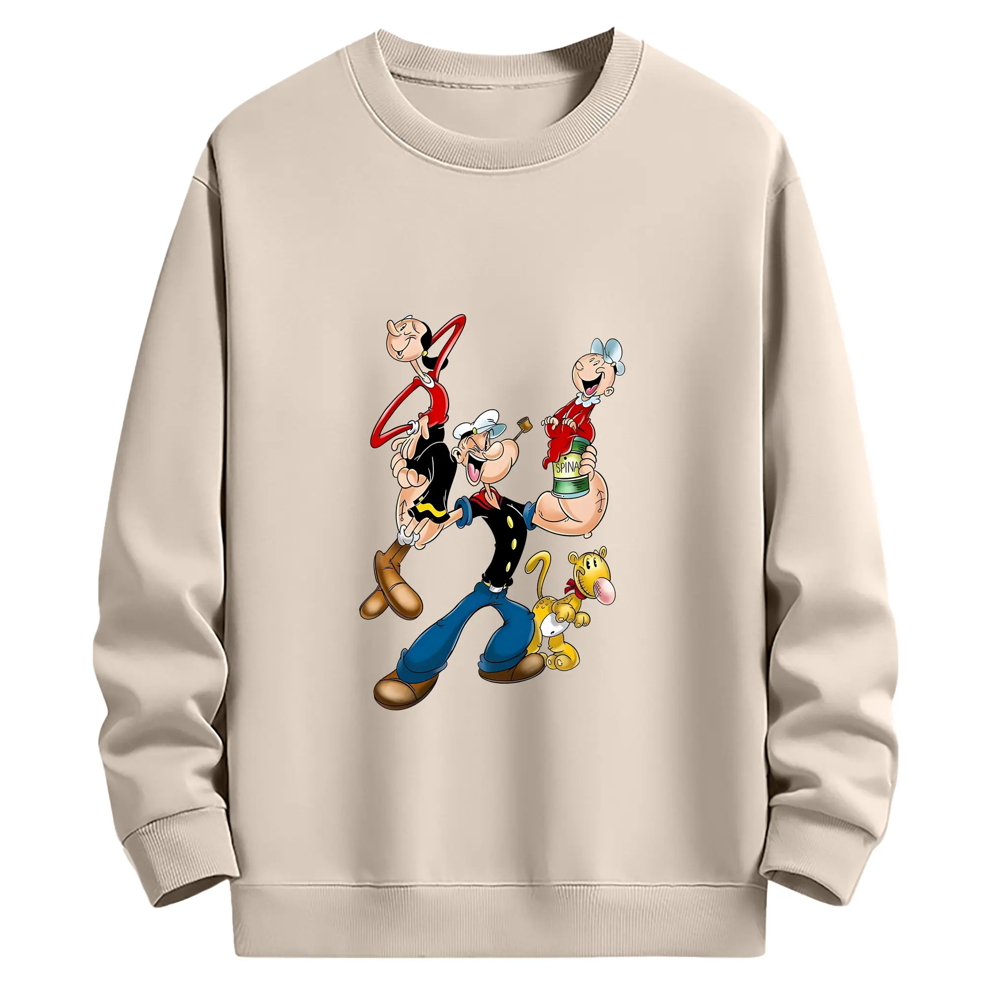 ポパイ グッズ オリーブ・オイル - 薄手 クルーネック スウェット 裏毛260g · ポリエステル 春秋向け カジュアル 男女兼用 · トレーナー デイリー スポーツ 散歩に最適