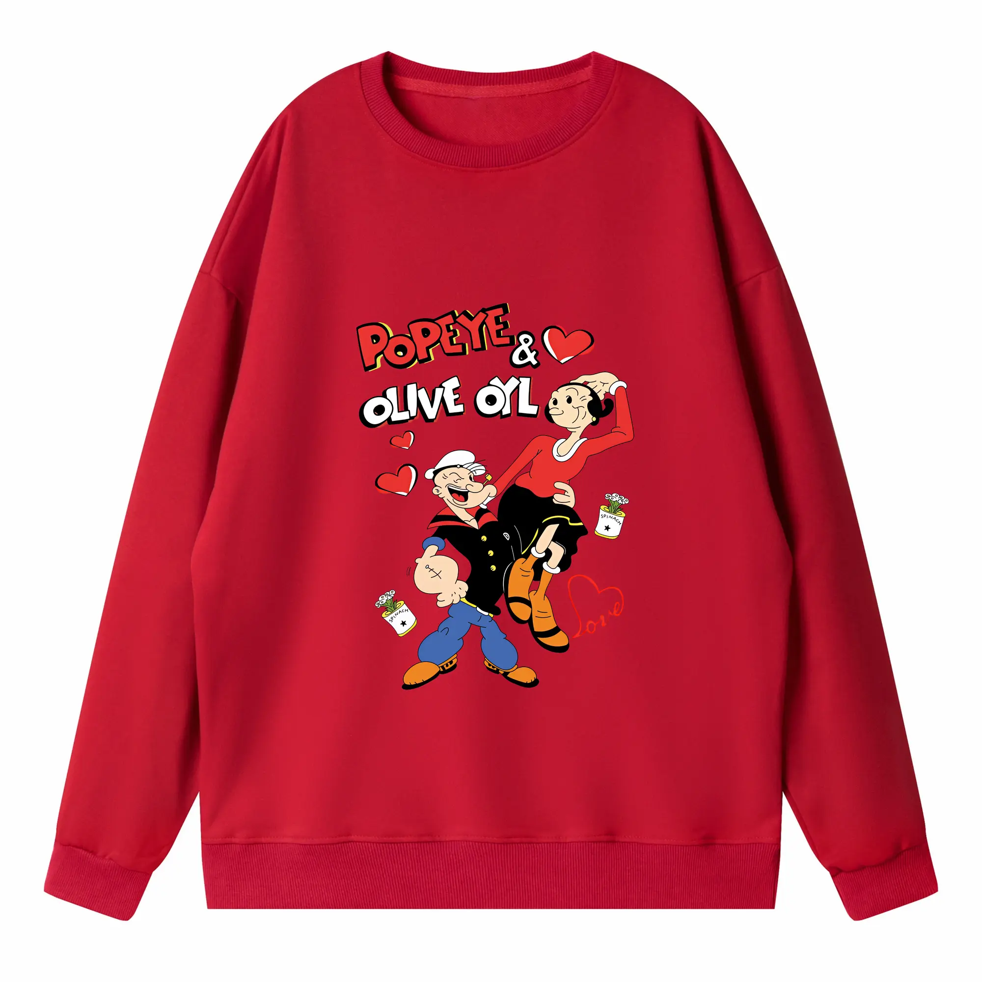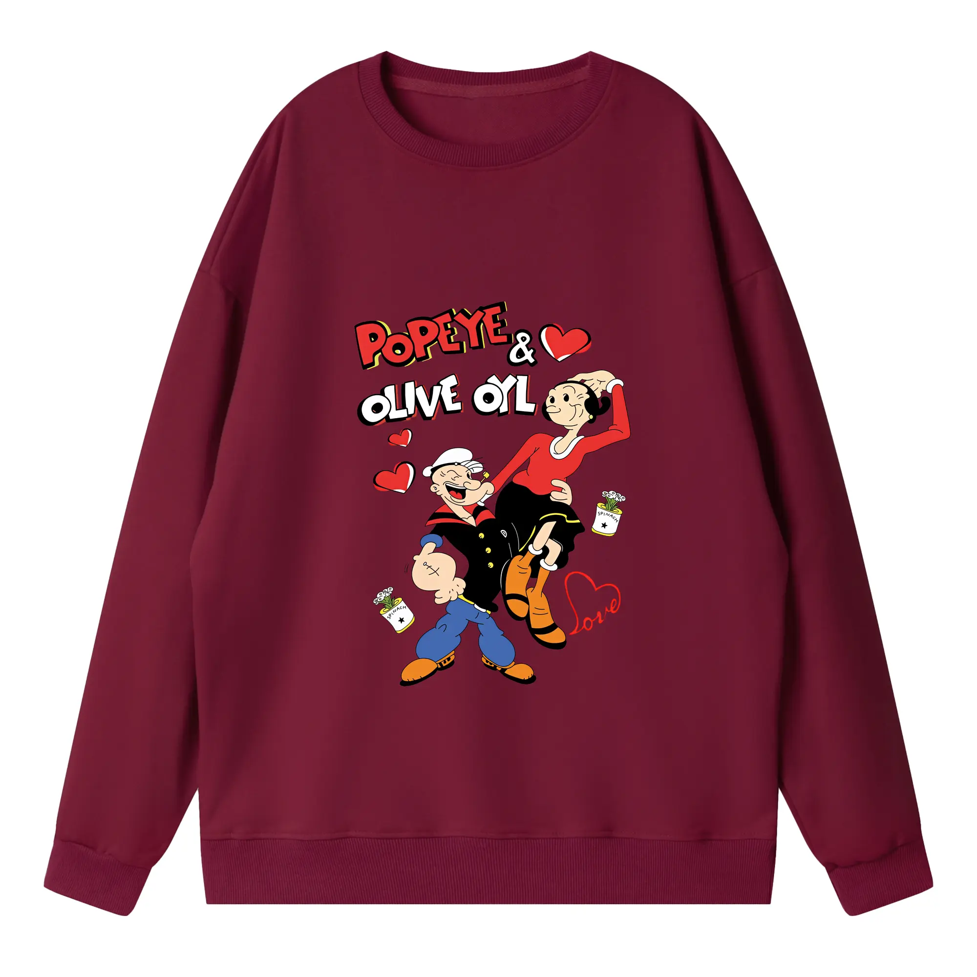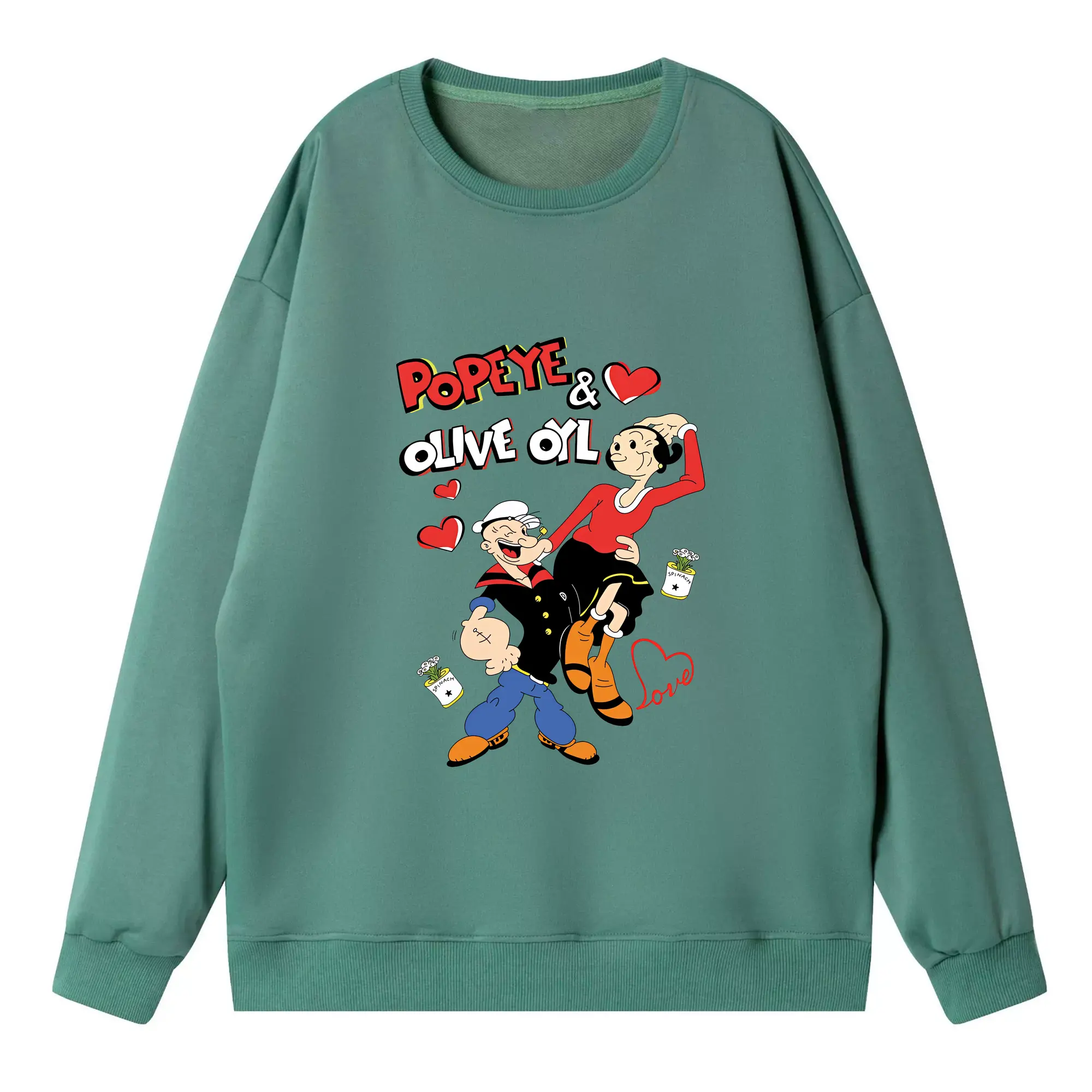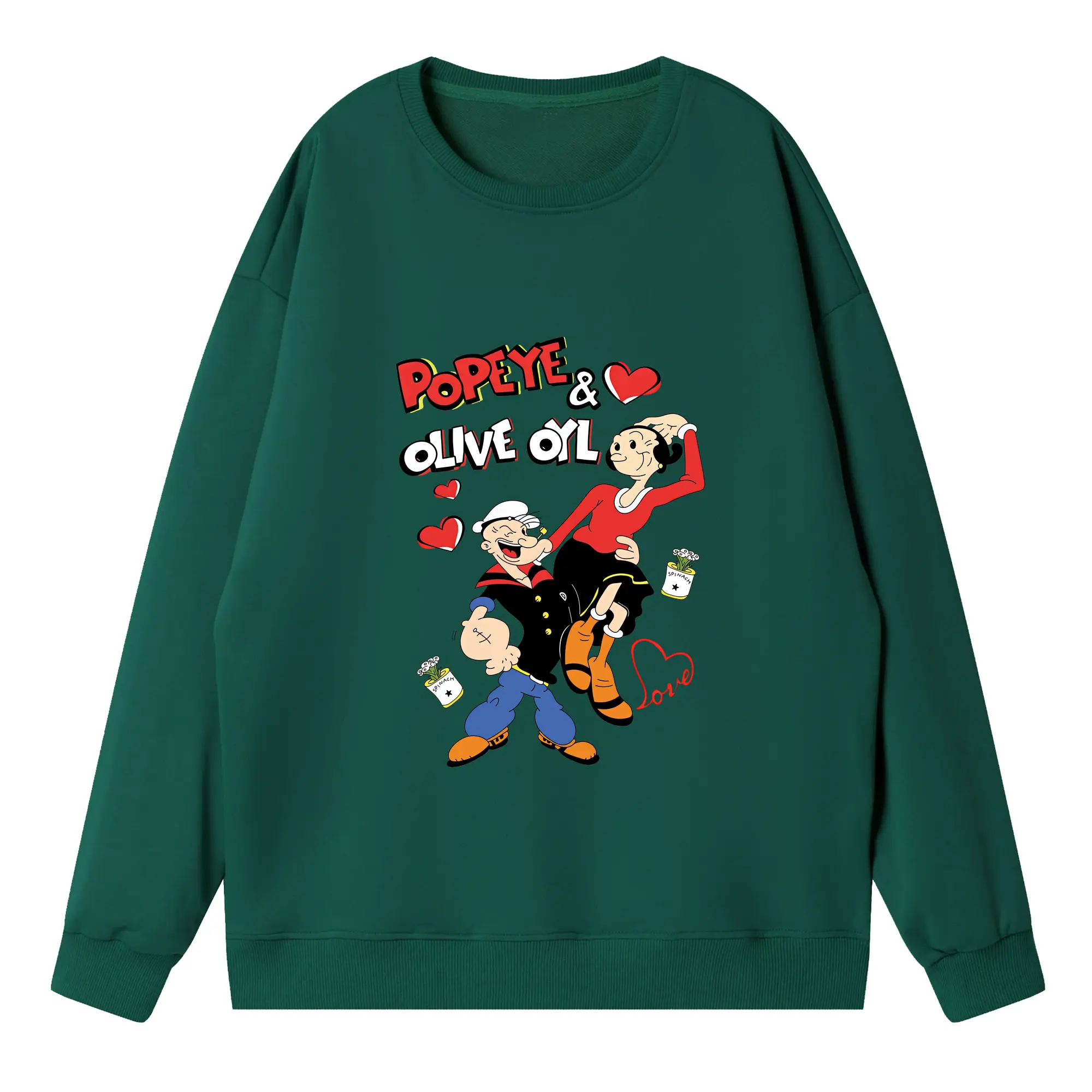 ポパイ グッズ オリーブ・オイル - 高品質 クルーネック スウェット ・ コットン59% ポリエステル41% ・ ユニセックス 長袖 トレーナー ・ カジュアル デイリー スポーツ 散歩用
