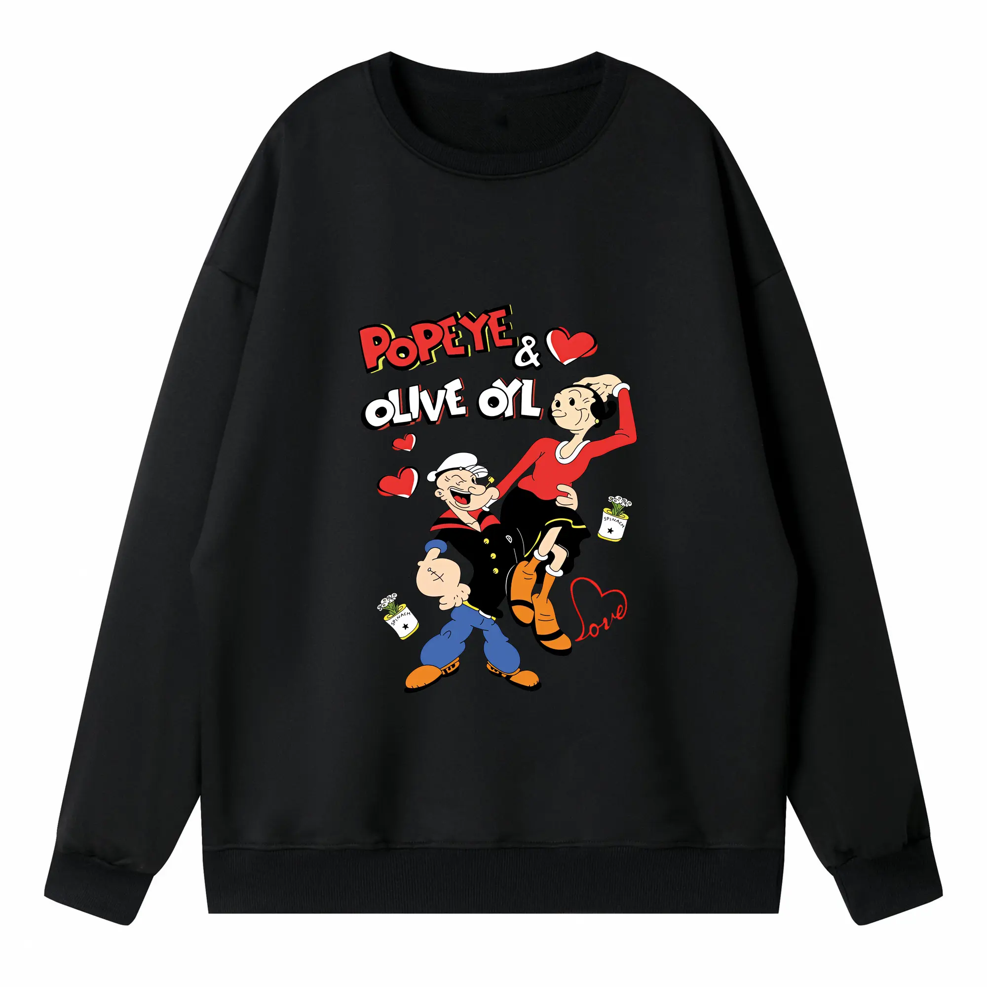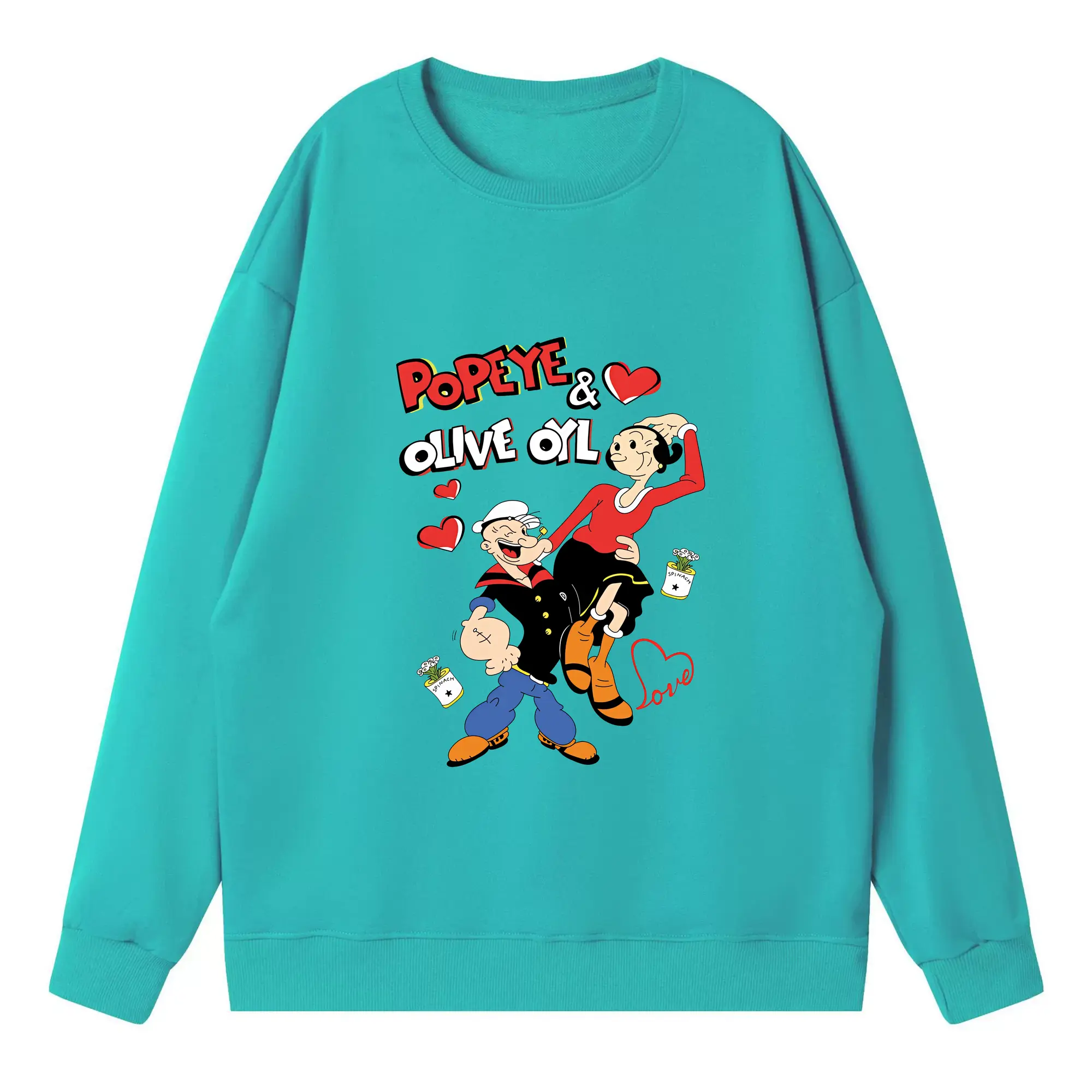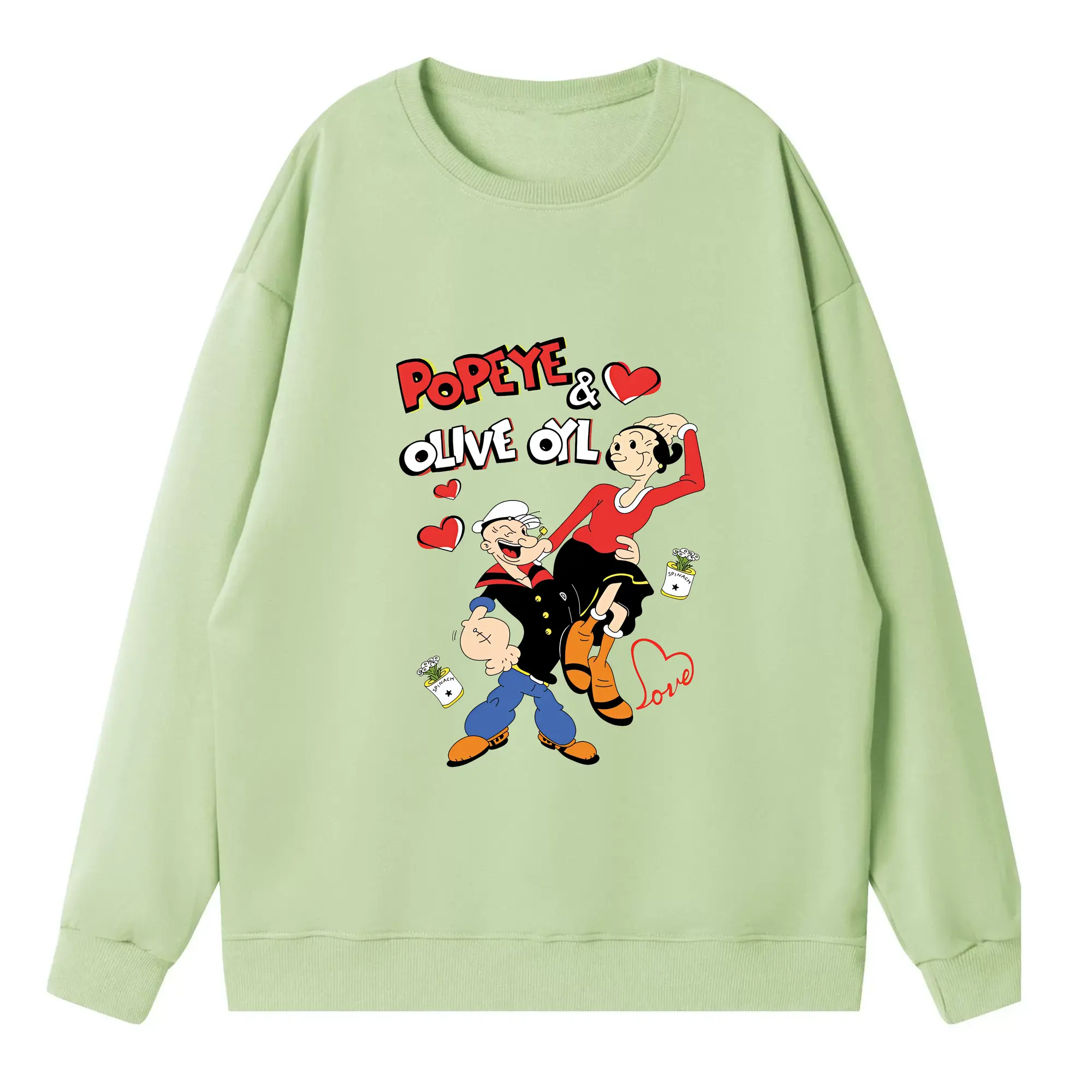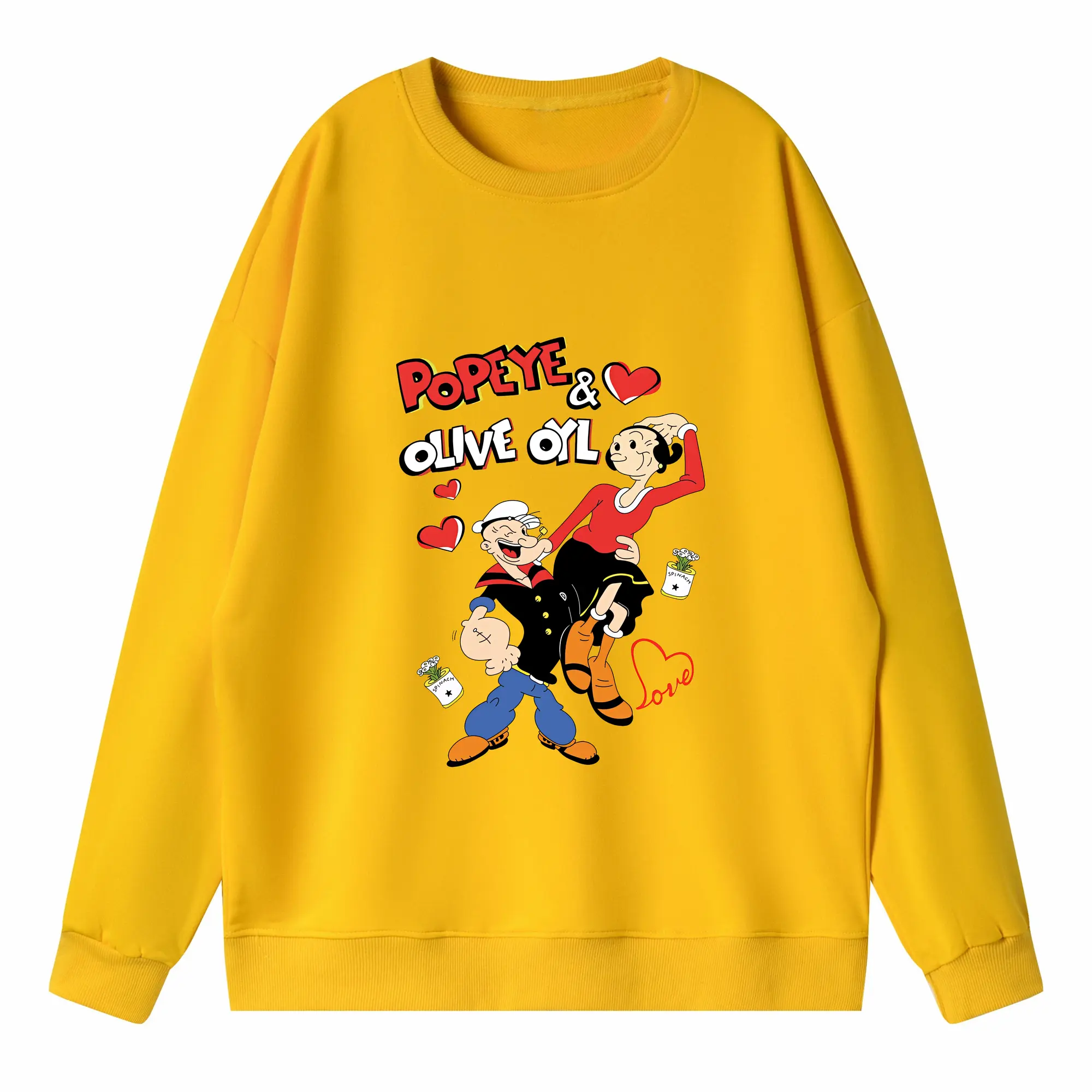 ポパイ グッズ オリーブ・オイル - 高品質 クルーネック スウェット ・ コットン59% ポリエステル41% ・ ユニセックス 長袖 トレーナー ・ カジュアル デイリー スポーツ 散歩用