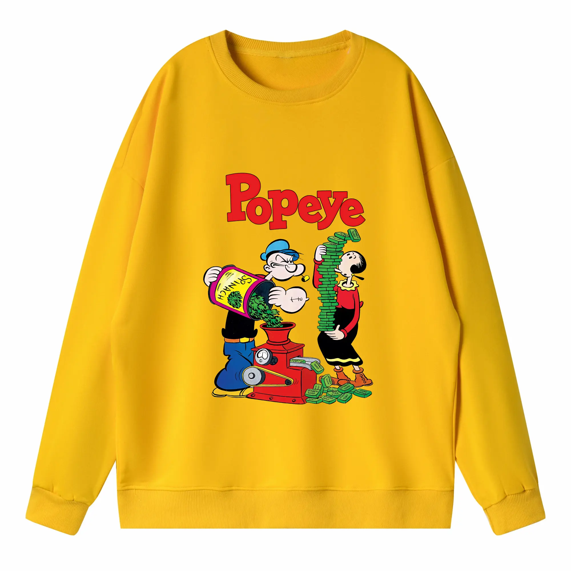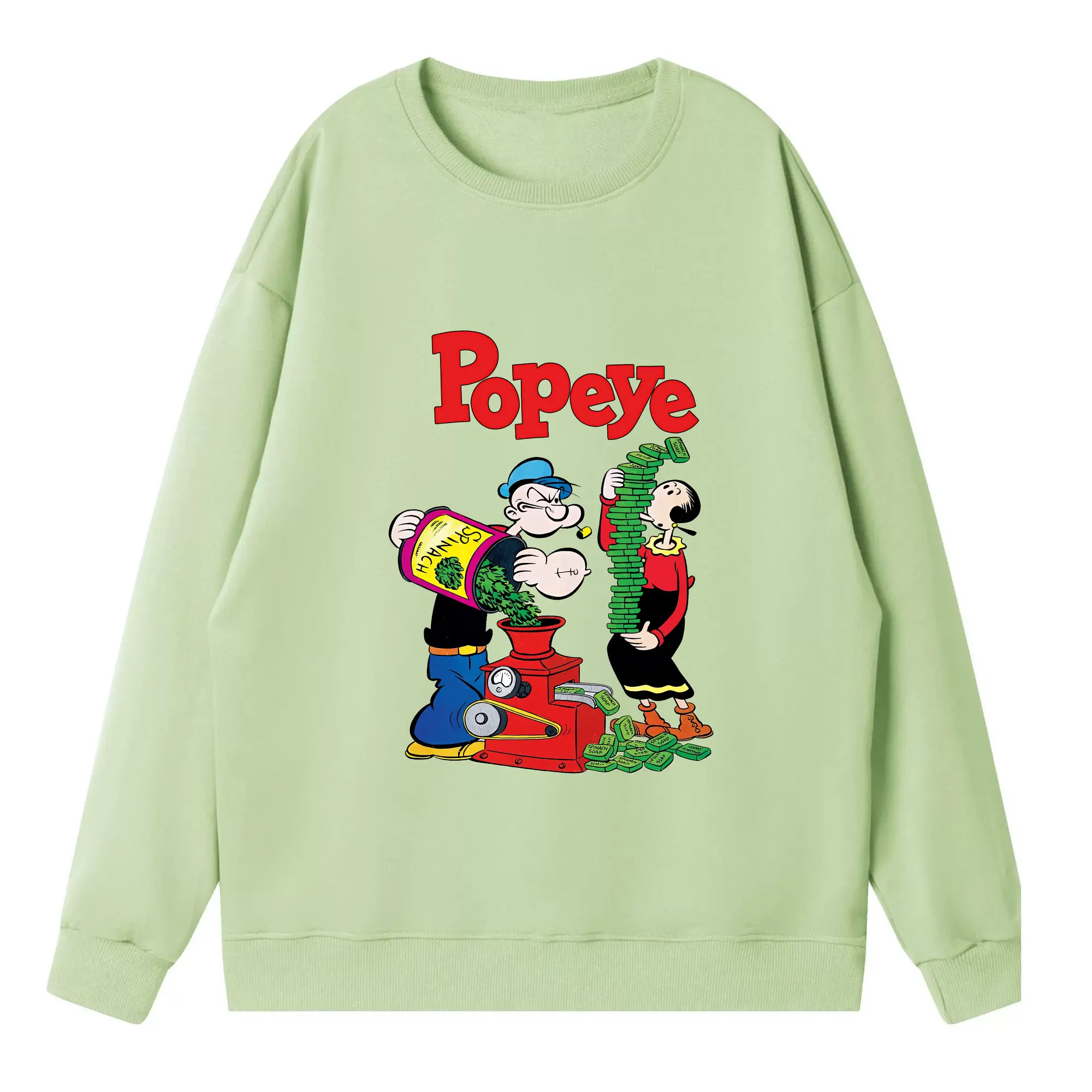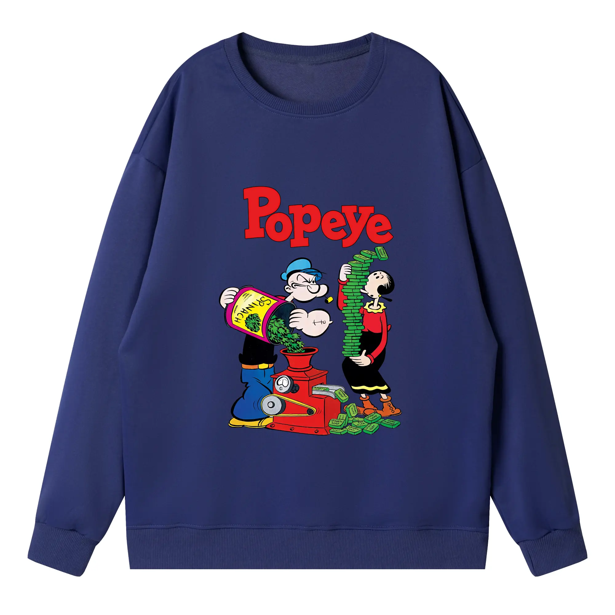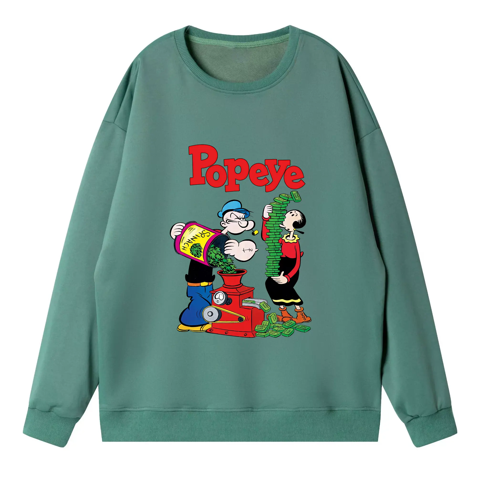 ポパイ グッズ オリーブ・オイル - 高品質 クルーネック スウェット ・ コットン59% ポリエステル41% ・ ユニセックス 長袖 トレーナー ・ カジュアル デイリー スポーツ 散歩用