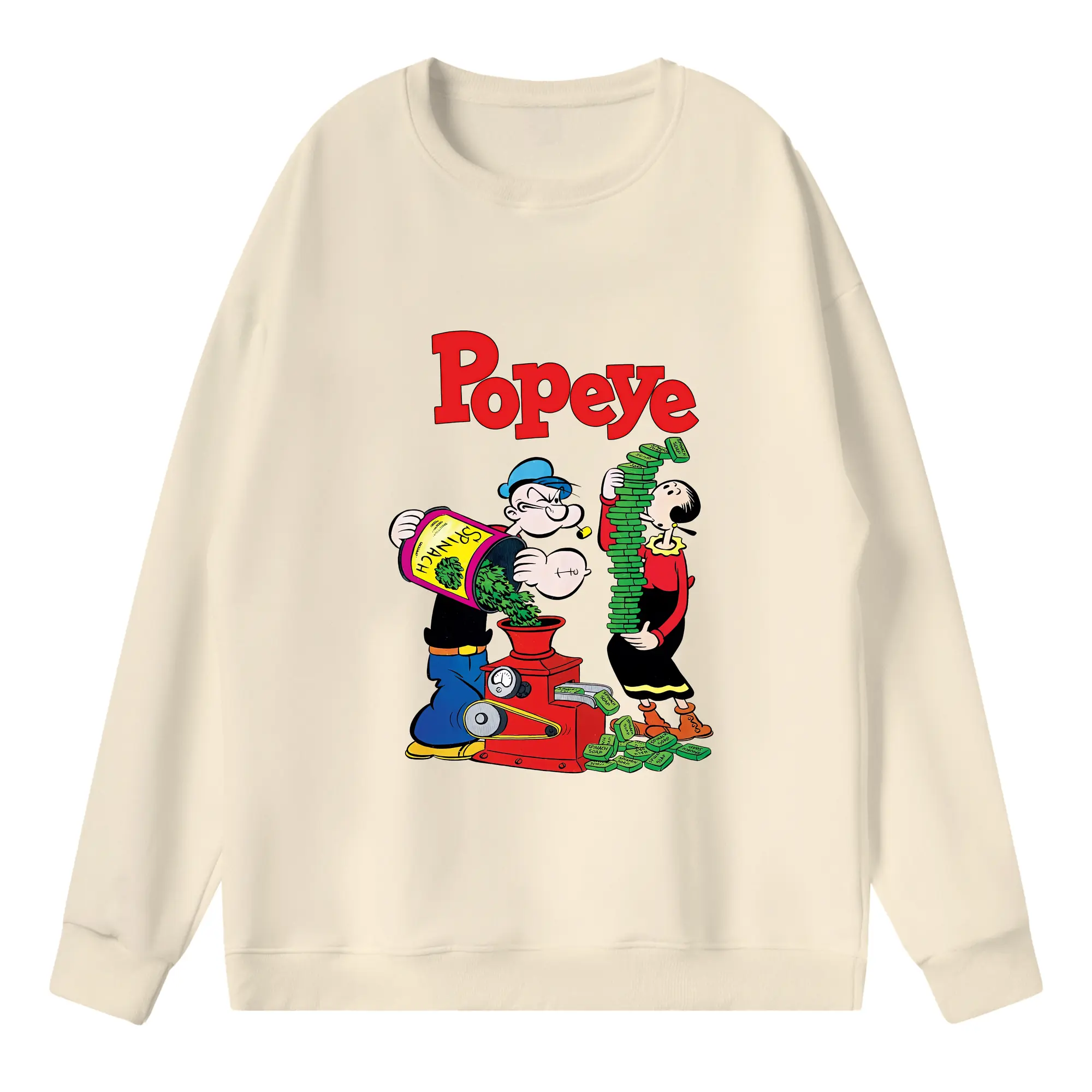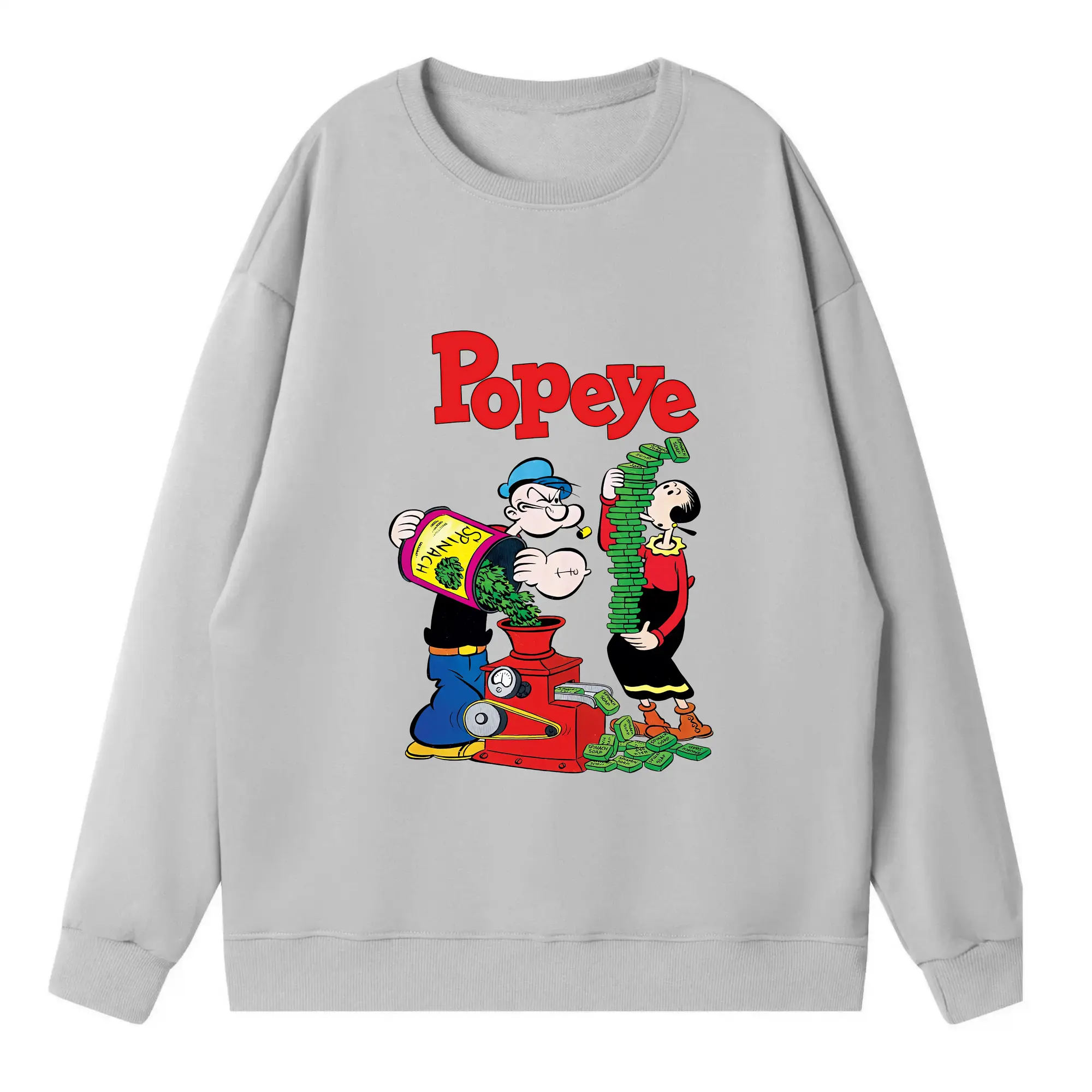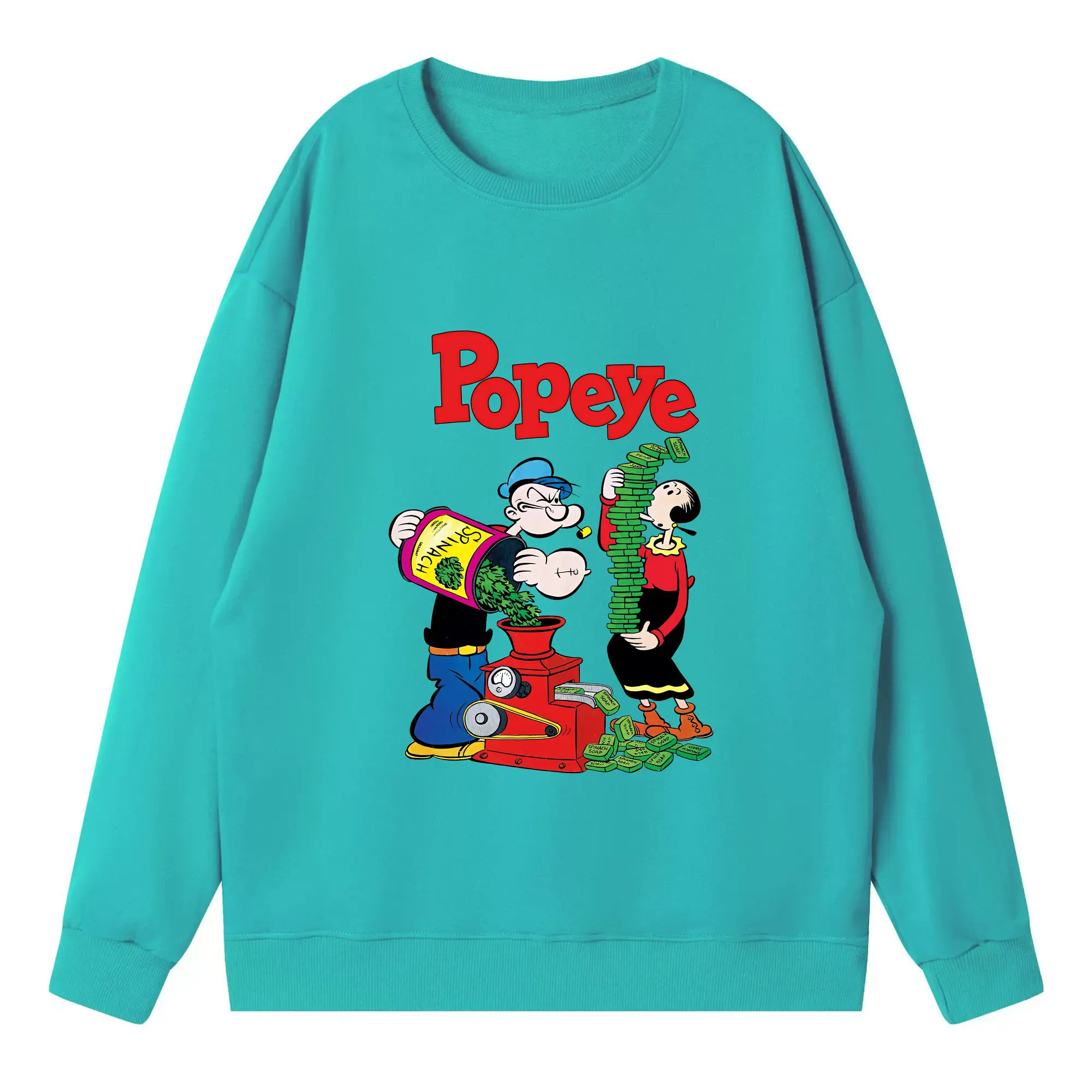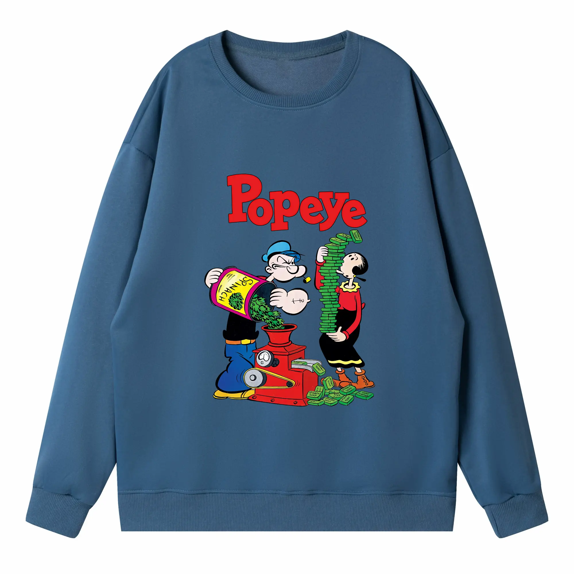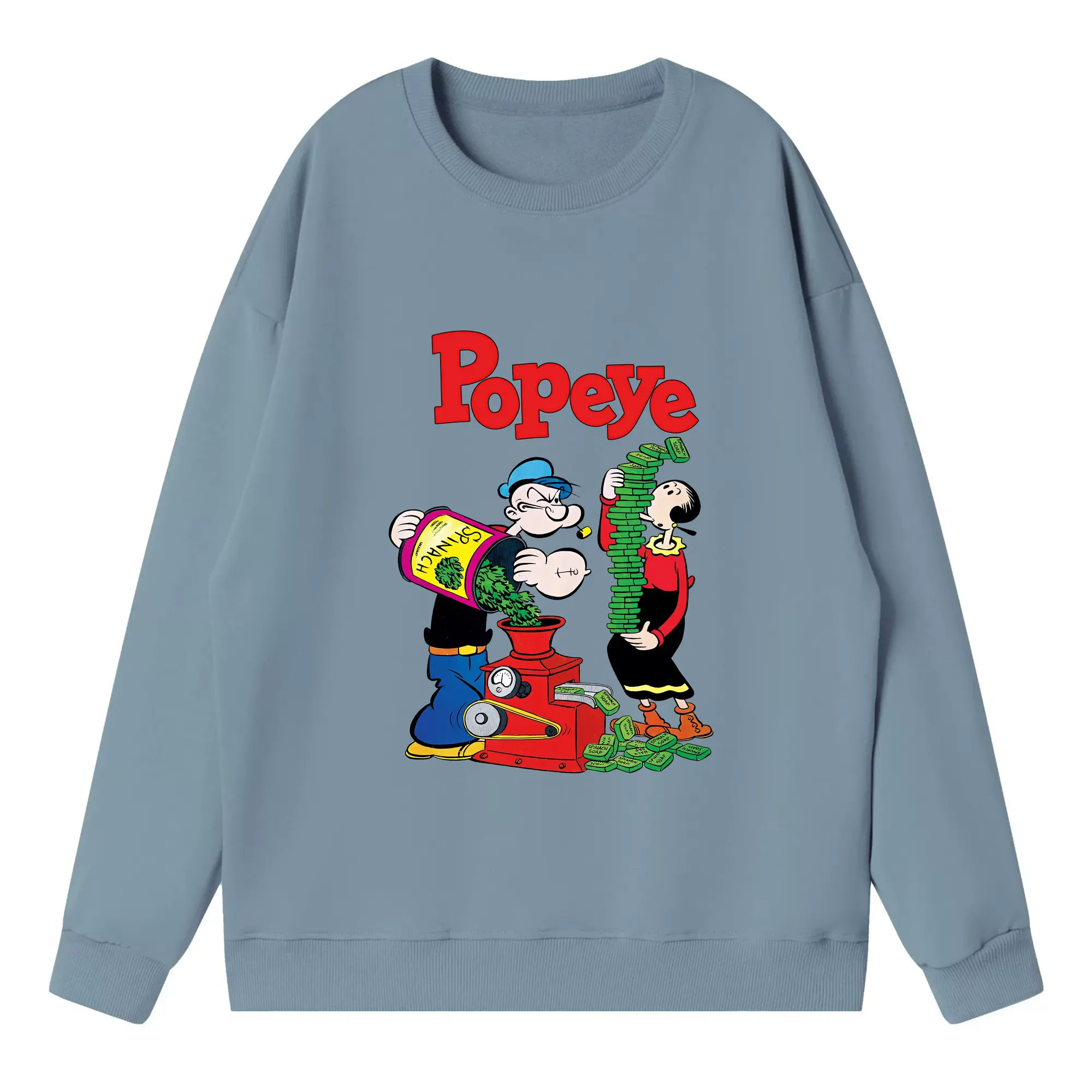 ポパイ グッズ オリーブ・オイル - 高品質 クルーネック スウェット ・ コットン59% ポリエステル41% ・ ユニセックス 長袖 トレーナー ・ カジュアル デイリー スポーツ 散歩用