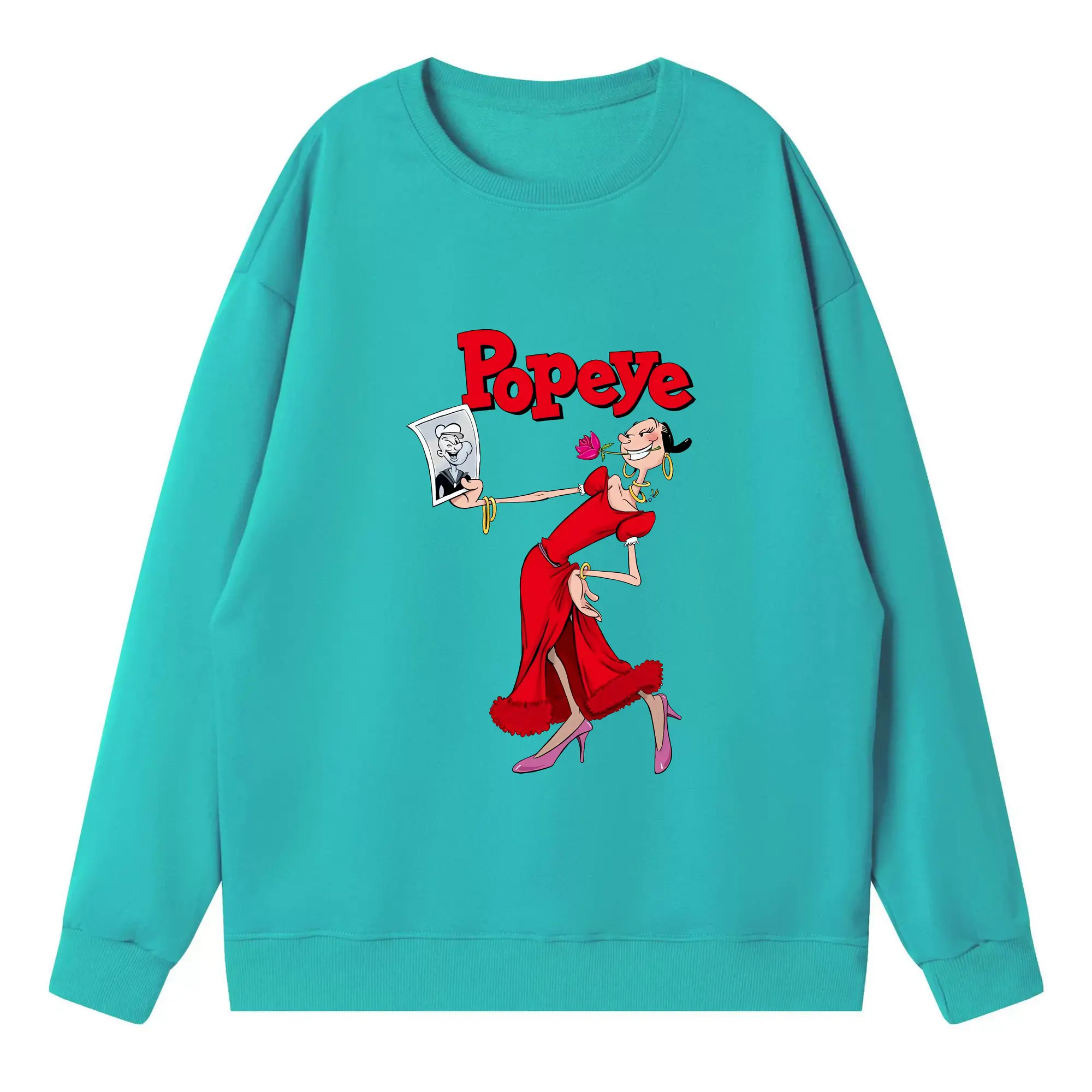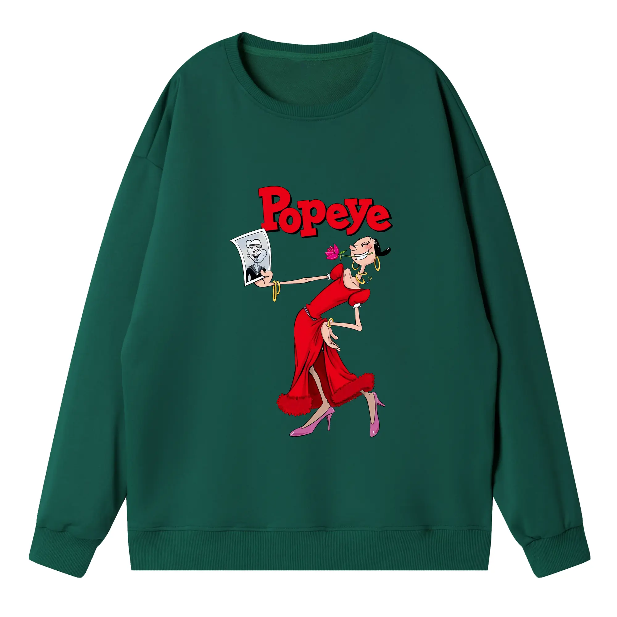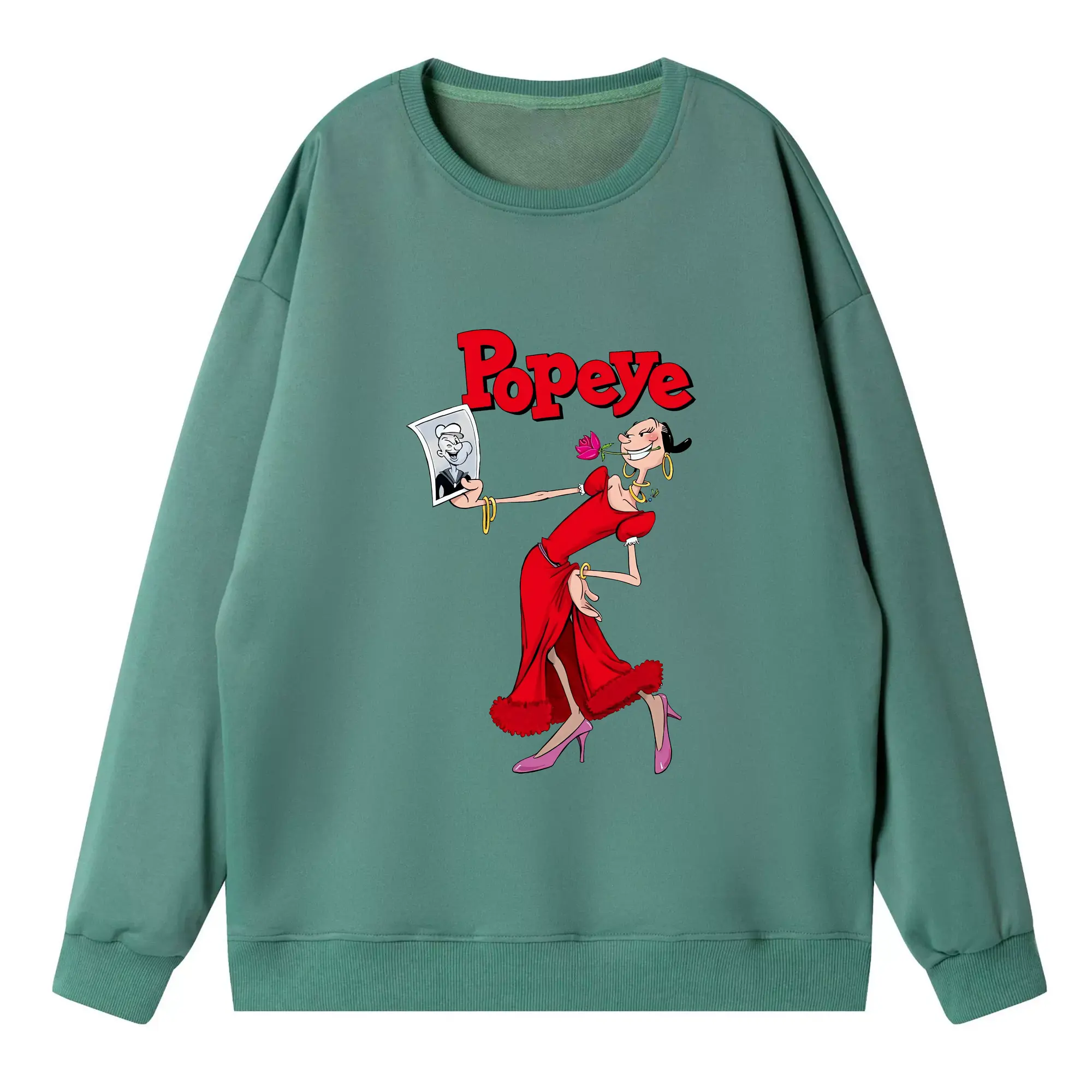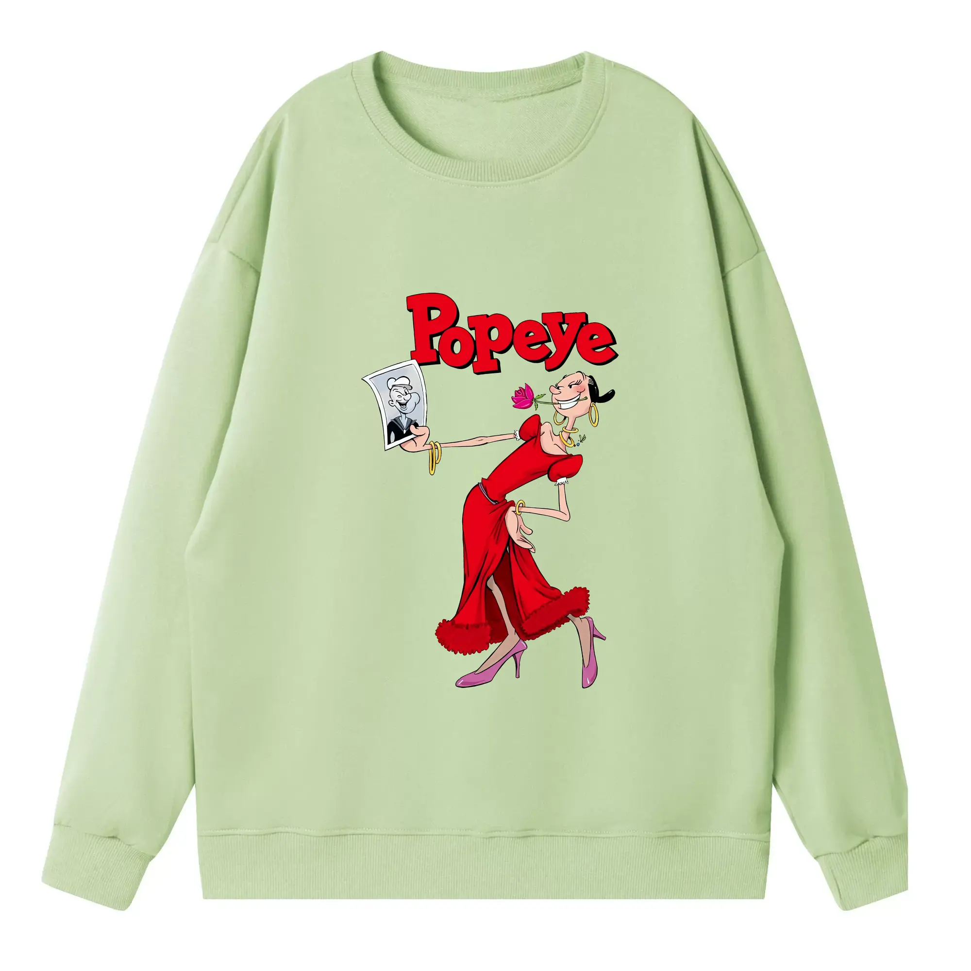 ポパイ グッズ オリーブ・オイル - 高品質 クルーネック スウェット ・ コットン59% ポリエステル41% ・ ユニセックス 長袖 トレーナー ・ カジュアル デイリー スポーツ 散歩用